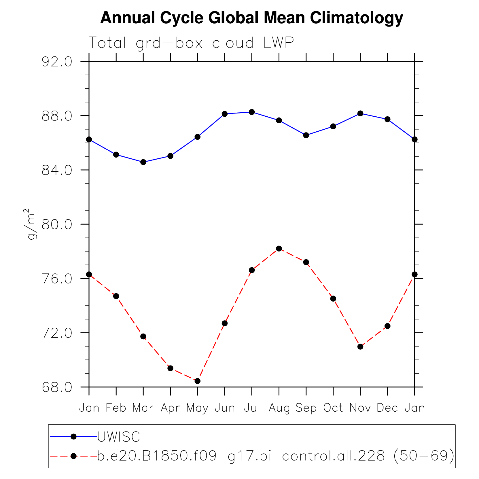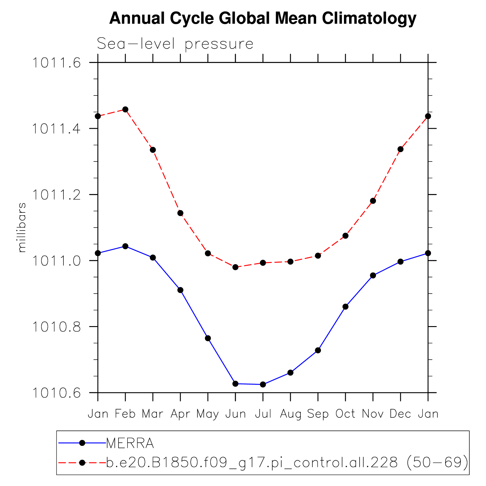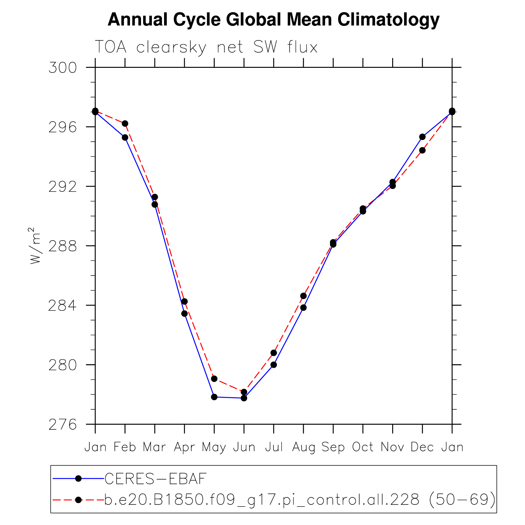 DIAG Set 10 - Annual cycle line plots of global means