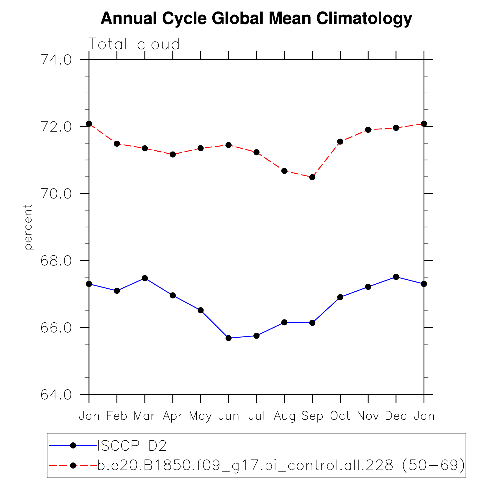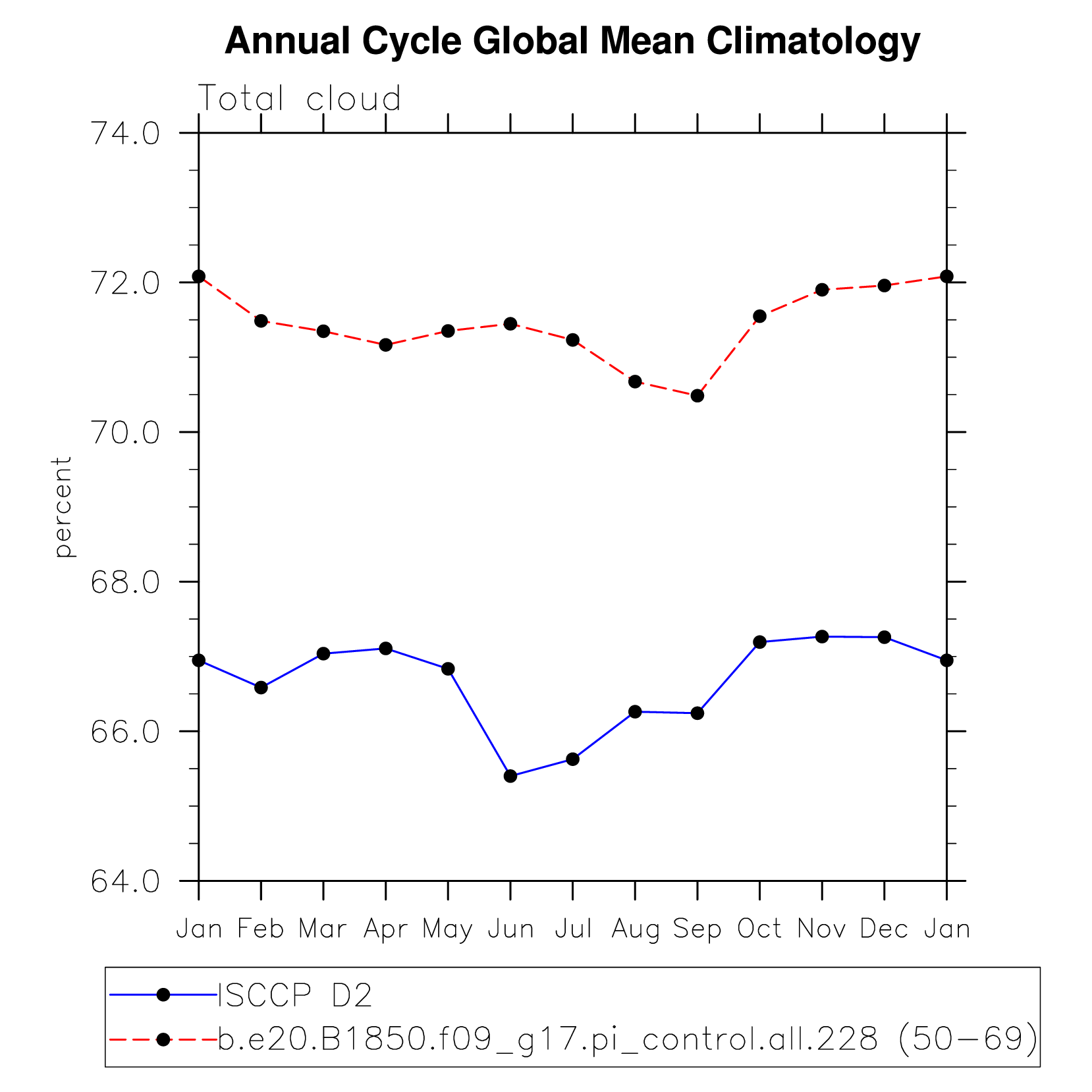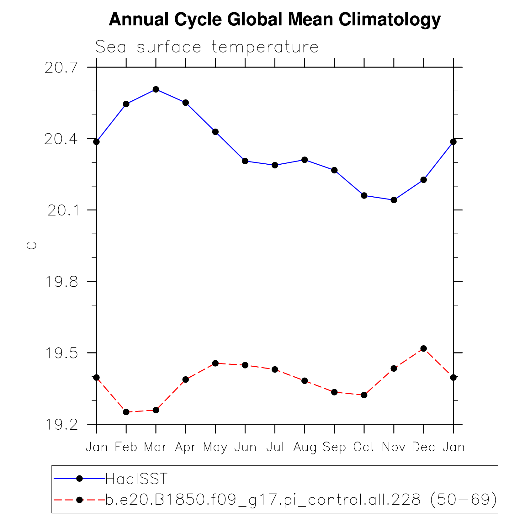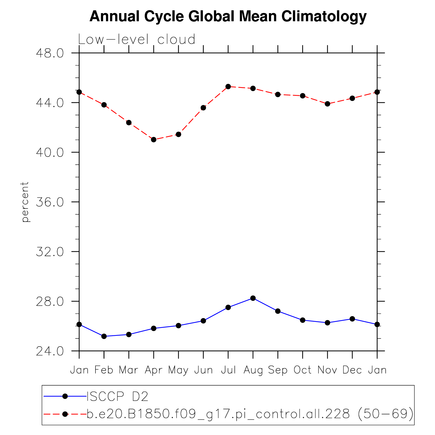 DIAG Set 10 - Annual cycle line plots of global means