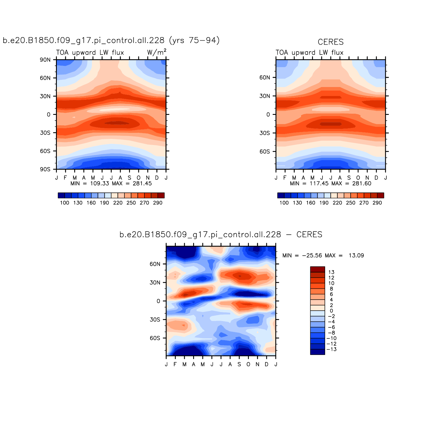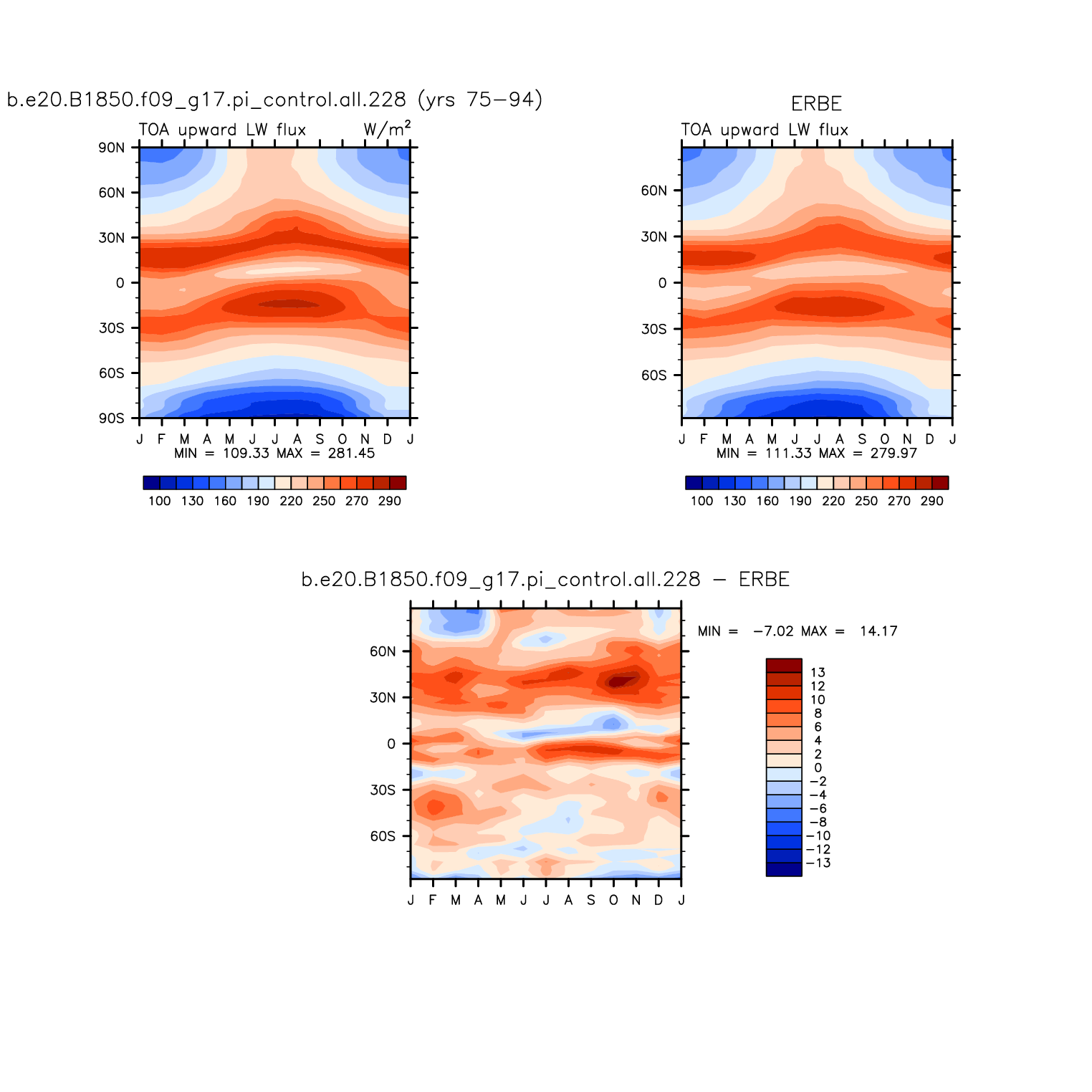 FLUT TOA upward longwave flux plot