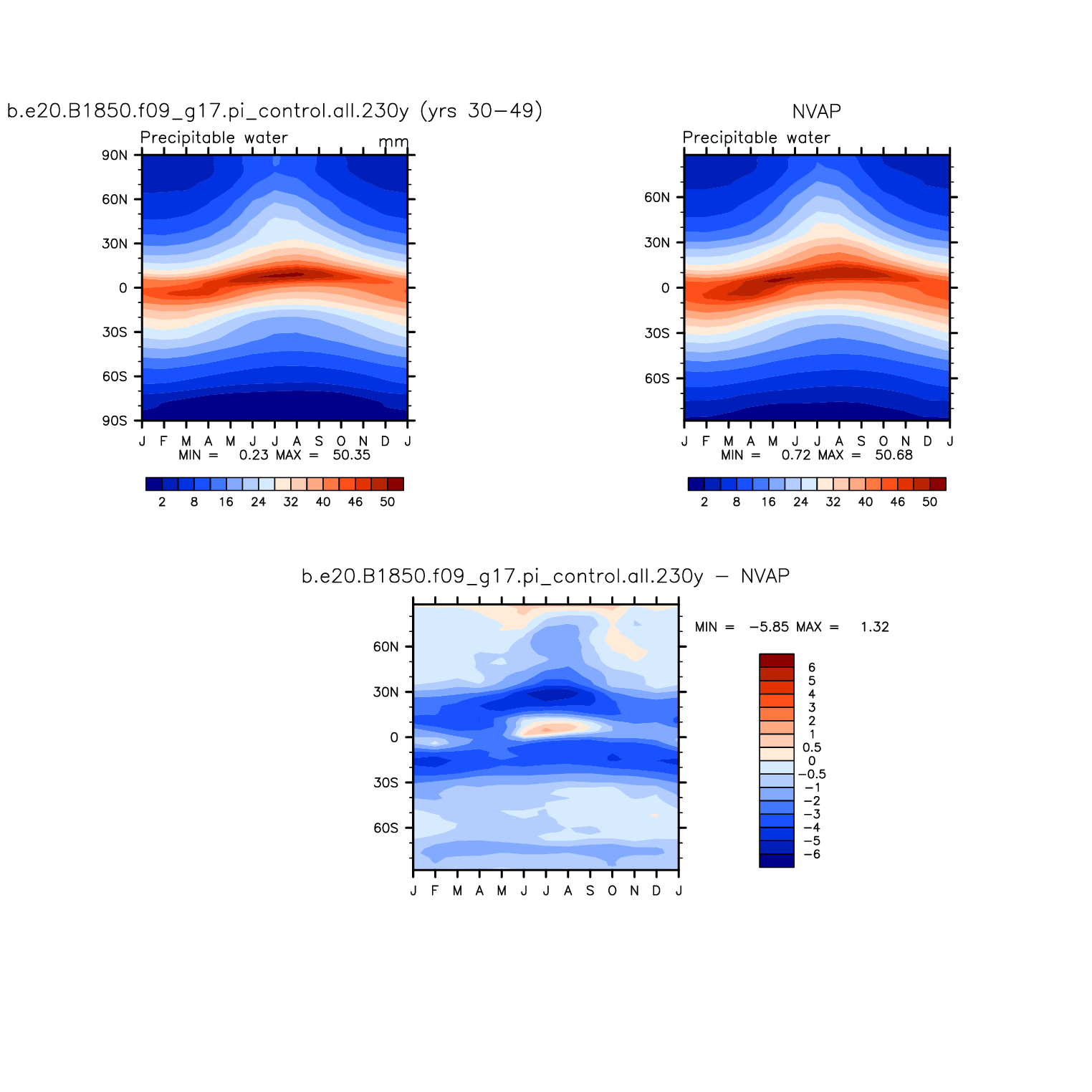 b.e20.B1850.f09_g17.pi_control.all.230y DIAG Set 8 - Annual cycle contour plots of zonal means