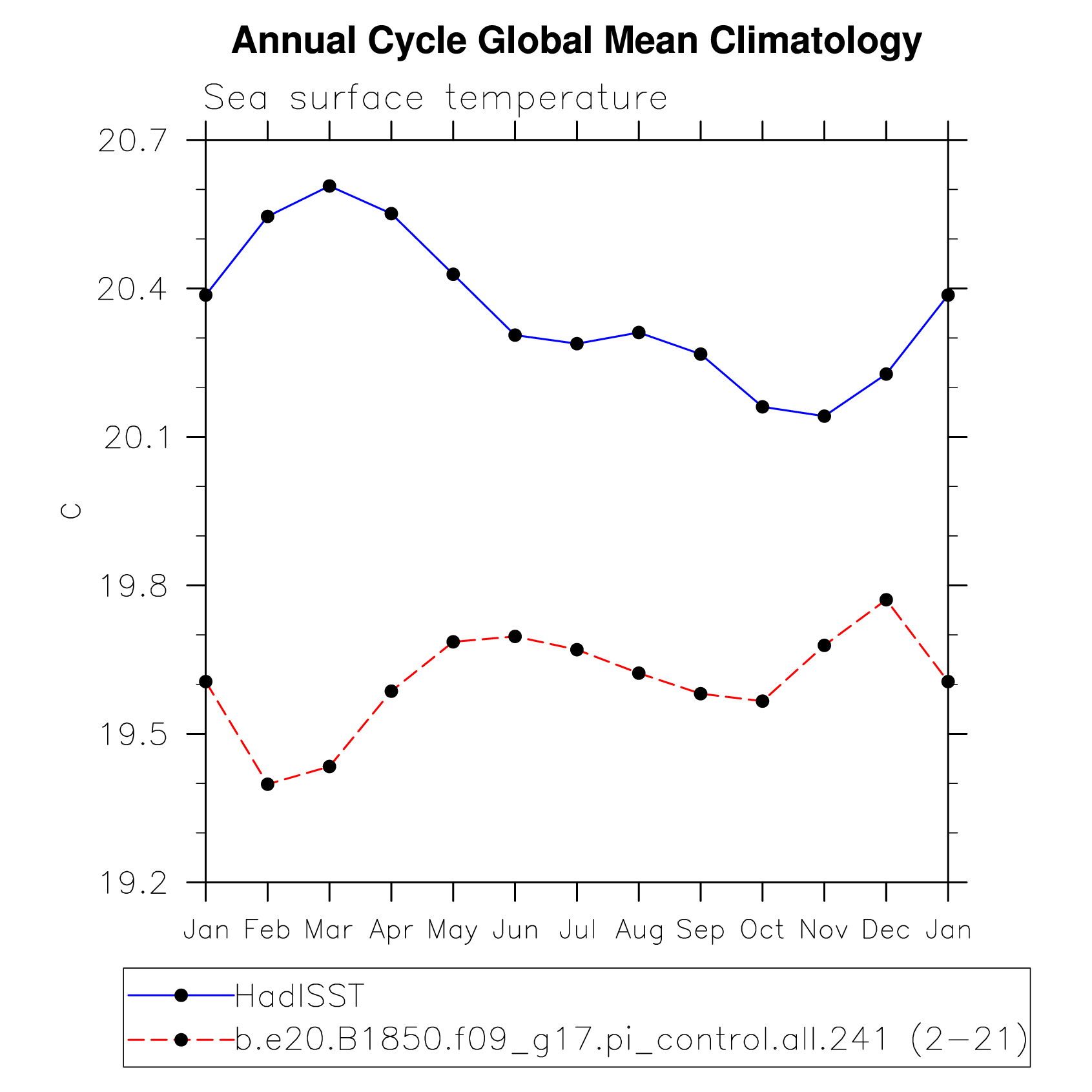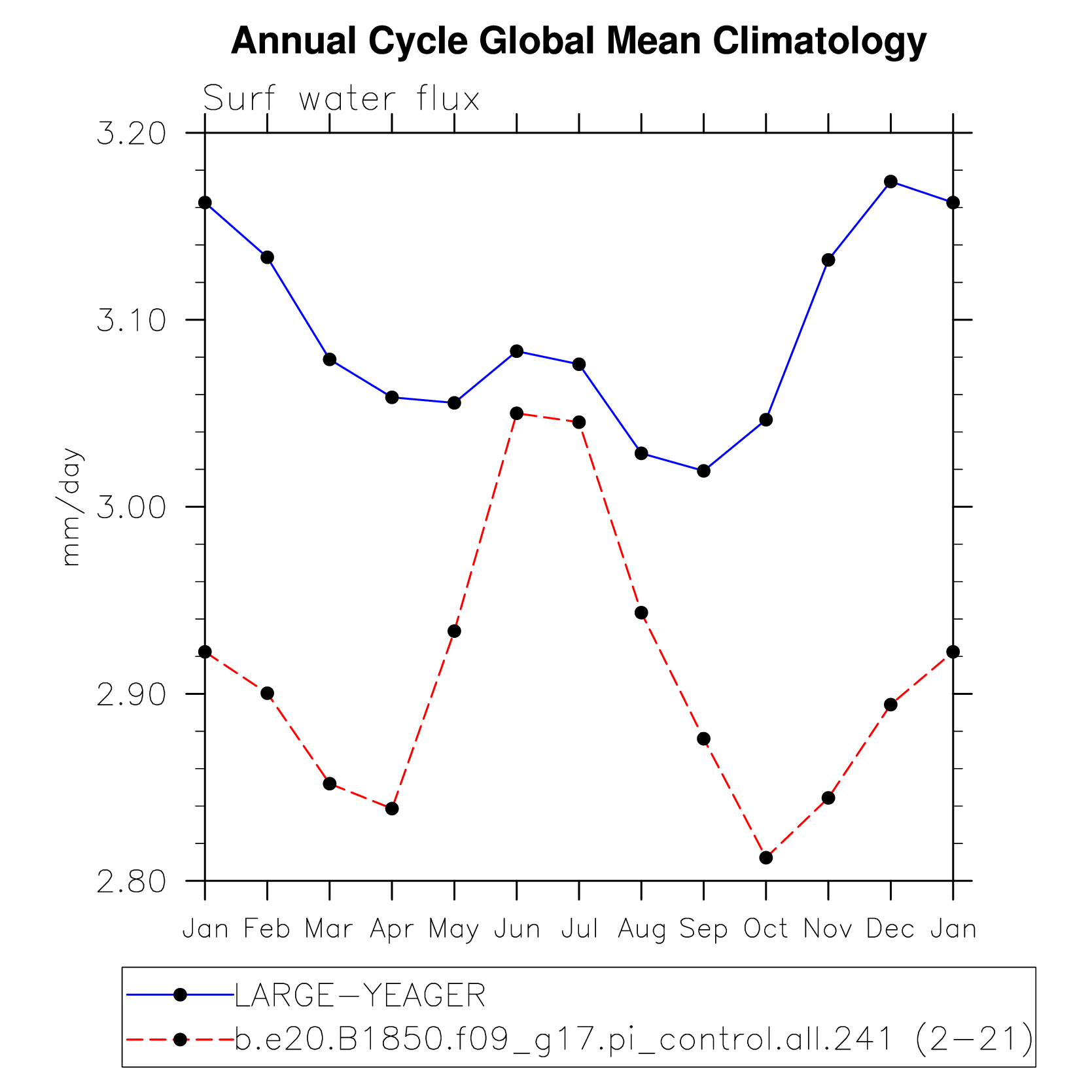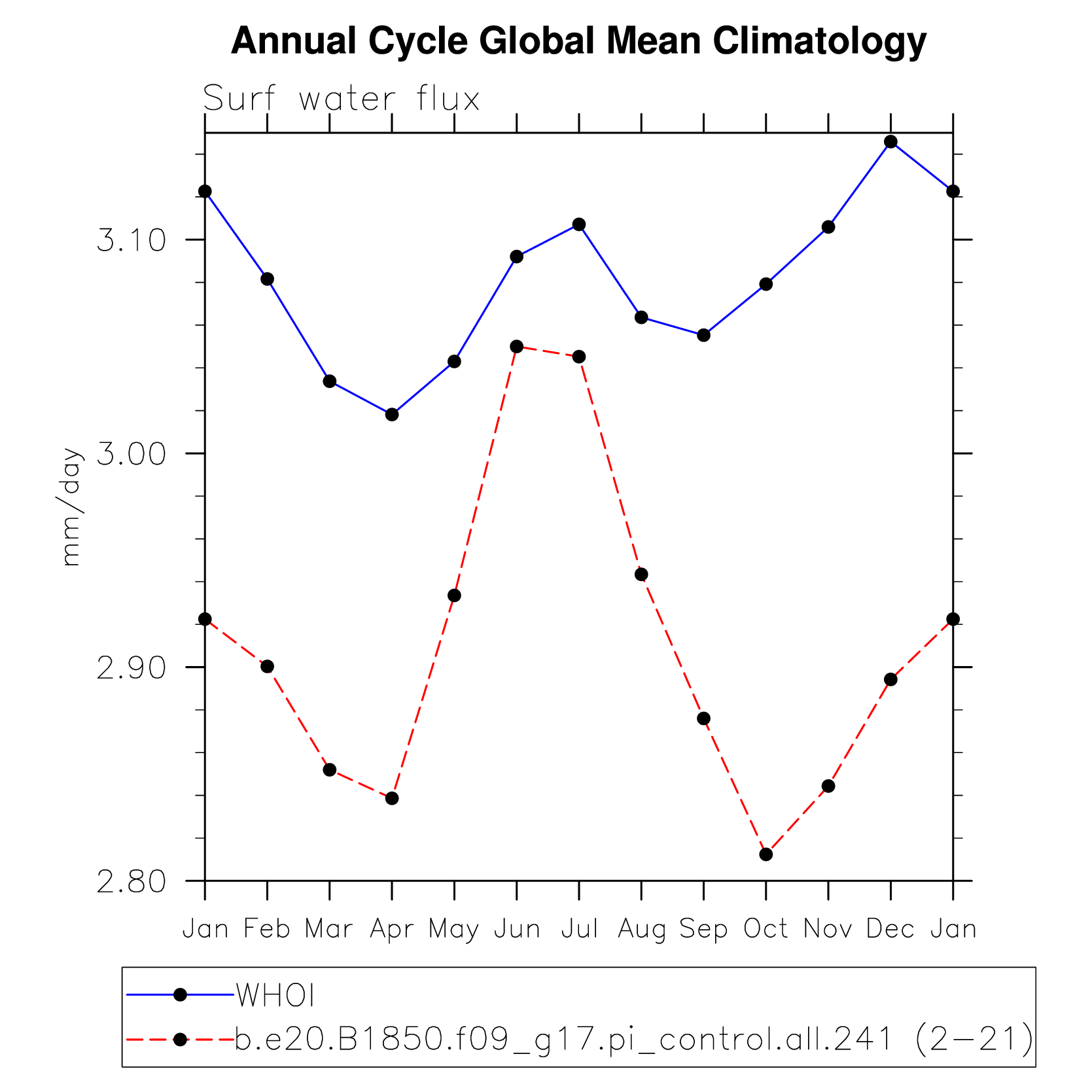 DIAG Set 10 - Annual cycle line plots of global means