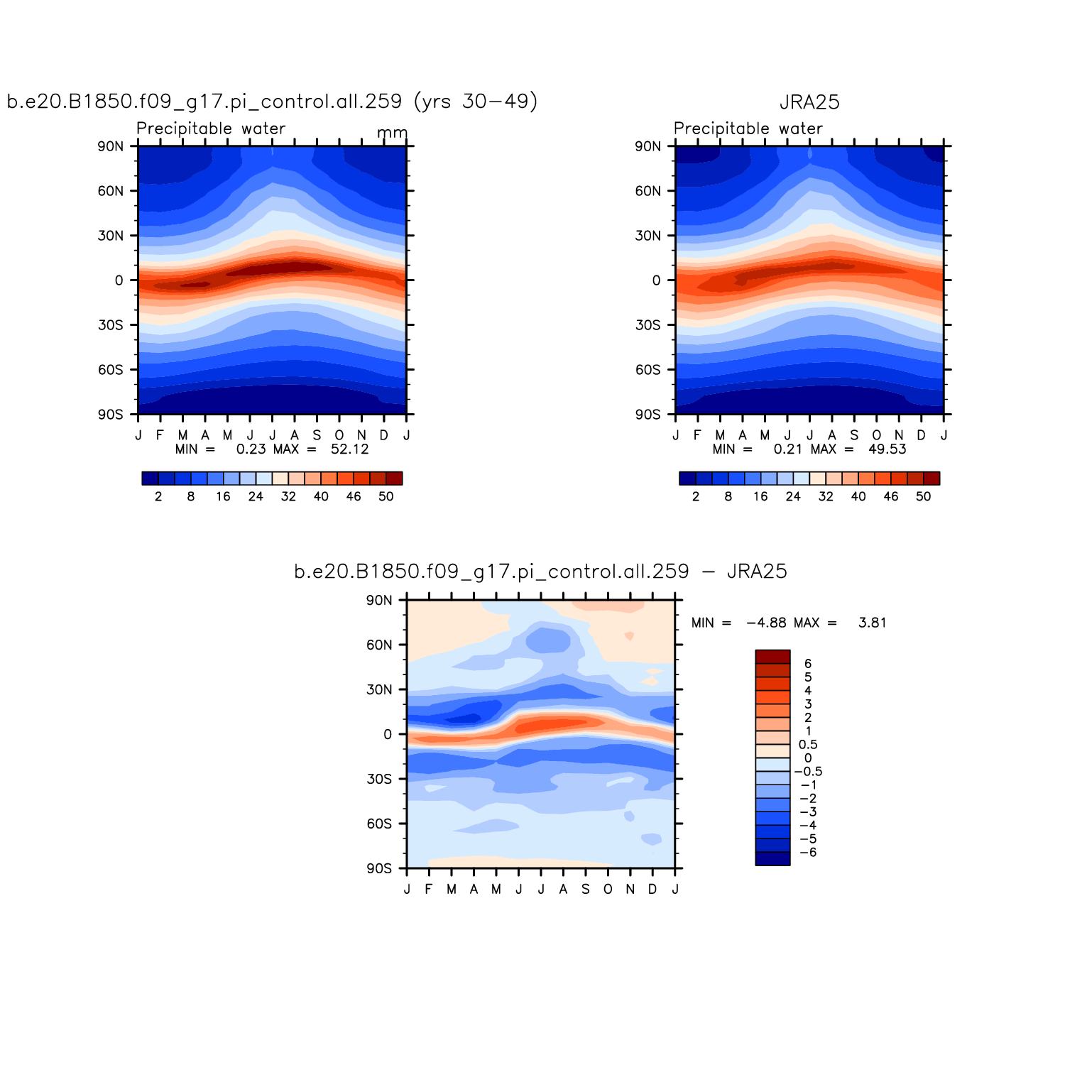 b.e20.B1850.f09_g17.pi_control.all.259 DIAG Set 8 - Annual cycle contour plots of zonal means