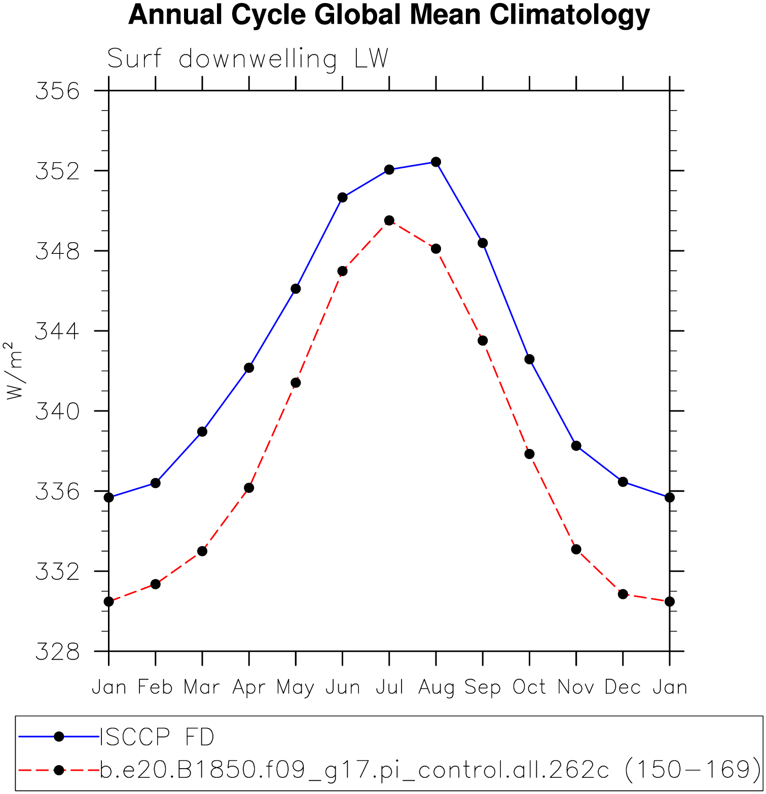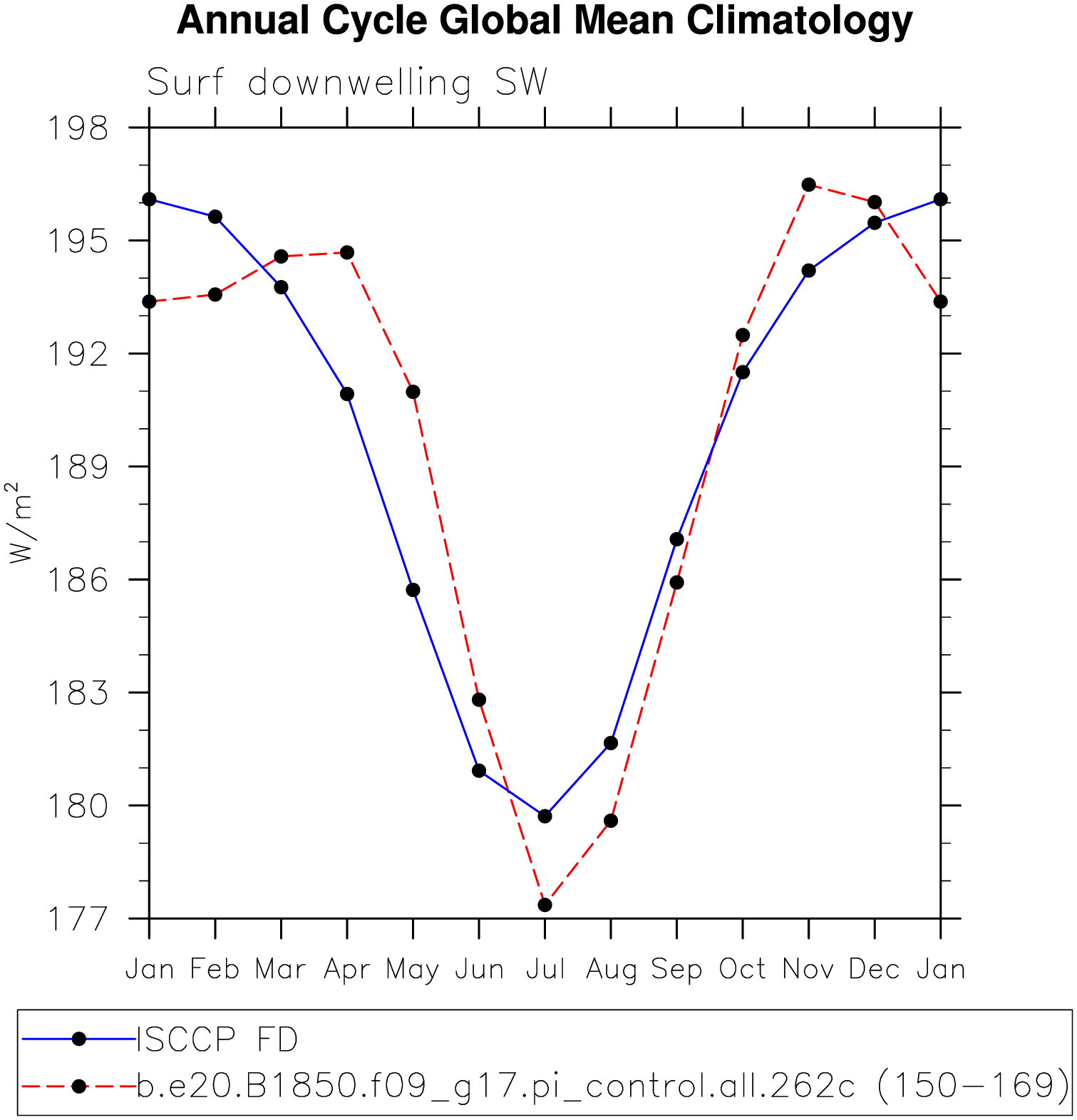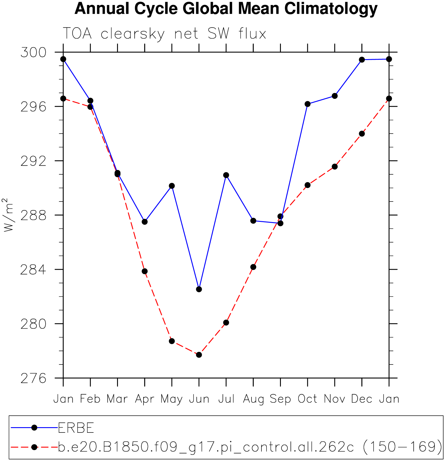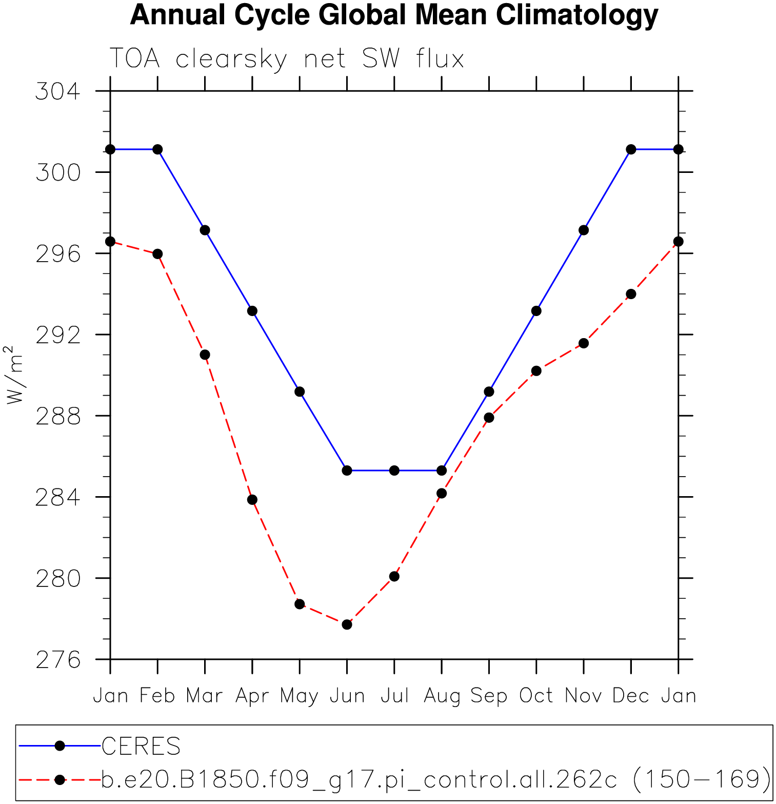 DIAG Set 10 - Annual cycle line plots of global means