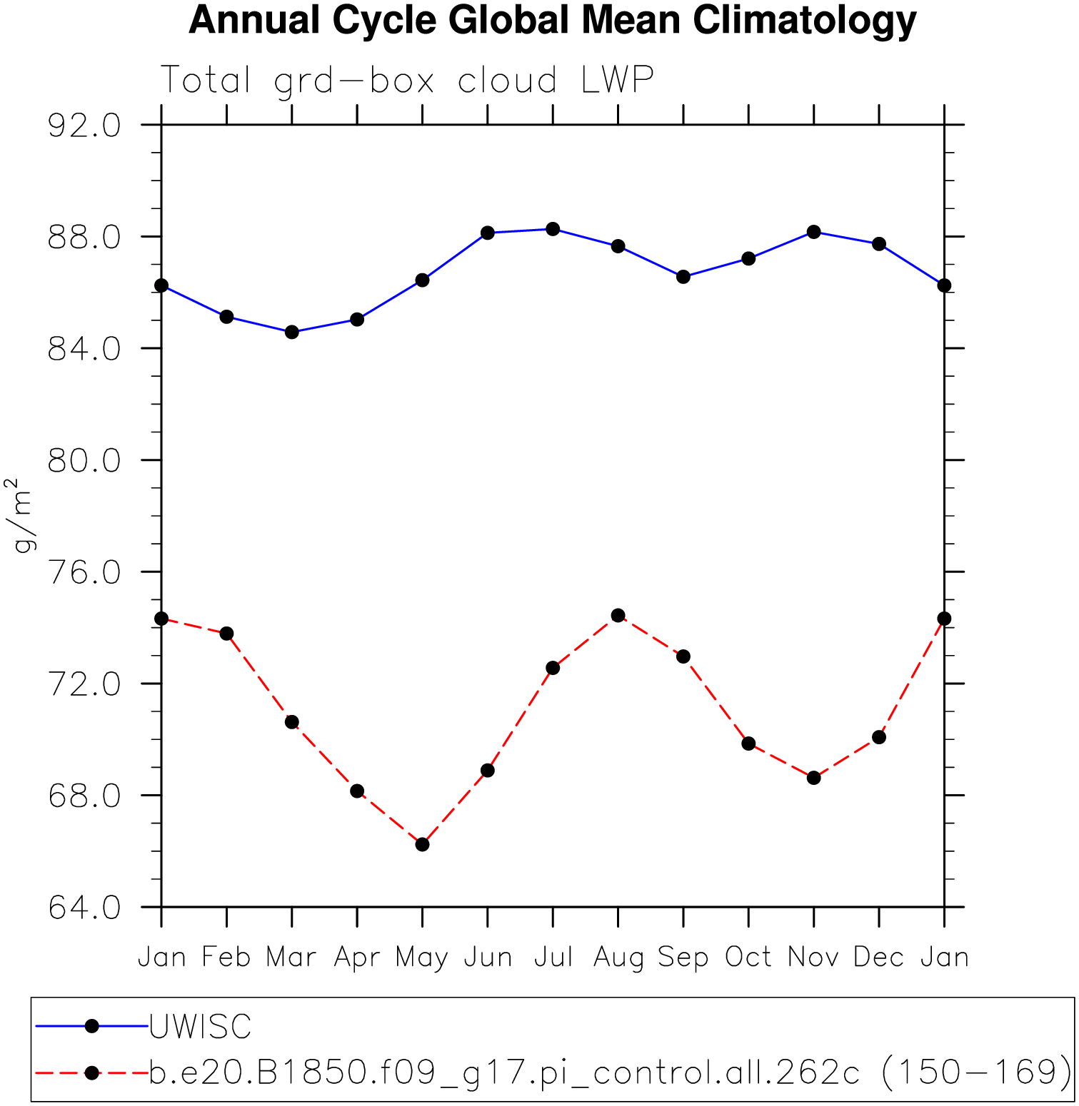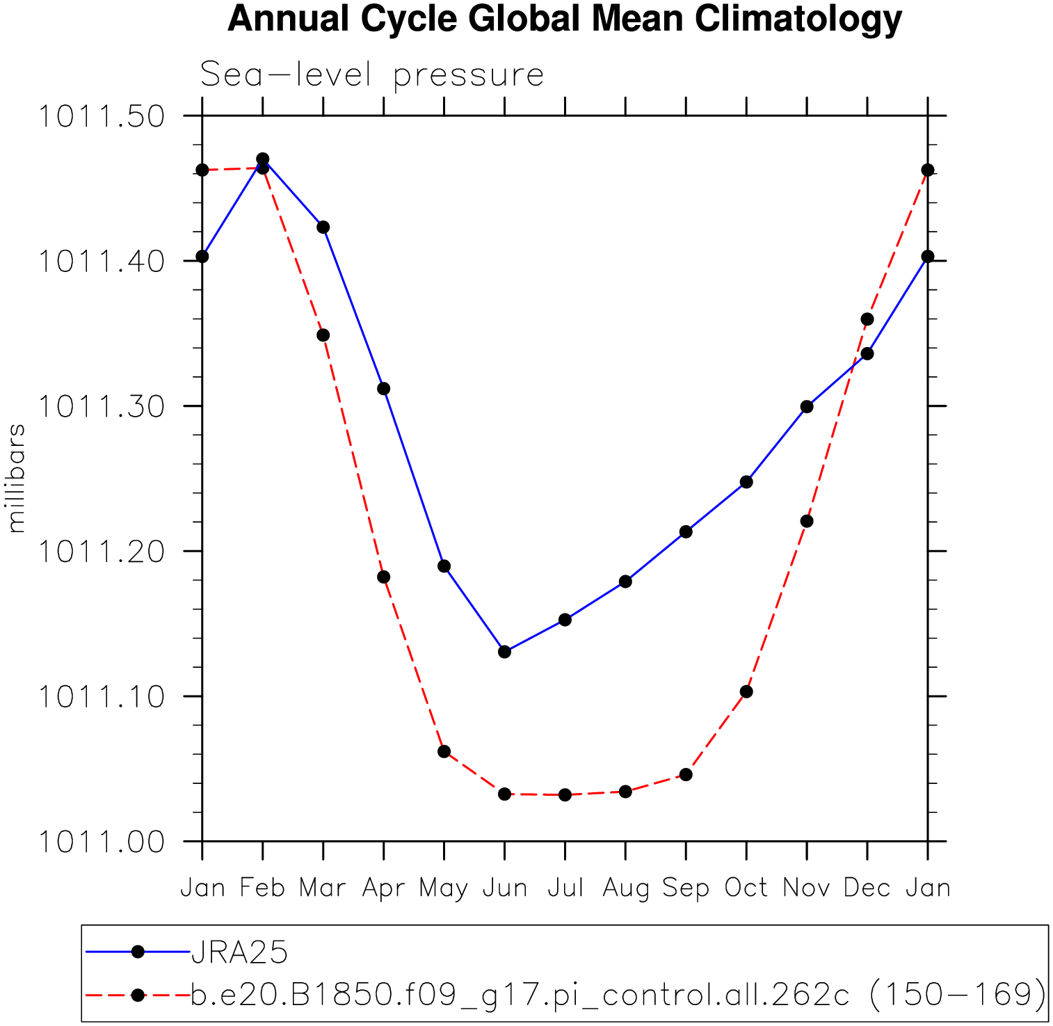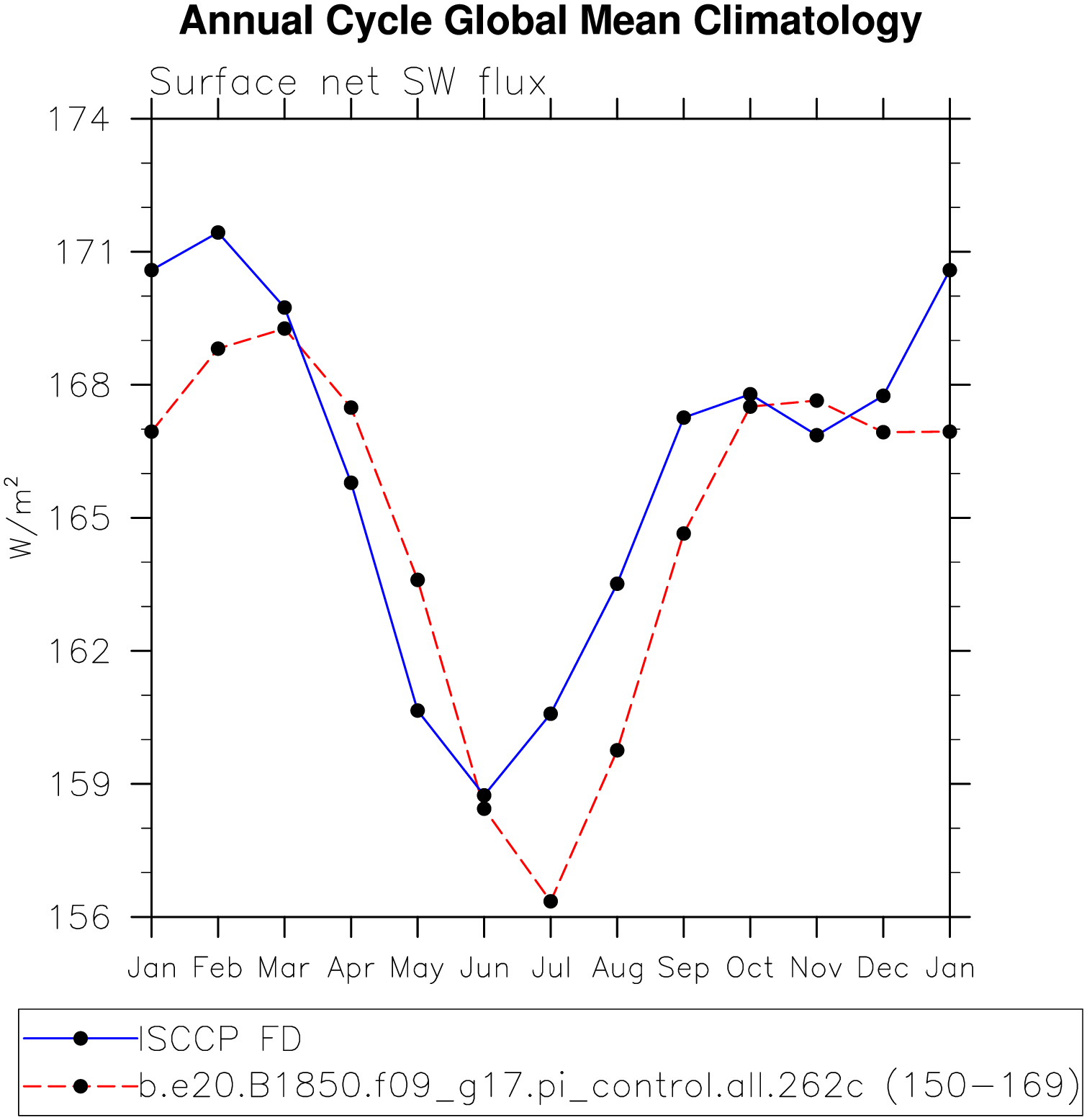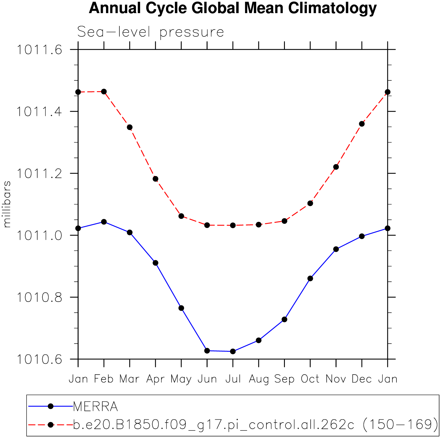 DIAG Set 10 - Annual cycle line plots of global means