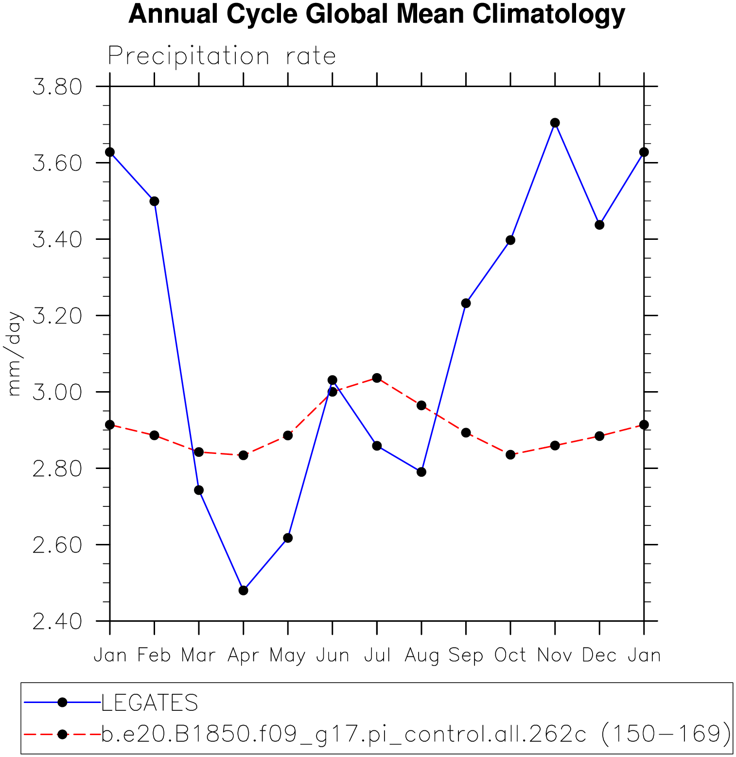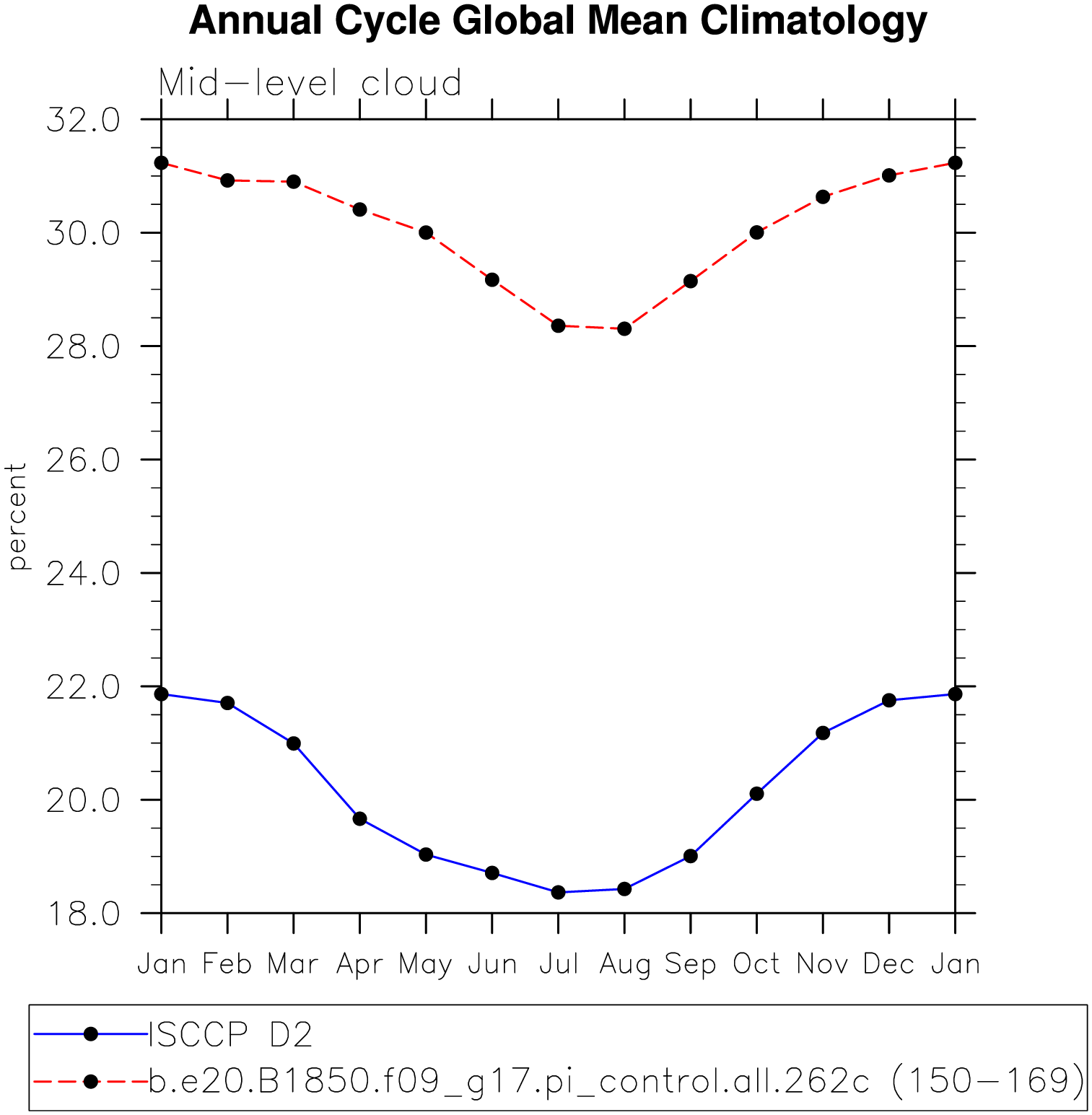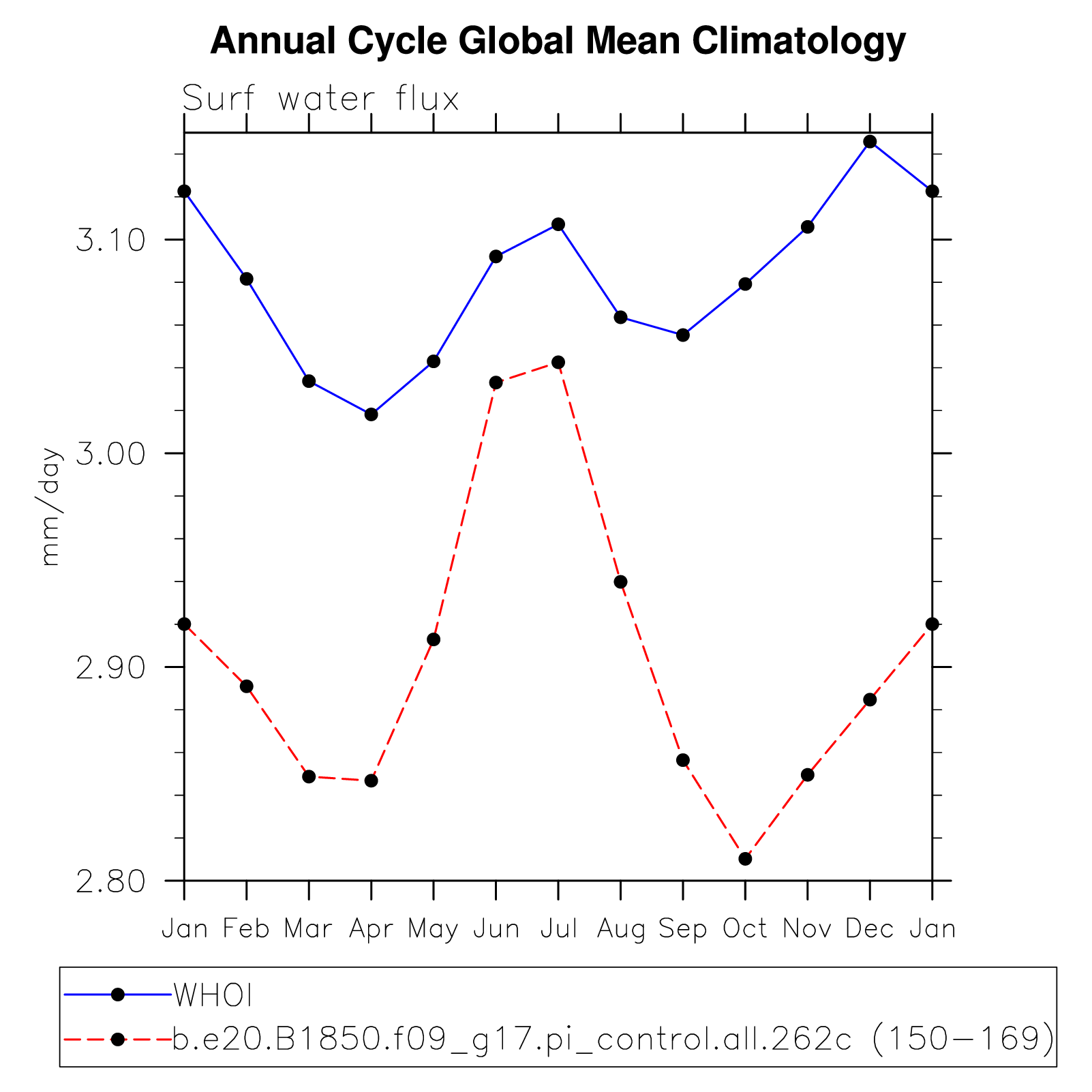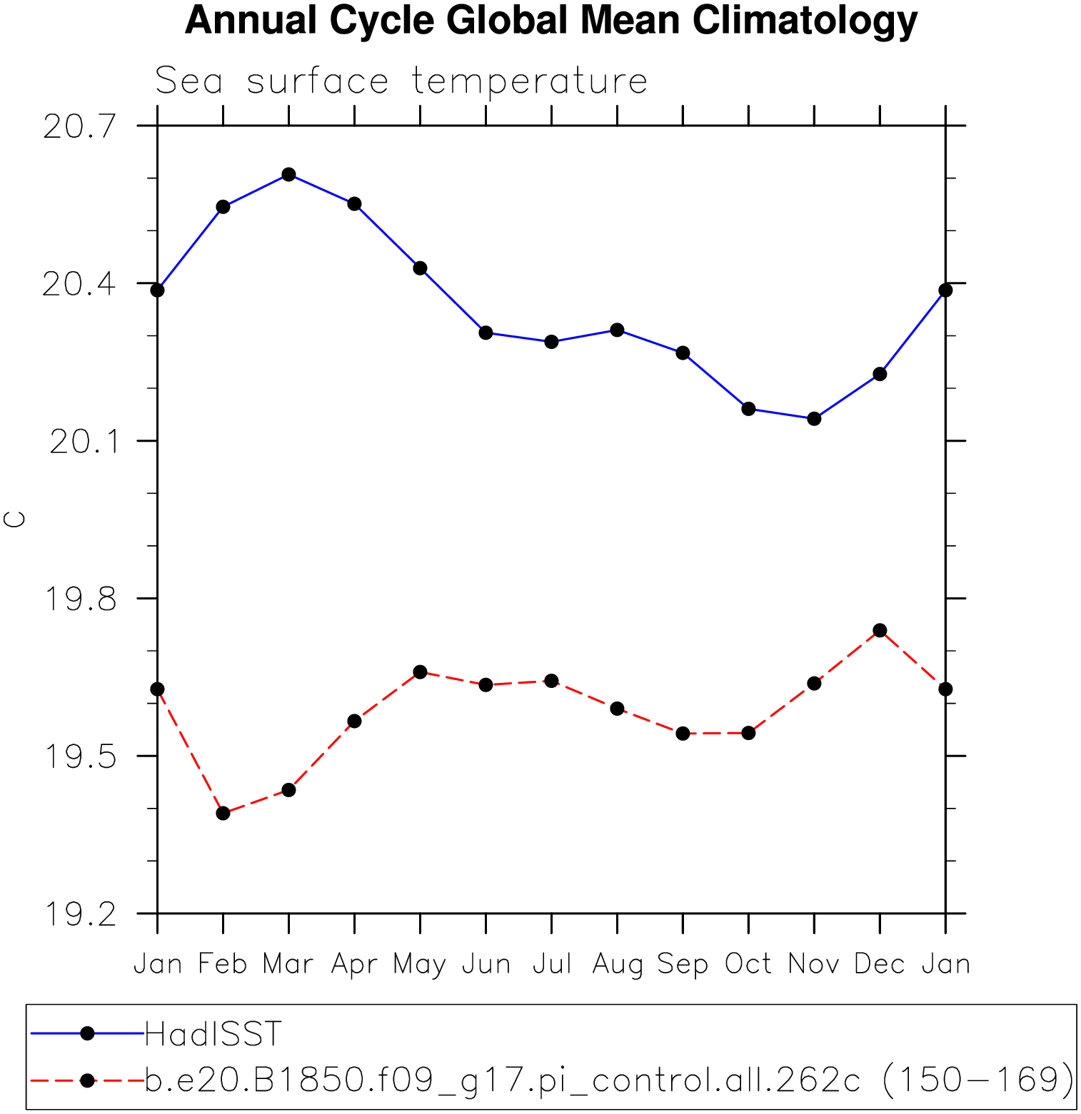 DIAG Set 10 - Annual cycle line plots of global means
