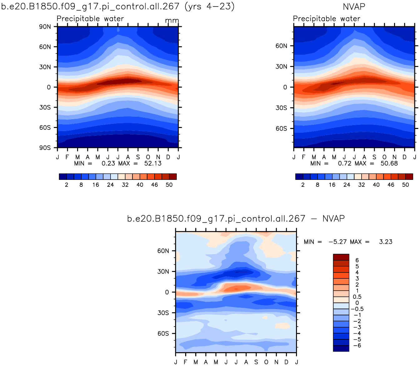b.e20.B1850.f09_g17.pi_control.all.267 DIAG Set 8 - Annual cycle contour plots of zonal means