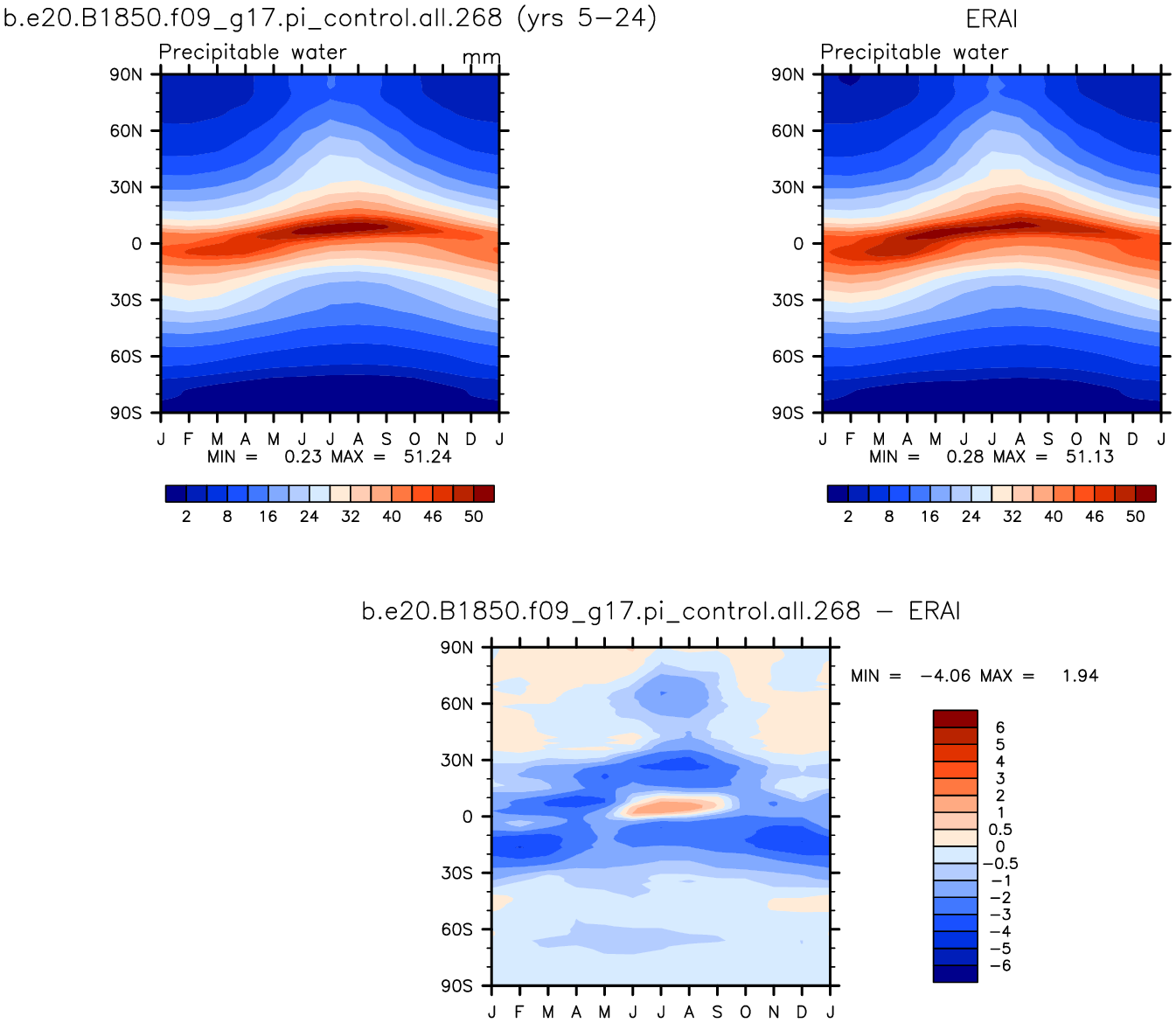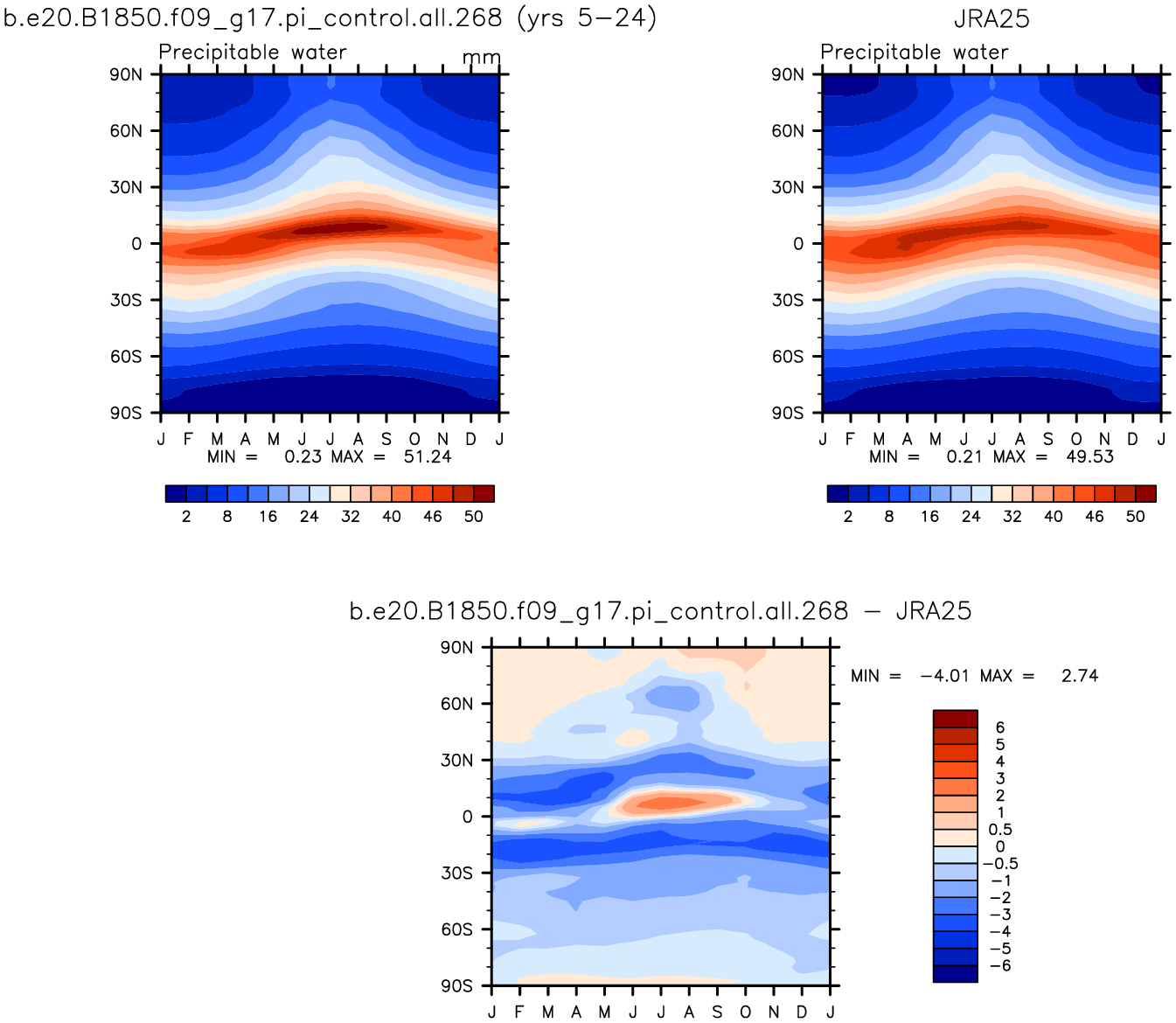 b.e20.B1850.f09_g17.pi_control.all.268 DIAG Set 8 - Annual cycle contour plots of zonal means