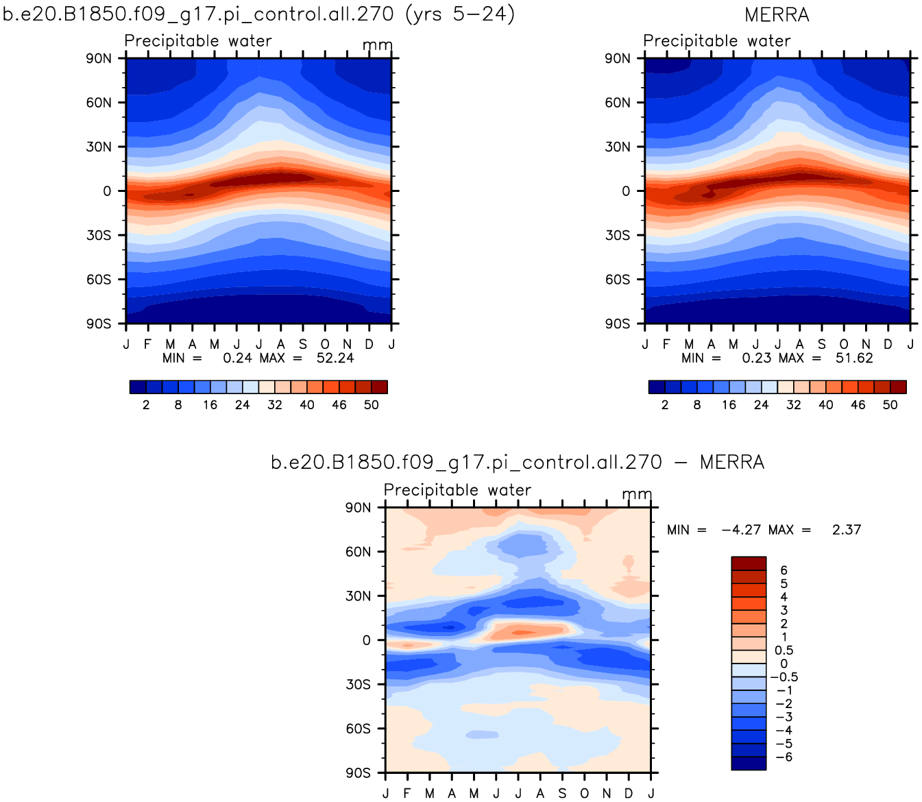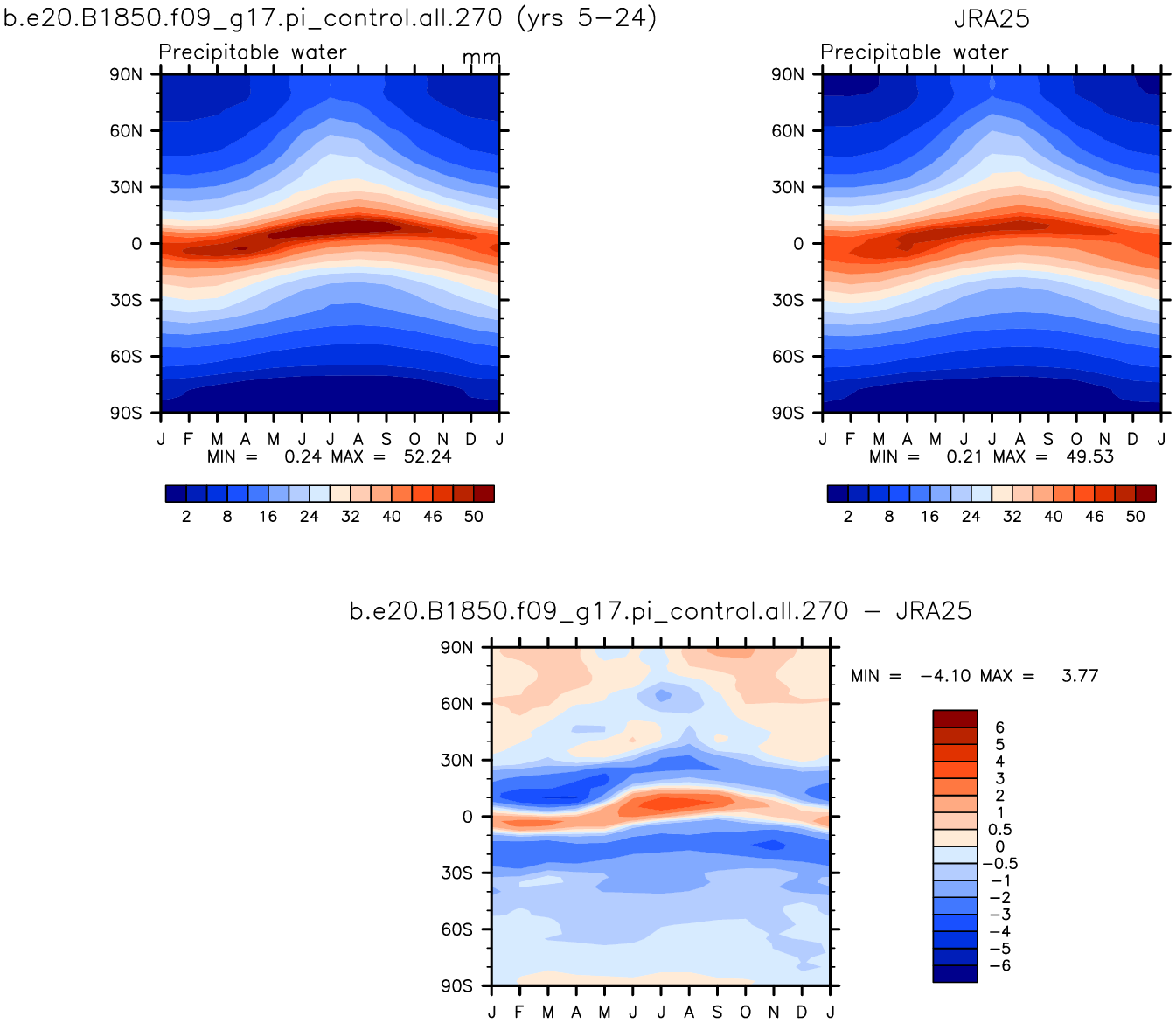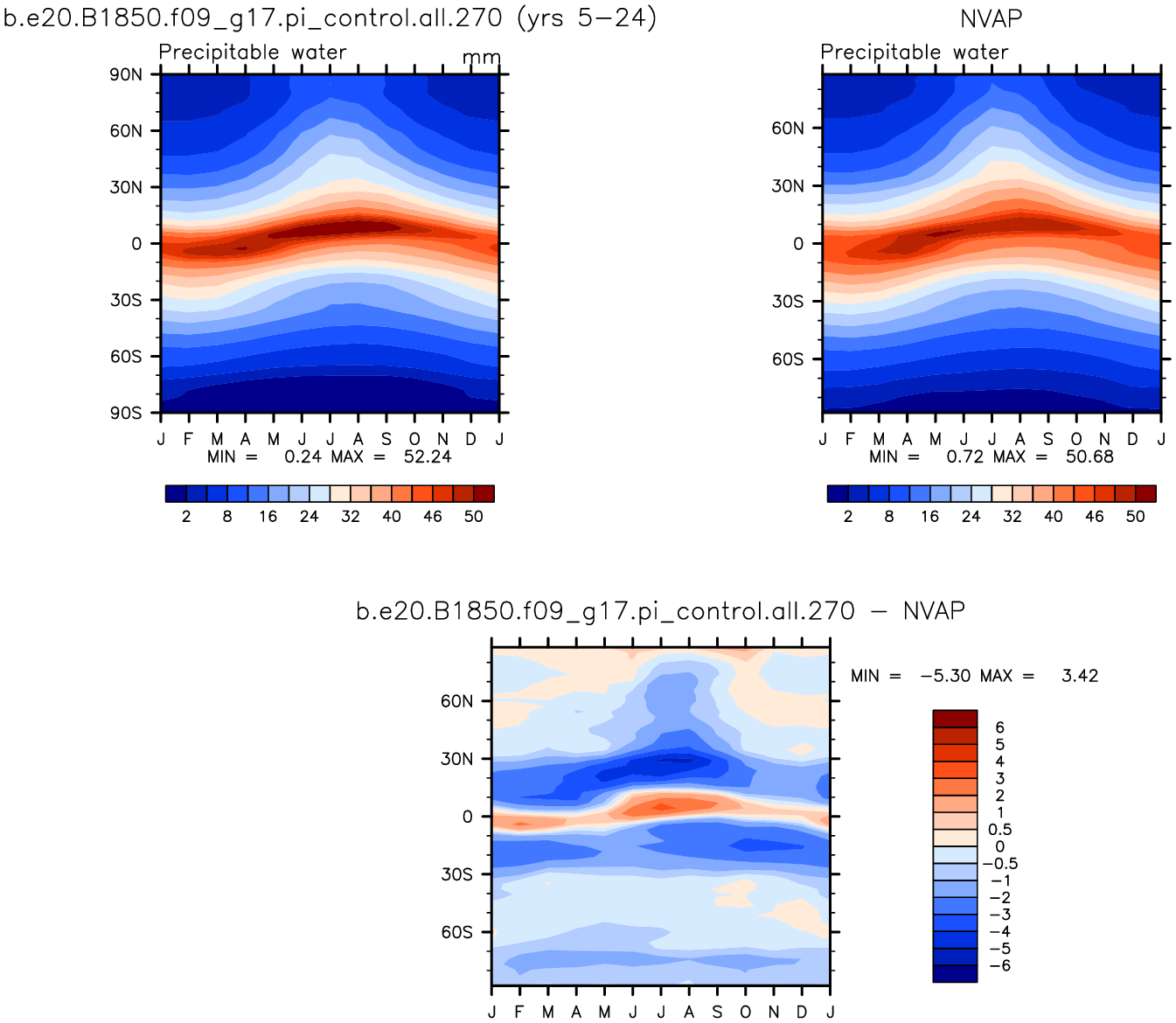 b.e20.B1850.f09_g17.pi_control.all.270 DIAG Set 8 - Annual cycle contour plots of zonal means