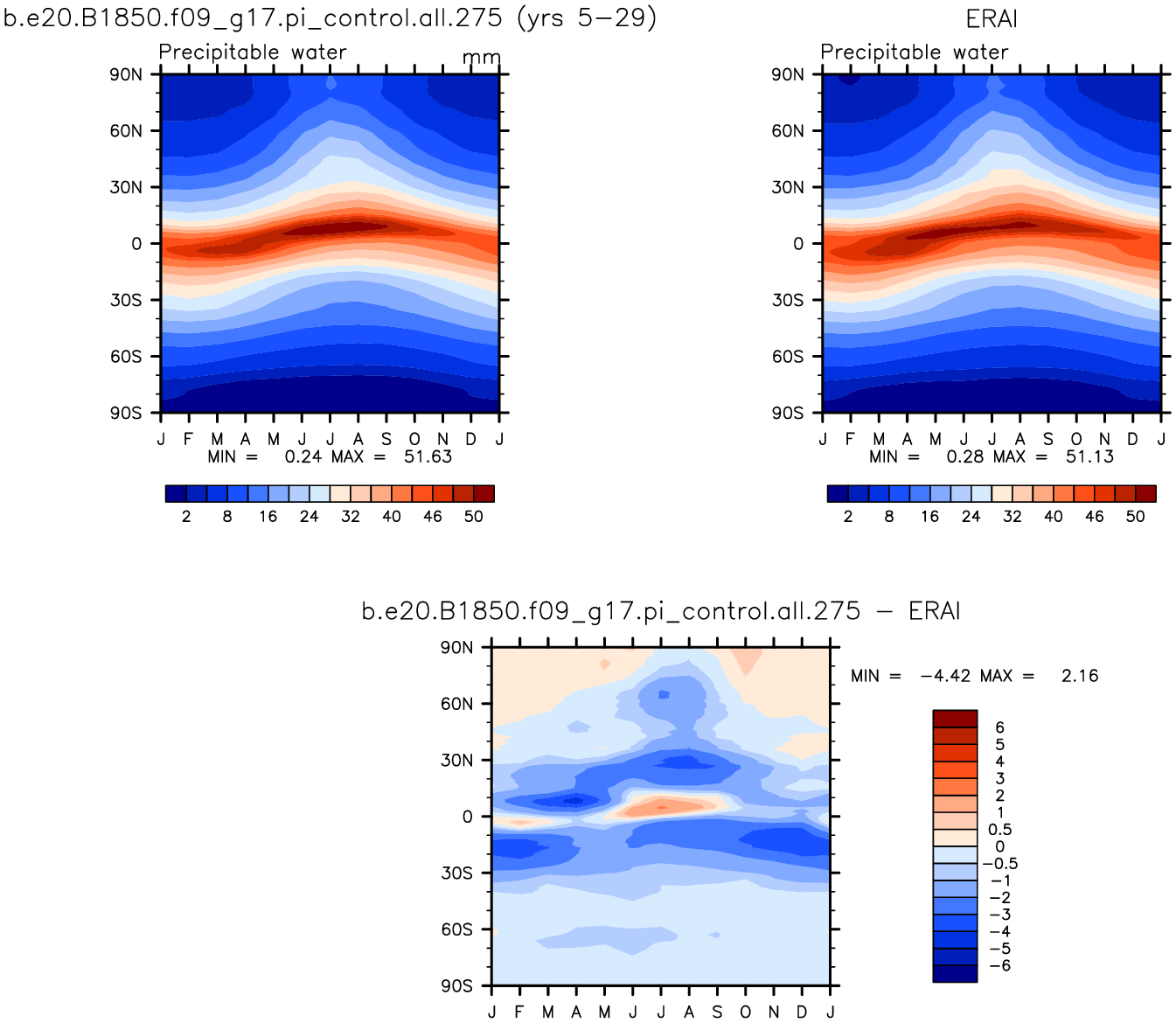 b.e20.B1850.f09_g17.pi_control.all.275 DIAG Set 8 - Annual cycle contour plots of zonal means