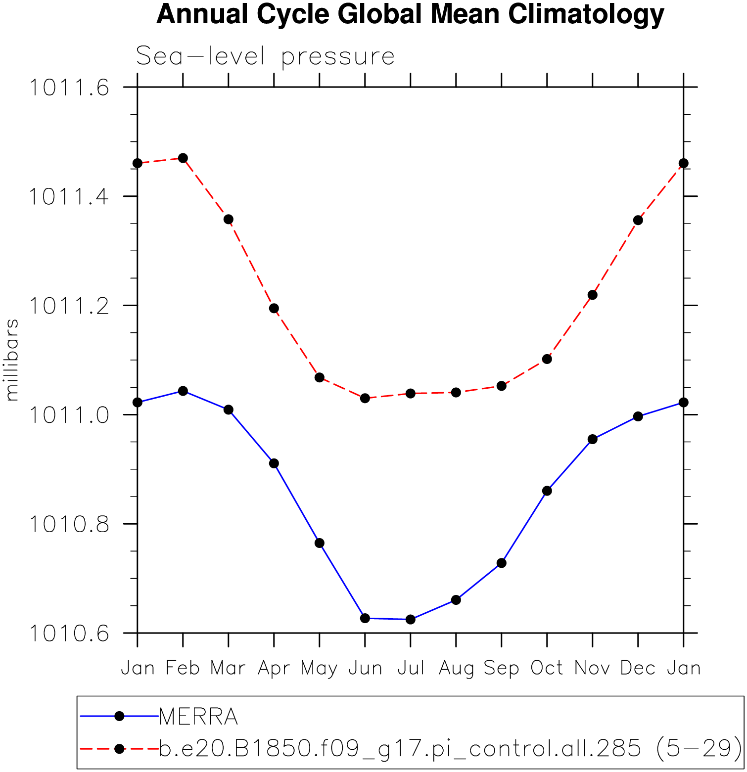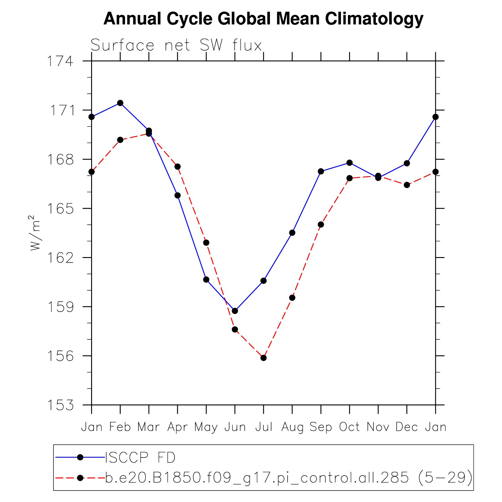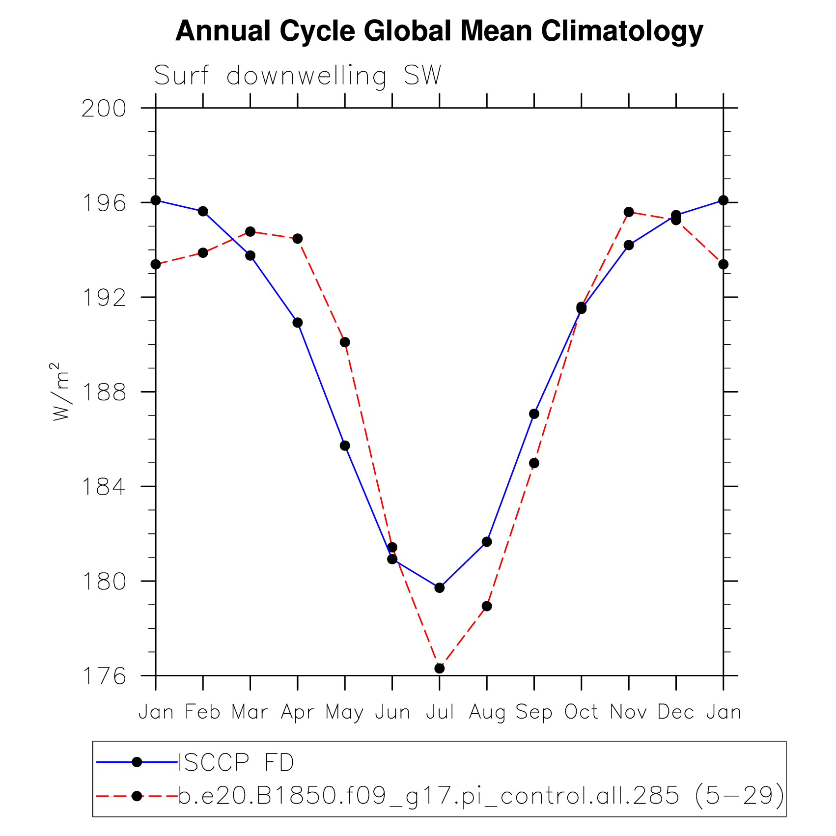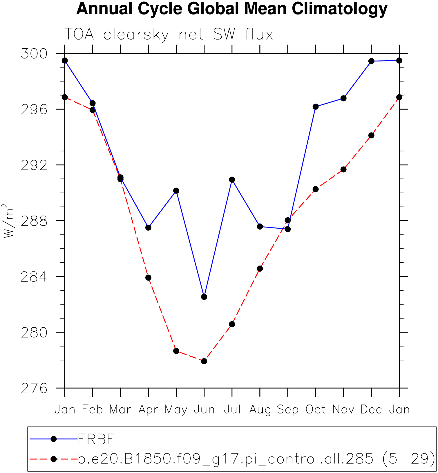 DIAG Set 10 - Annual cycle line plots of global means