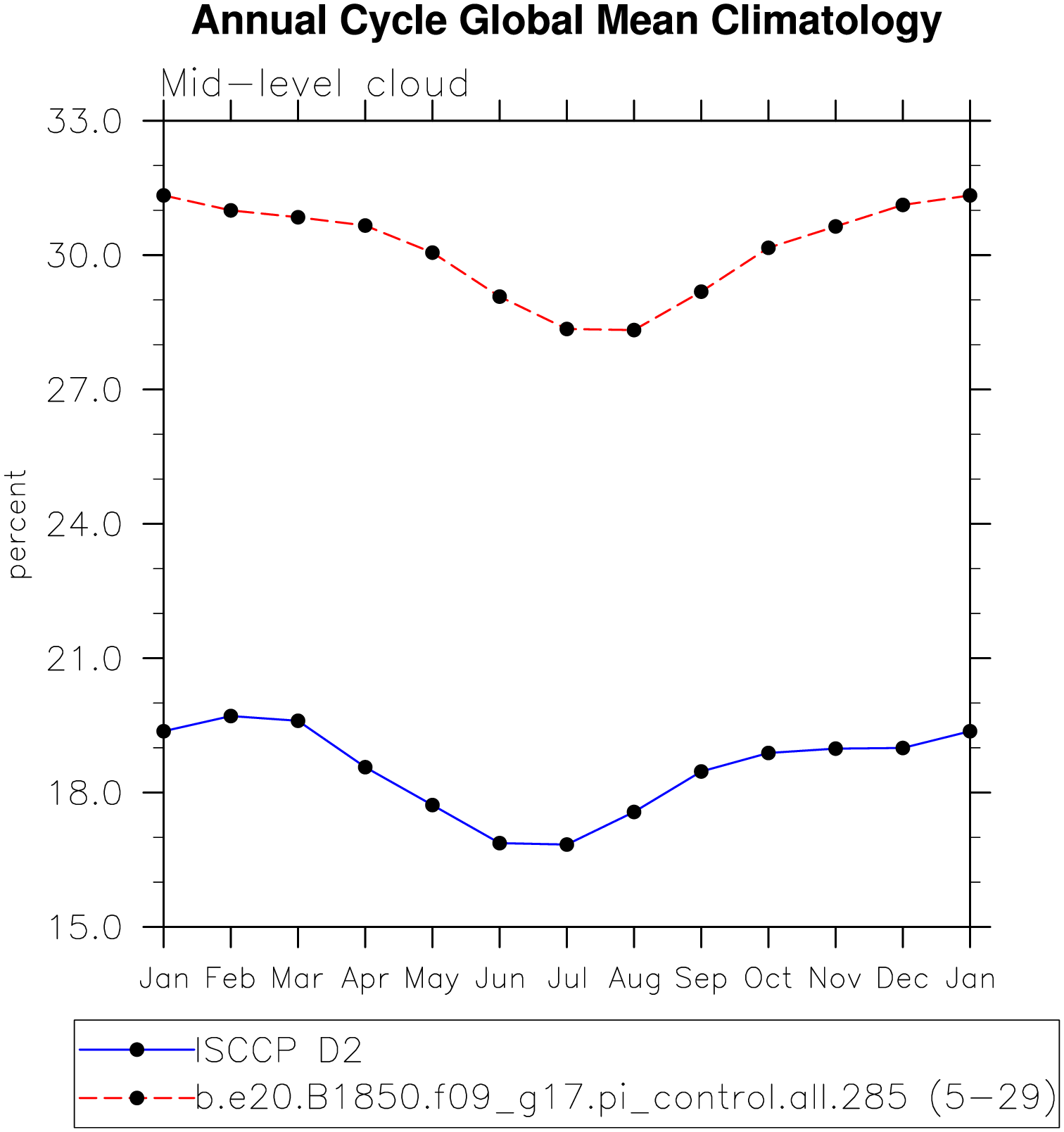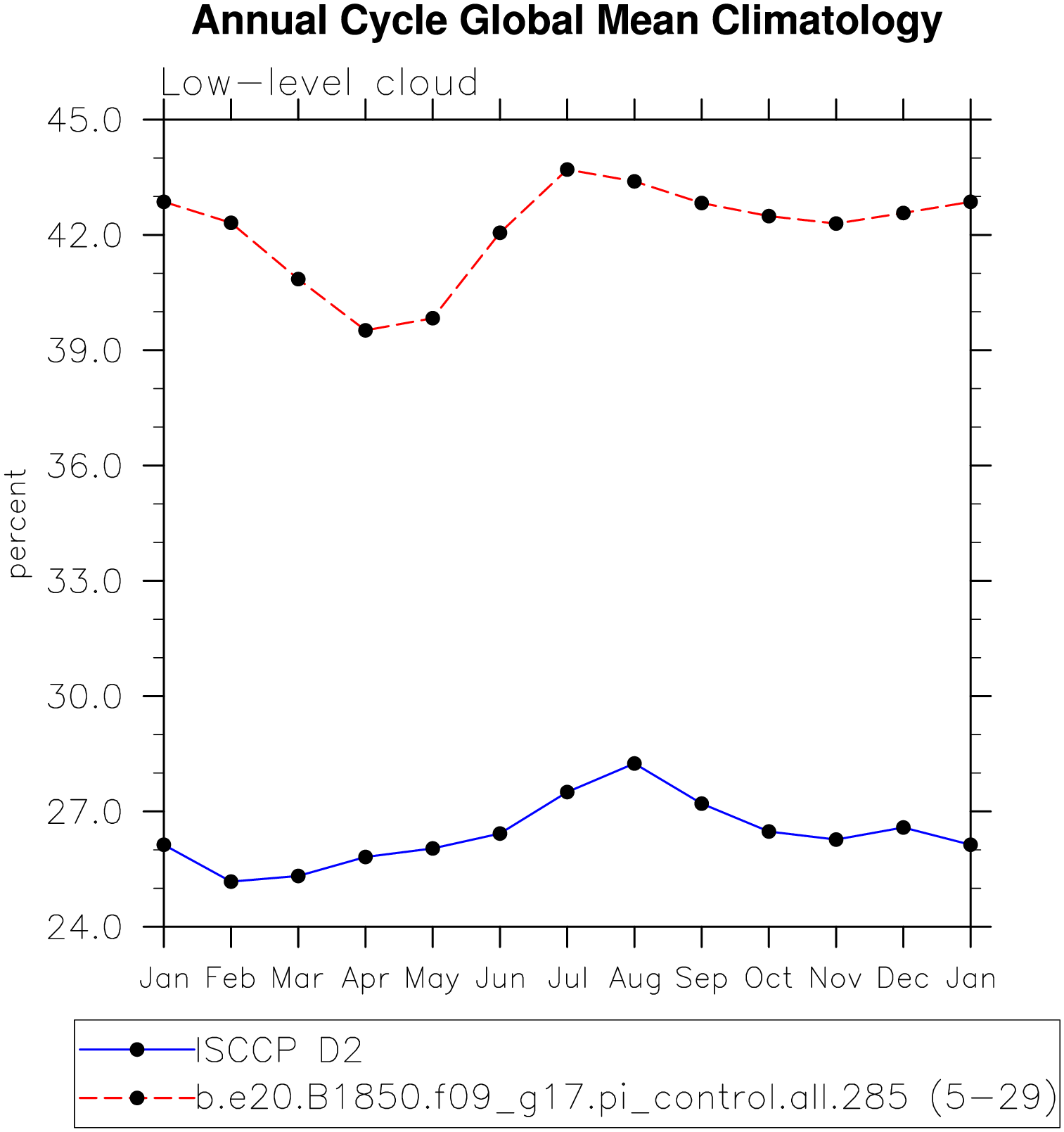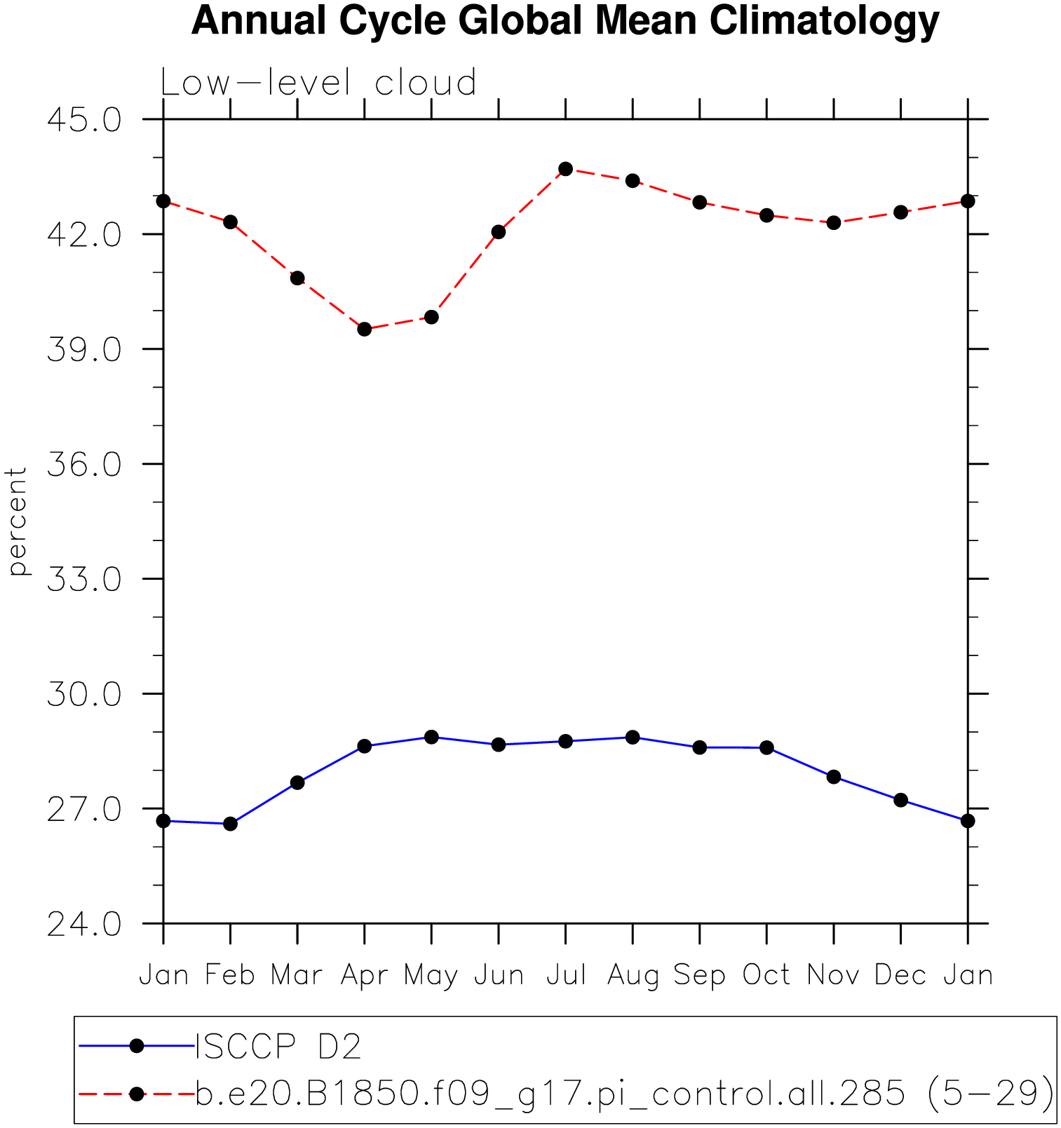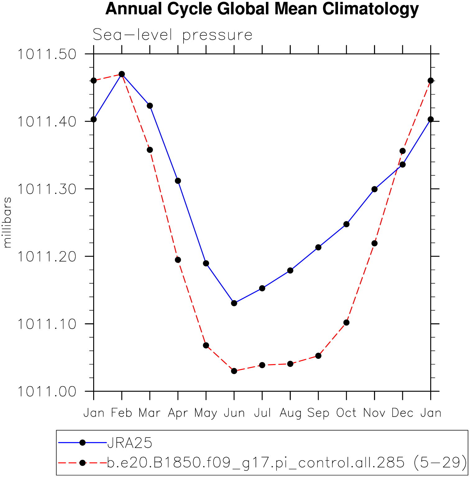 DIAG Set 10 - Annual cycle line plots of global means