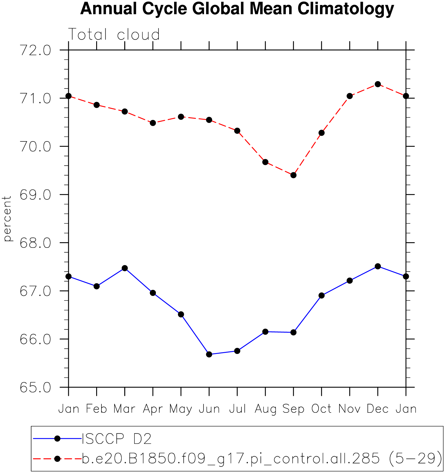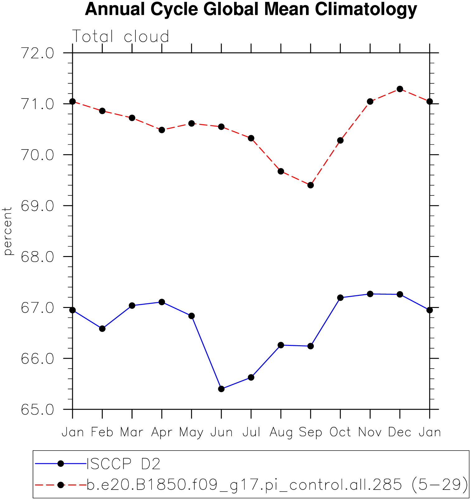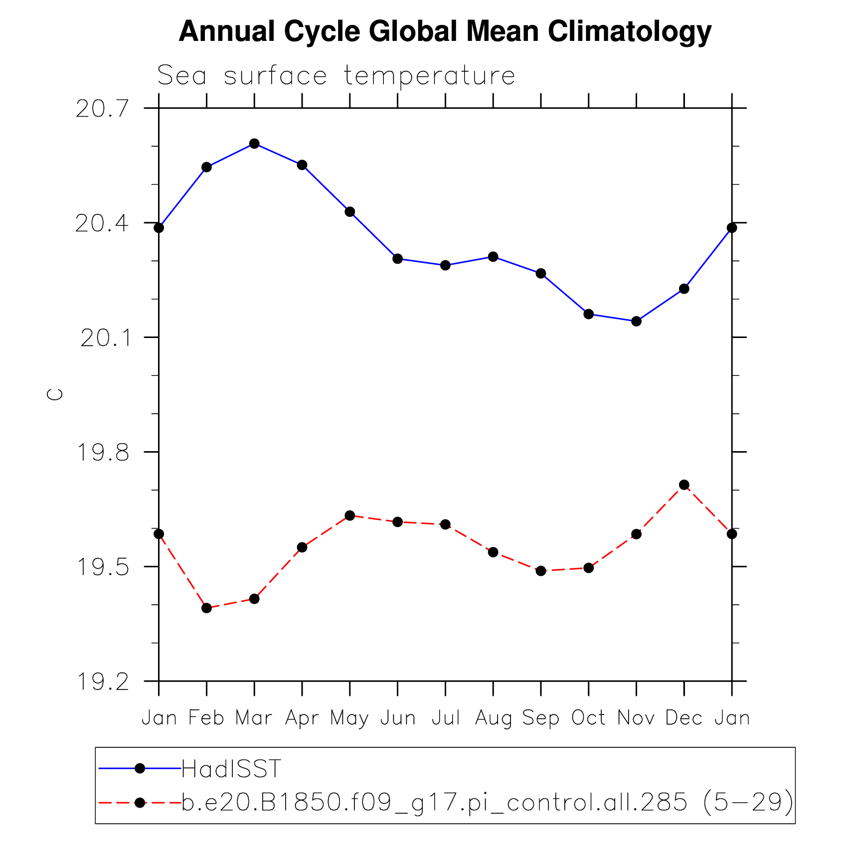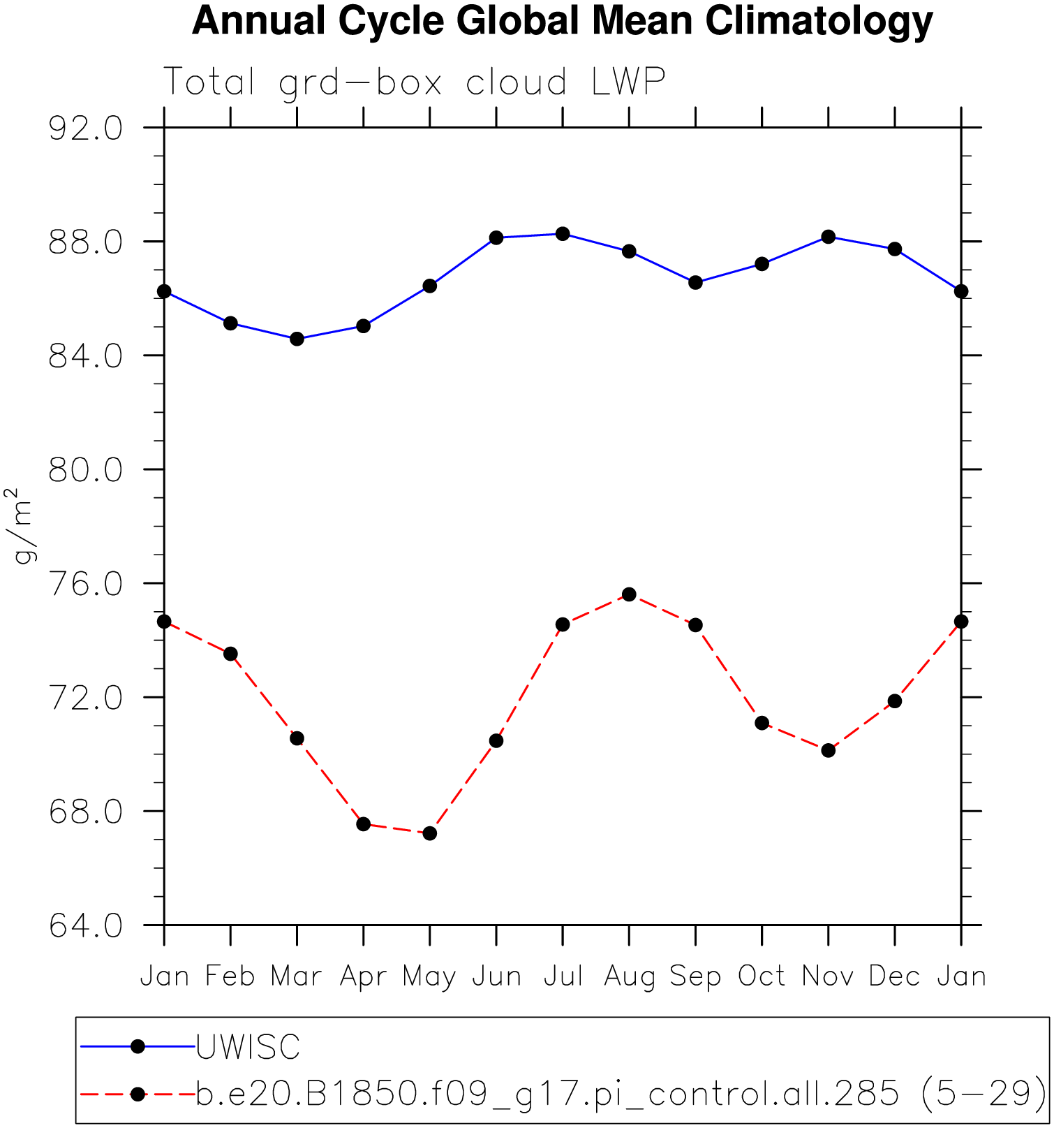 DIAG Set 10 - Annual cycle line plots of global means