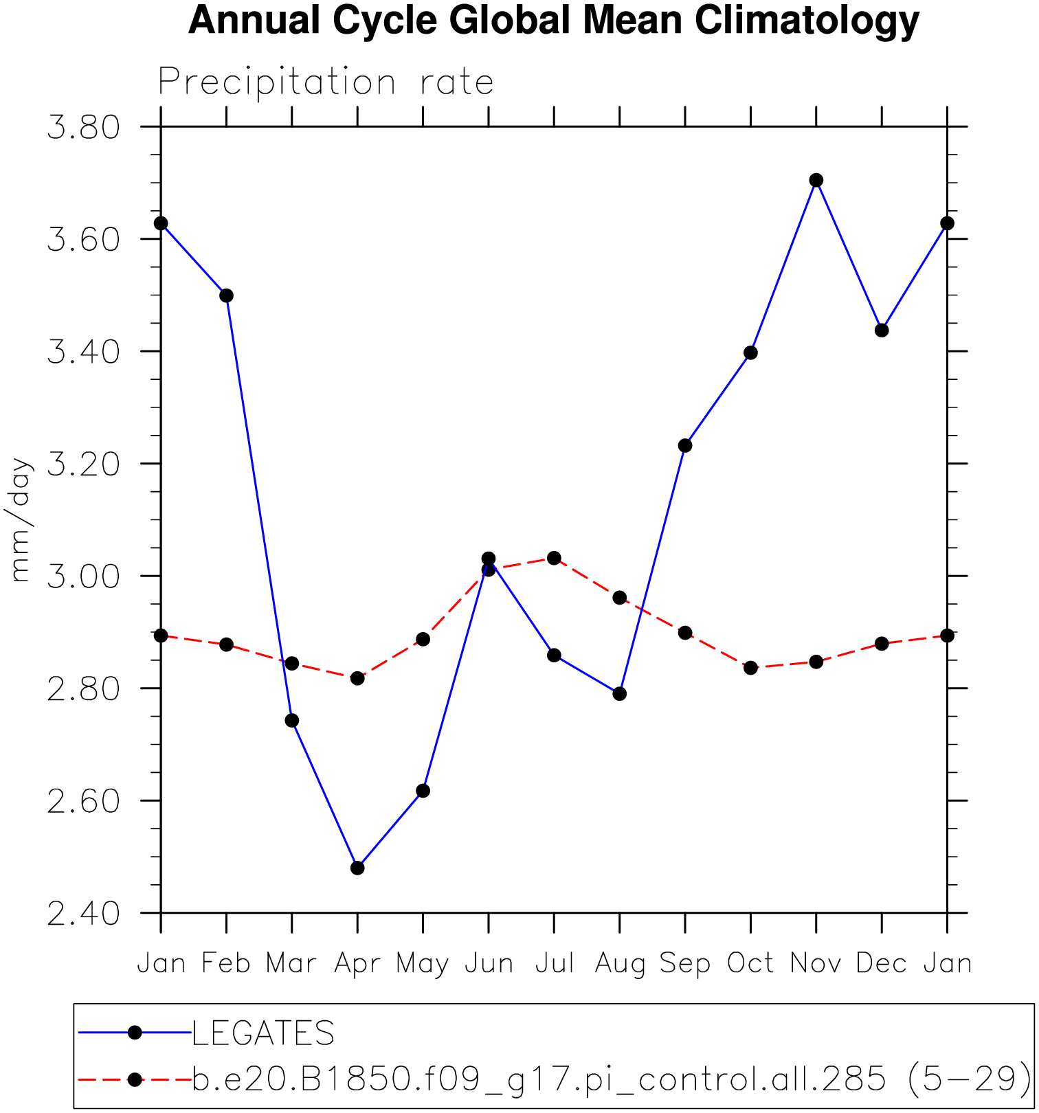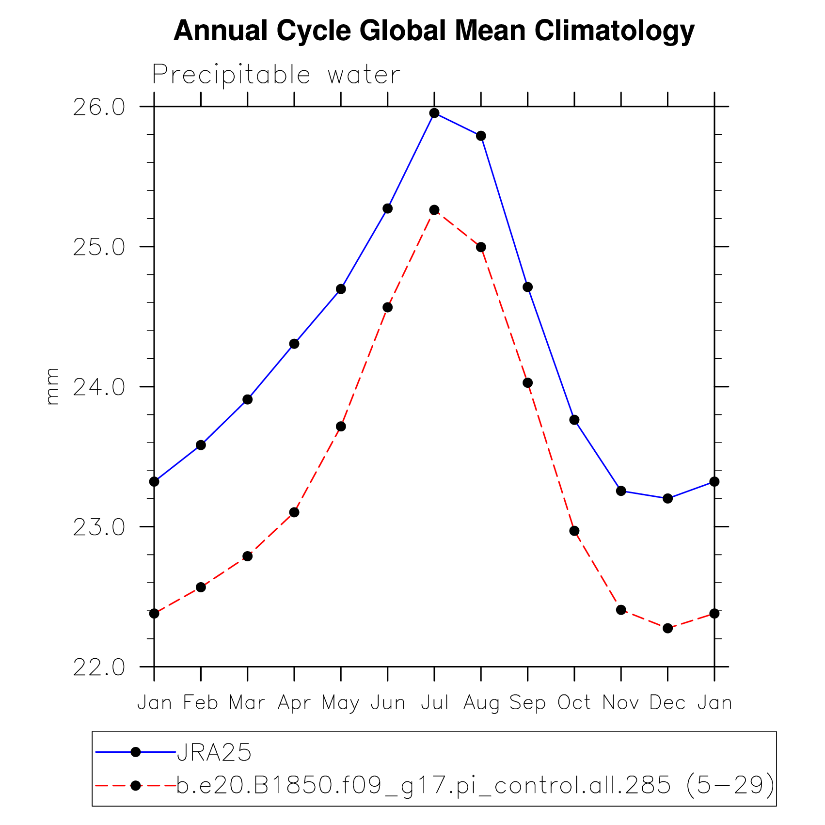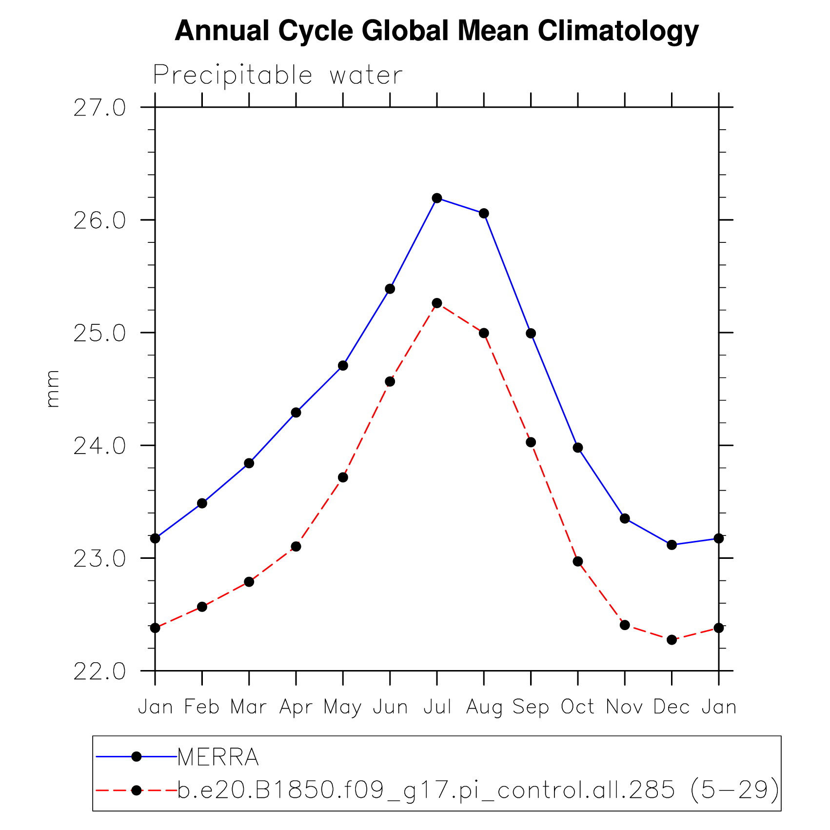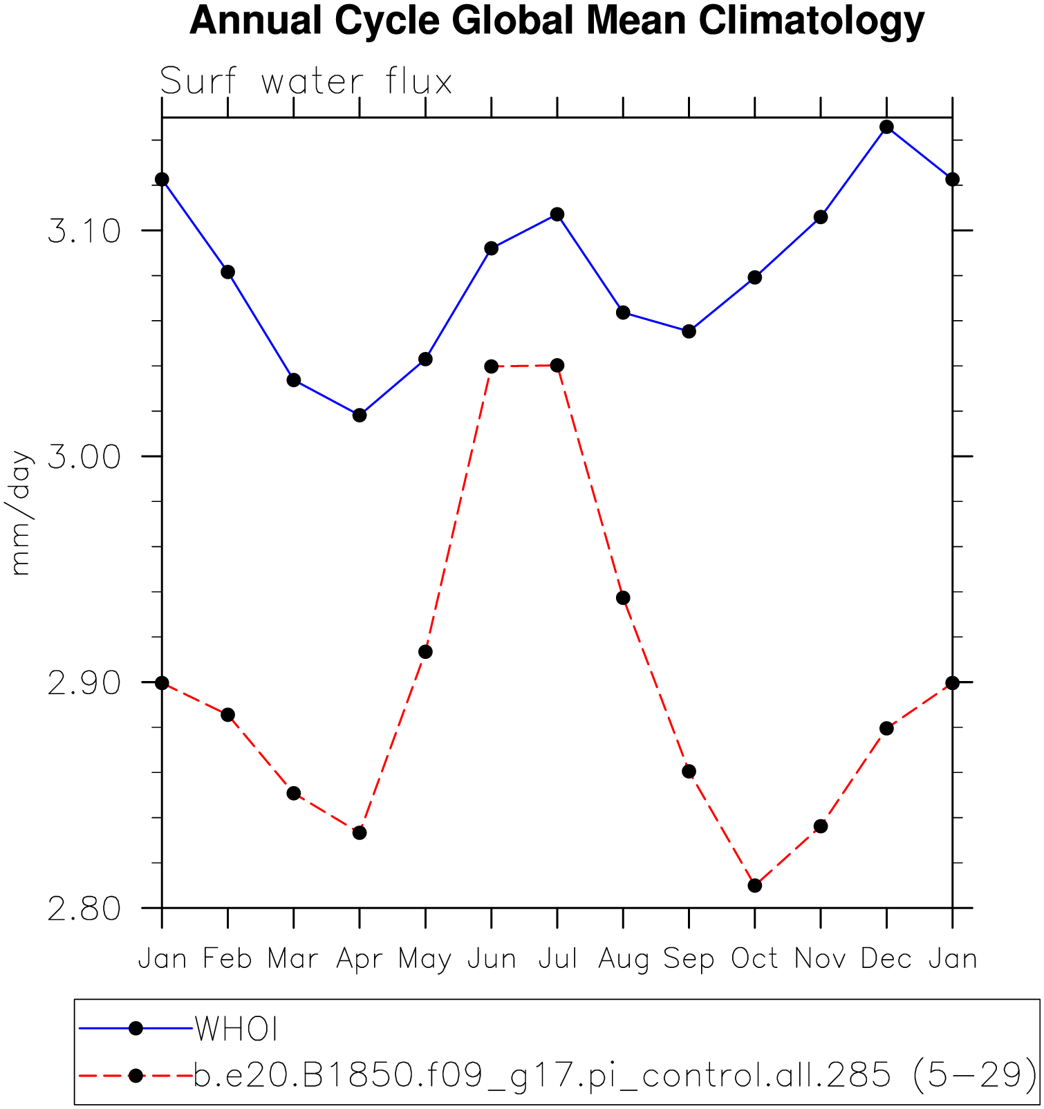 DIAG Set 10 - Annual cycle line plots of global means