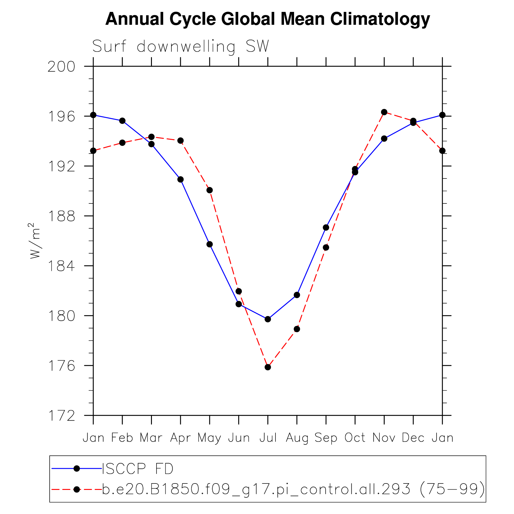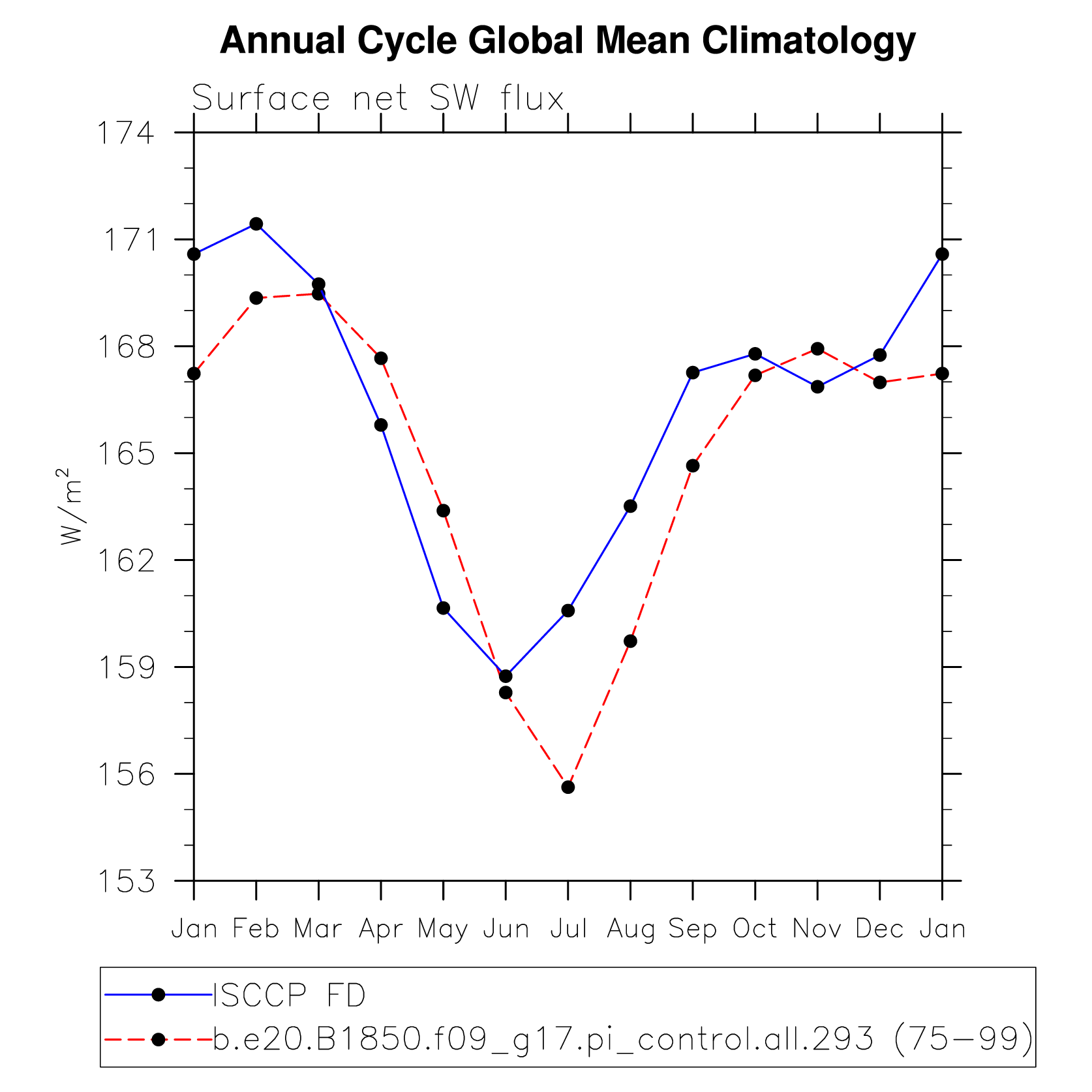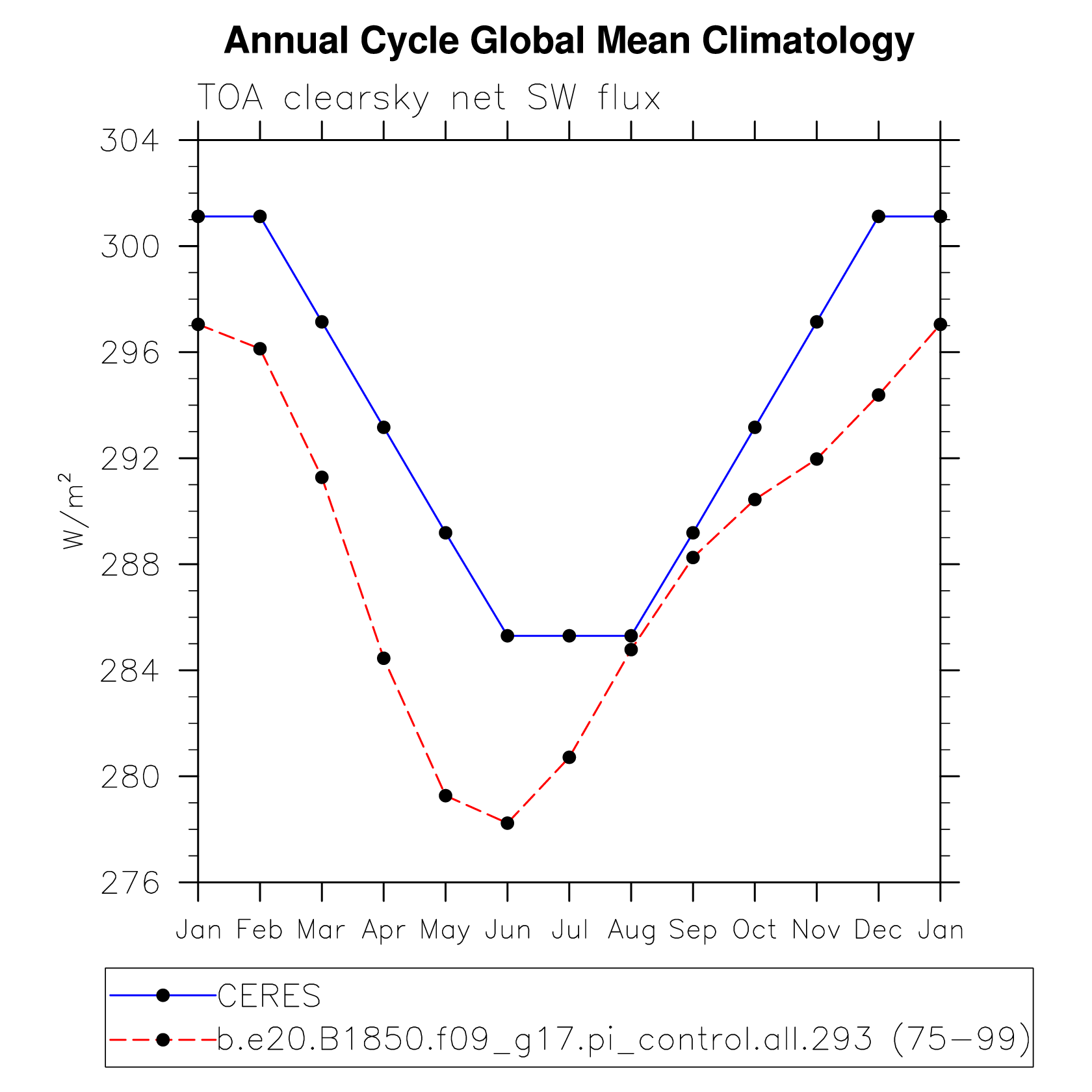DIAG Set 10 - Annual cycle line plots of global means