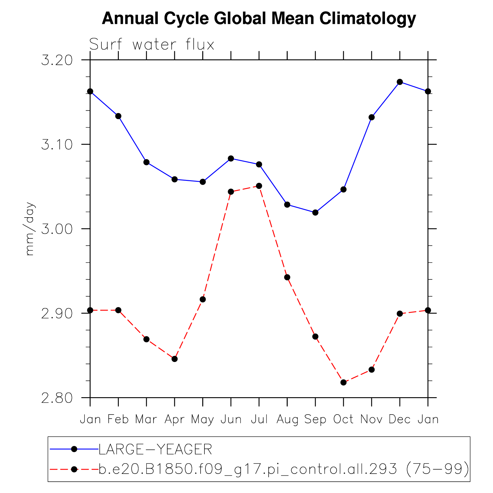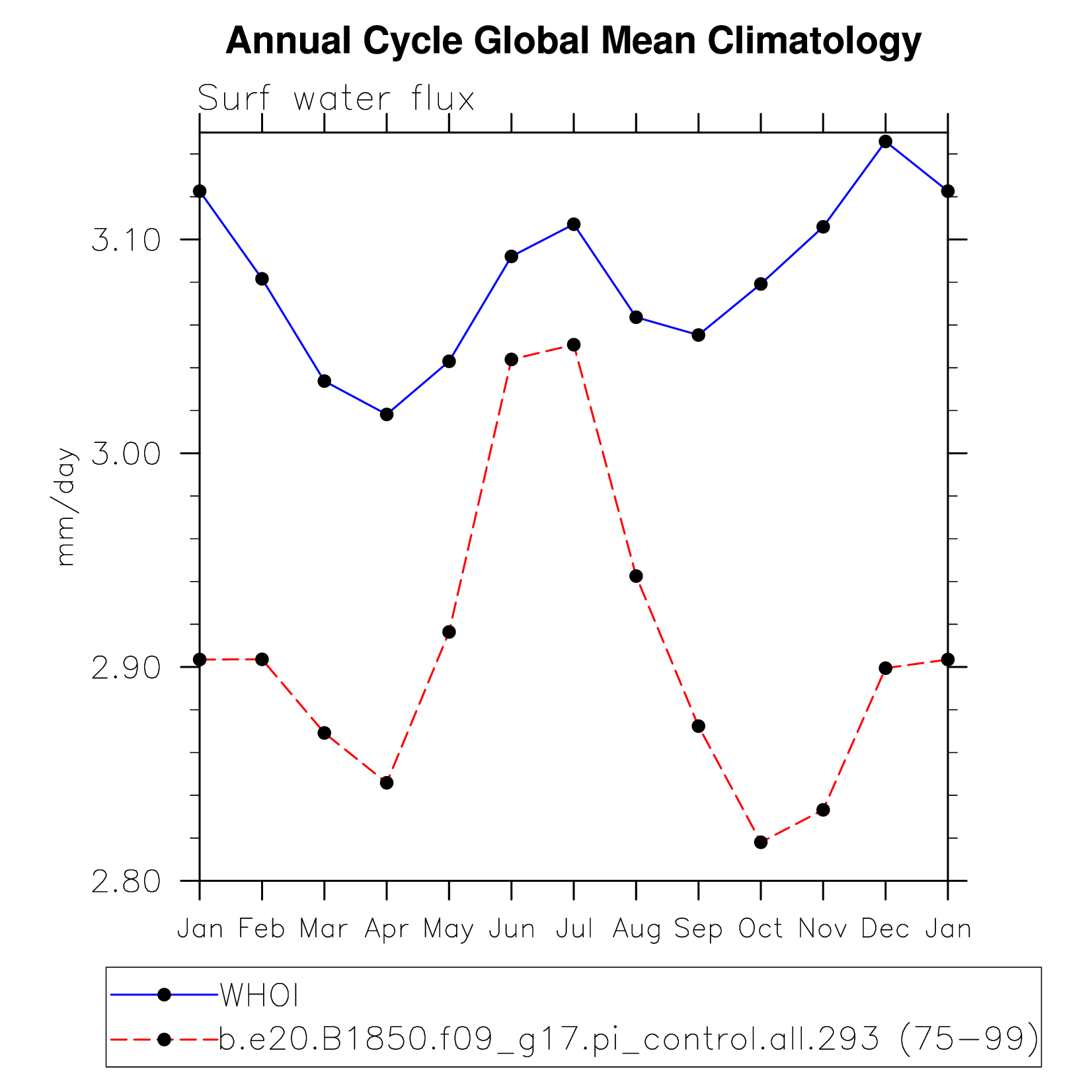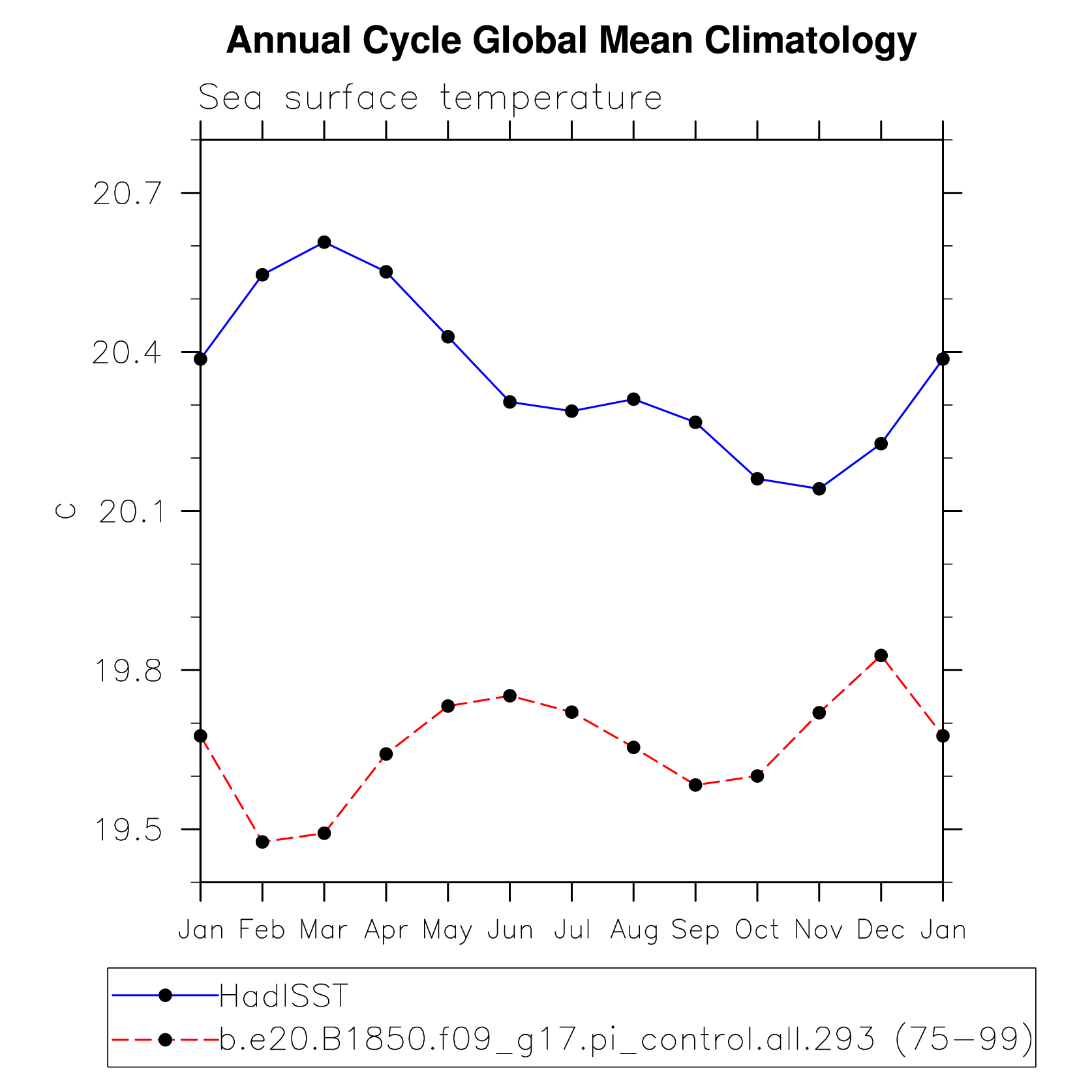 DIAG Set 10 - Annual cycle line plots of global means