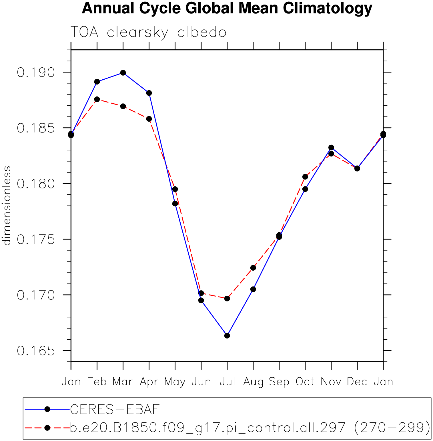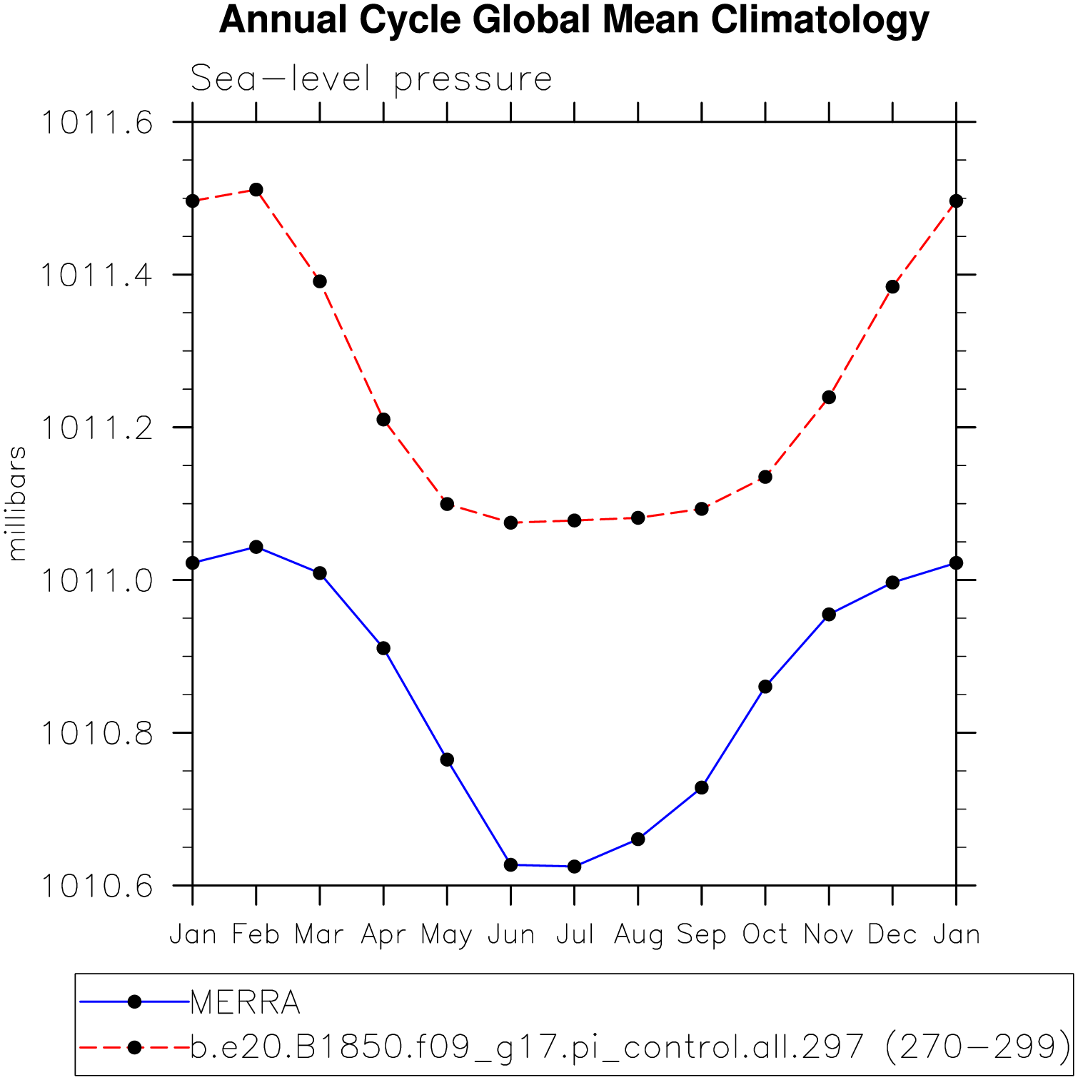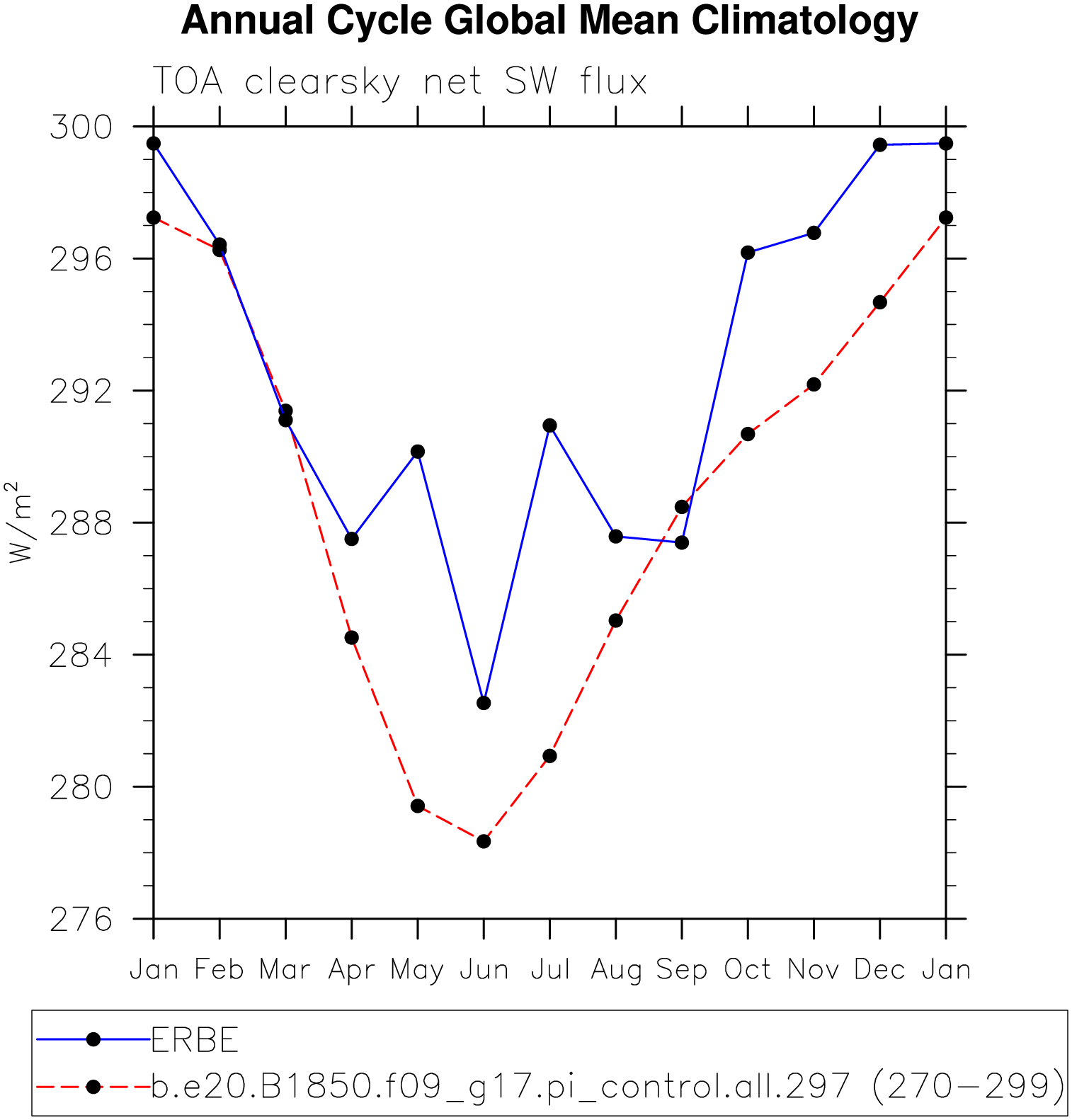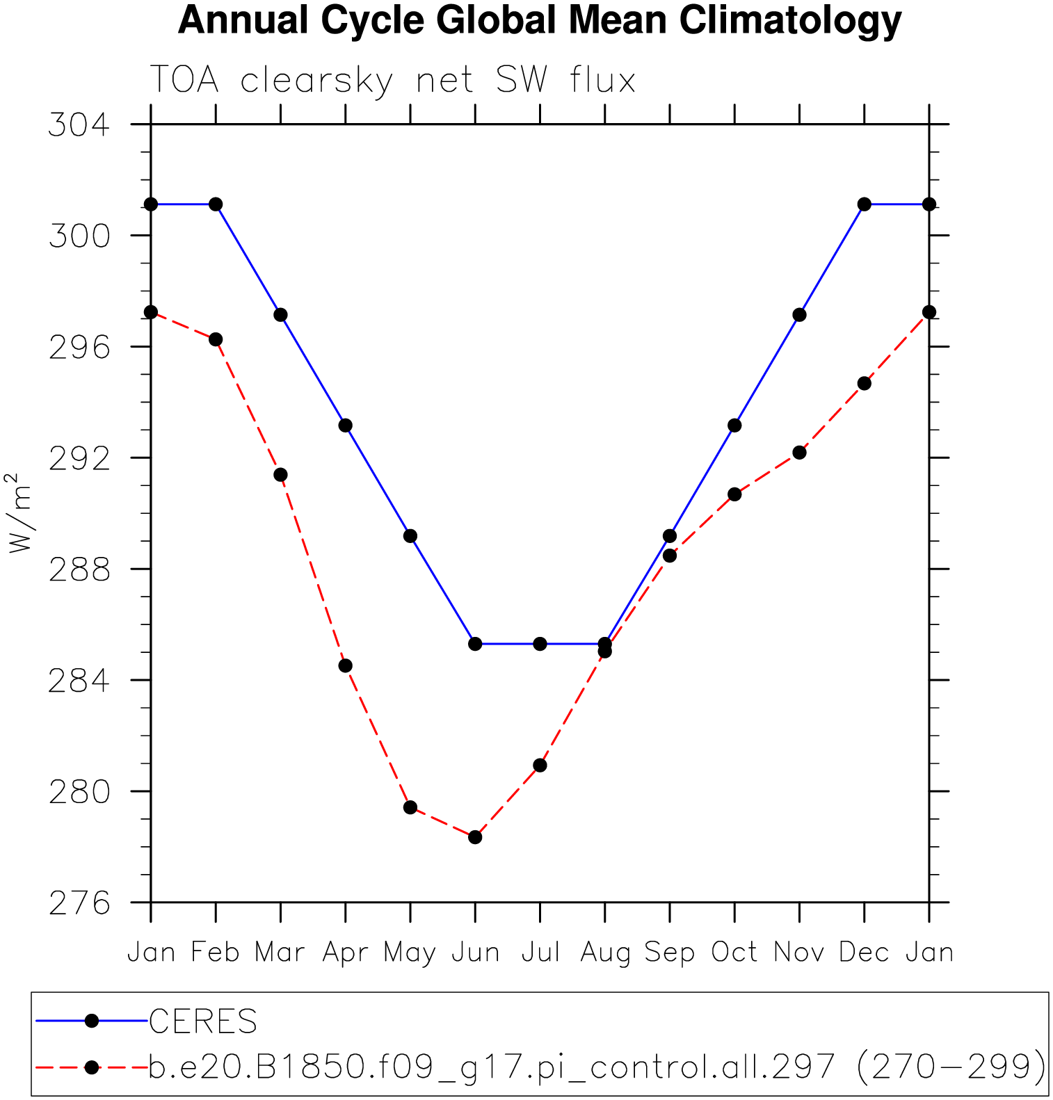 DIAG Set 10 - Annual cycle line plots of global means