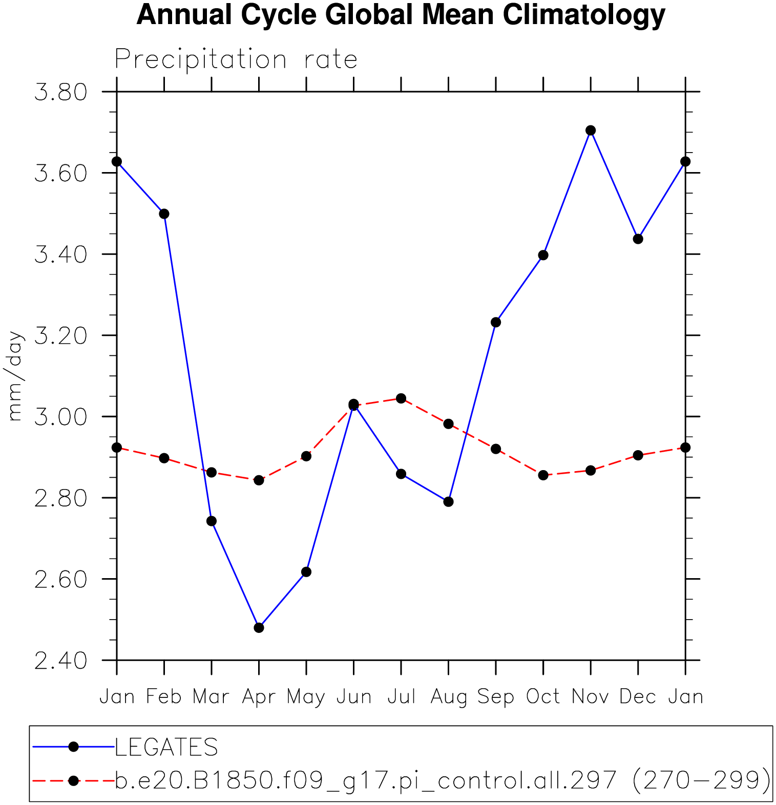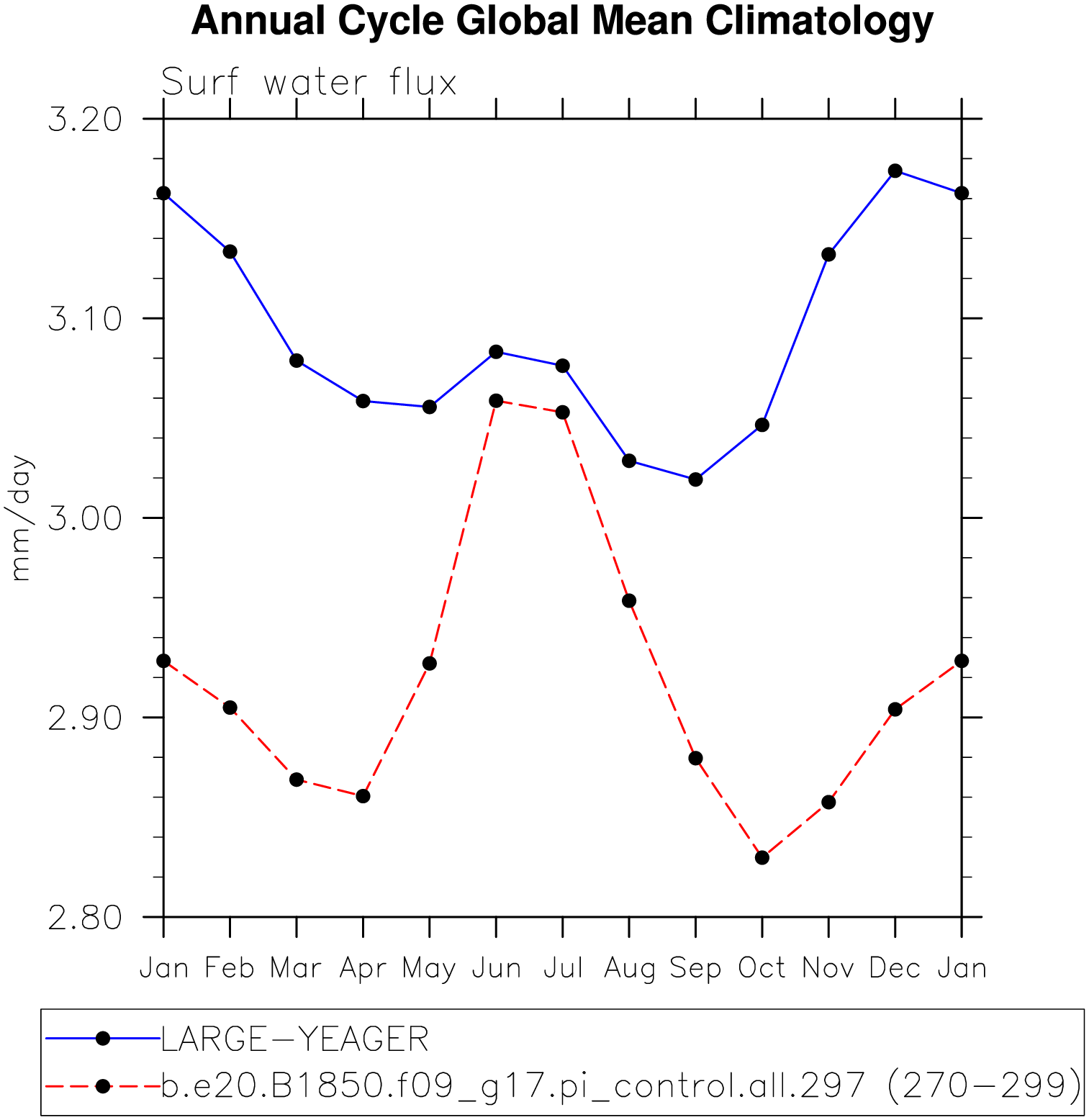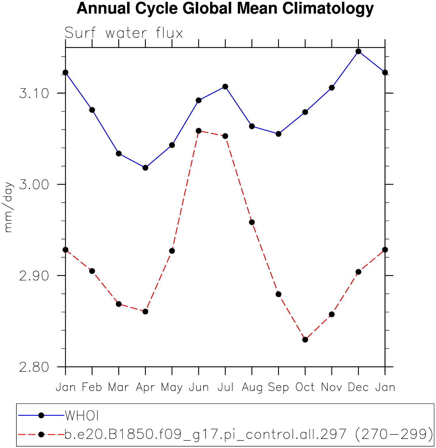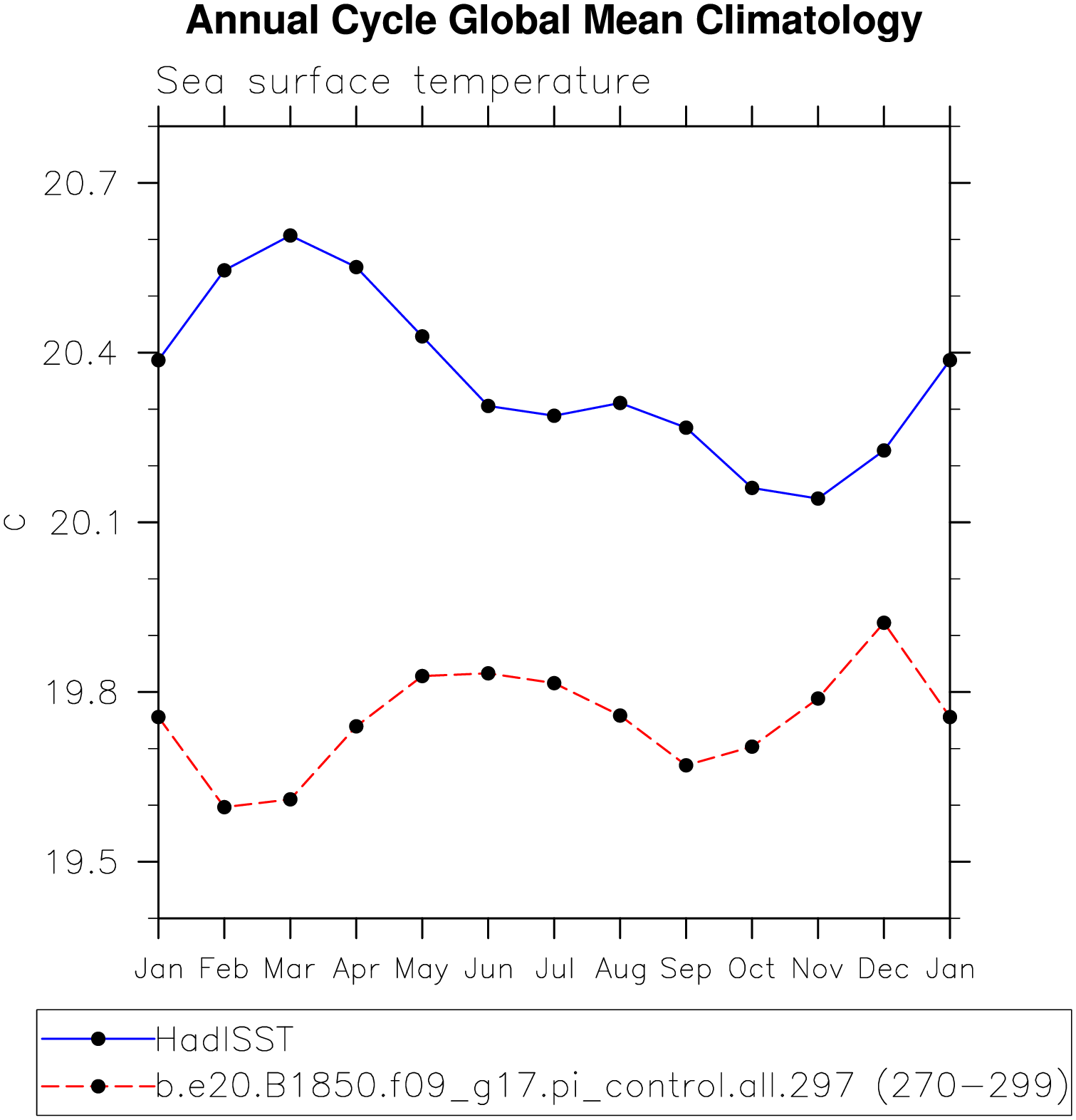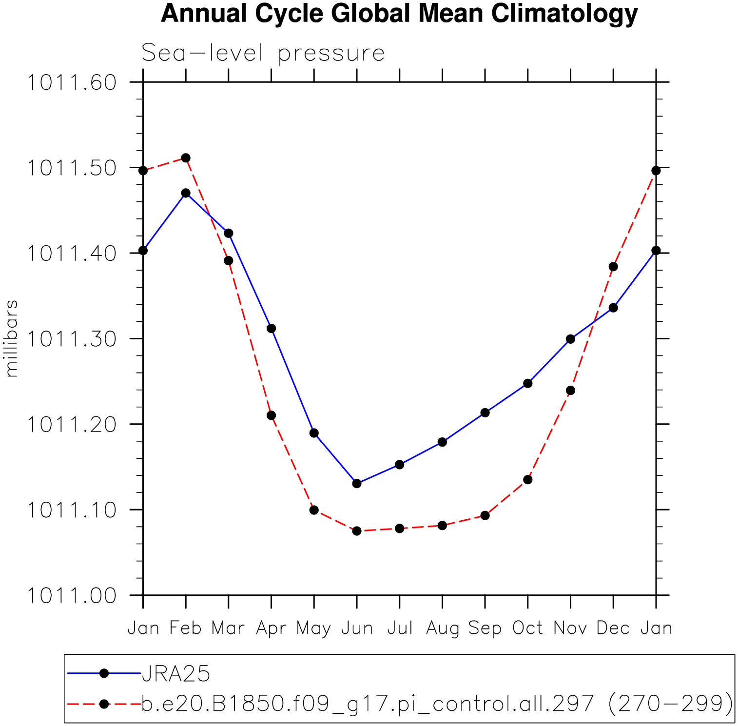 DIAG Set 10 - Annual cycle line plots of global means