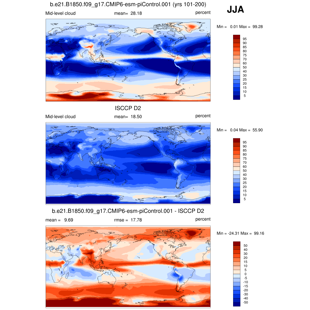 | CLDMED_ISCCPCOSP | Mid-topped cloud amount (tau > 0.3) | plot | plot | plot |