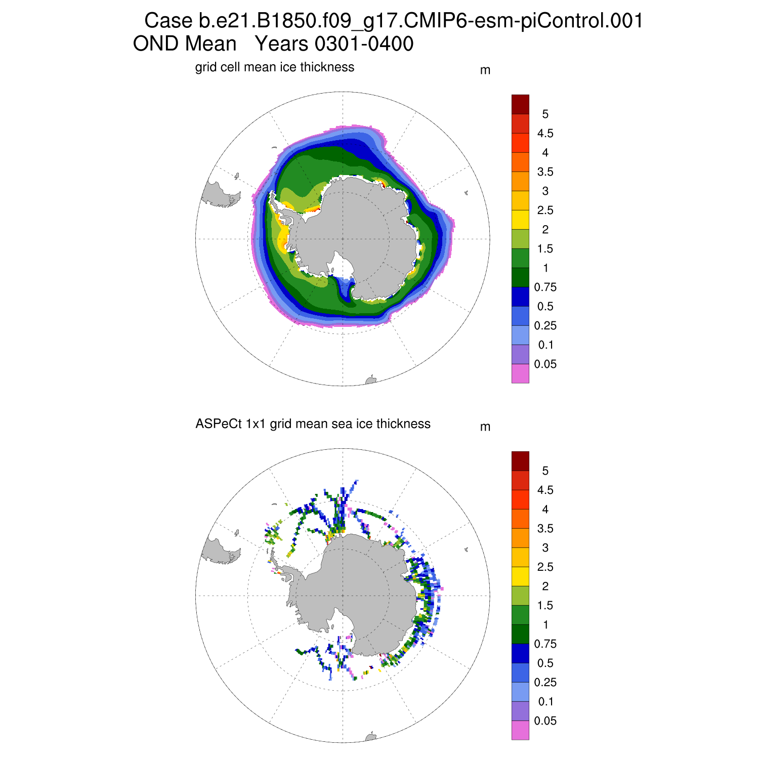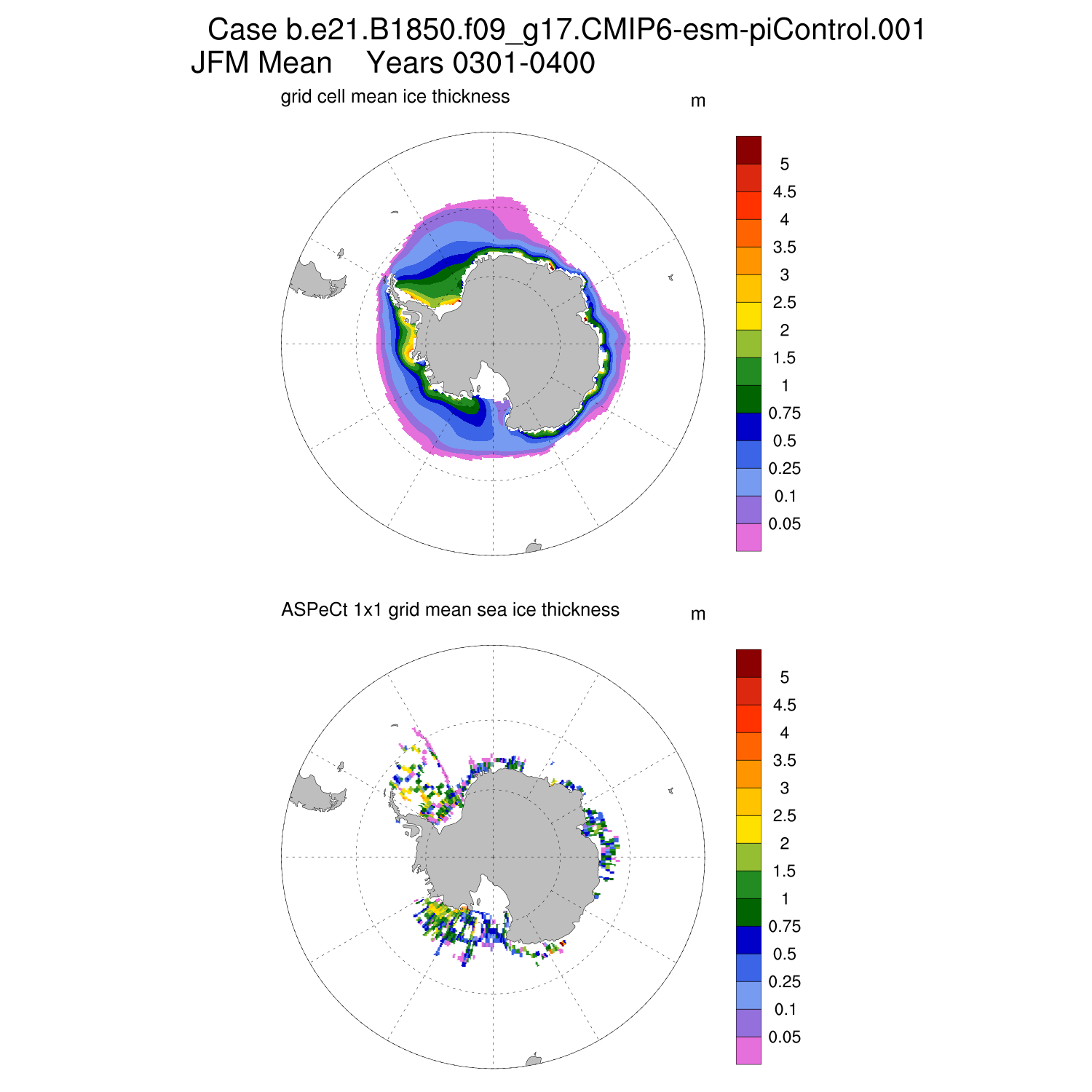 Ice Thickness vs ASPeCt (SH) Contour JFM AMJ JAS OND ASPeCt (SH) info