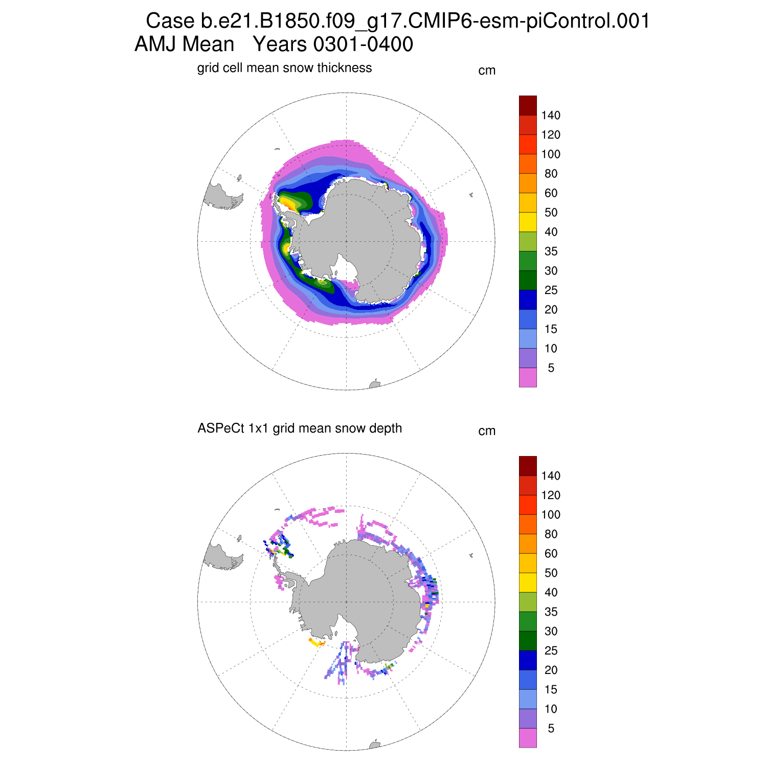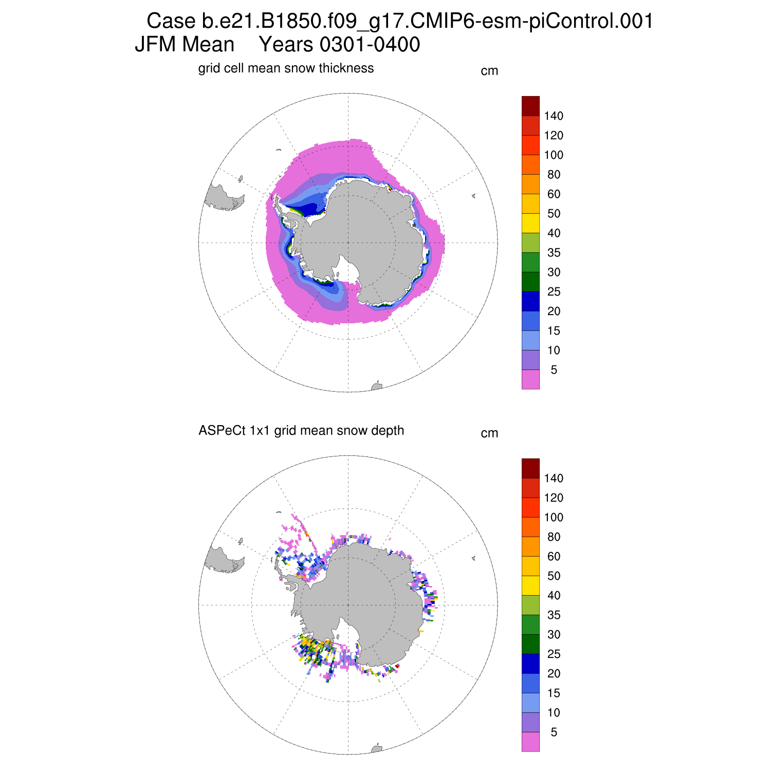 Snow Depth vs ASPeCt (SH) Contour JFM AMJ JAS OND ASPeCt (SH) info