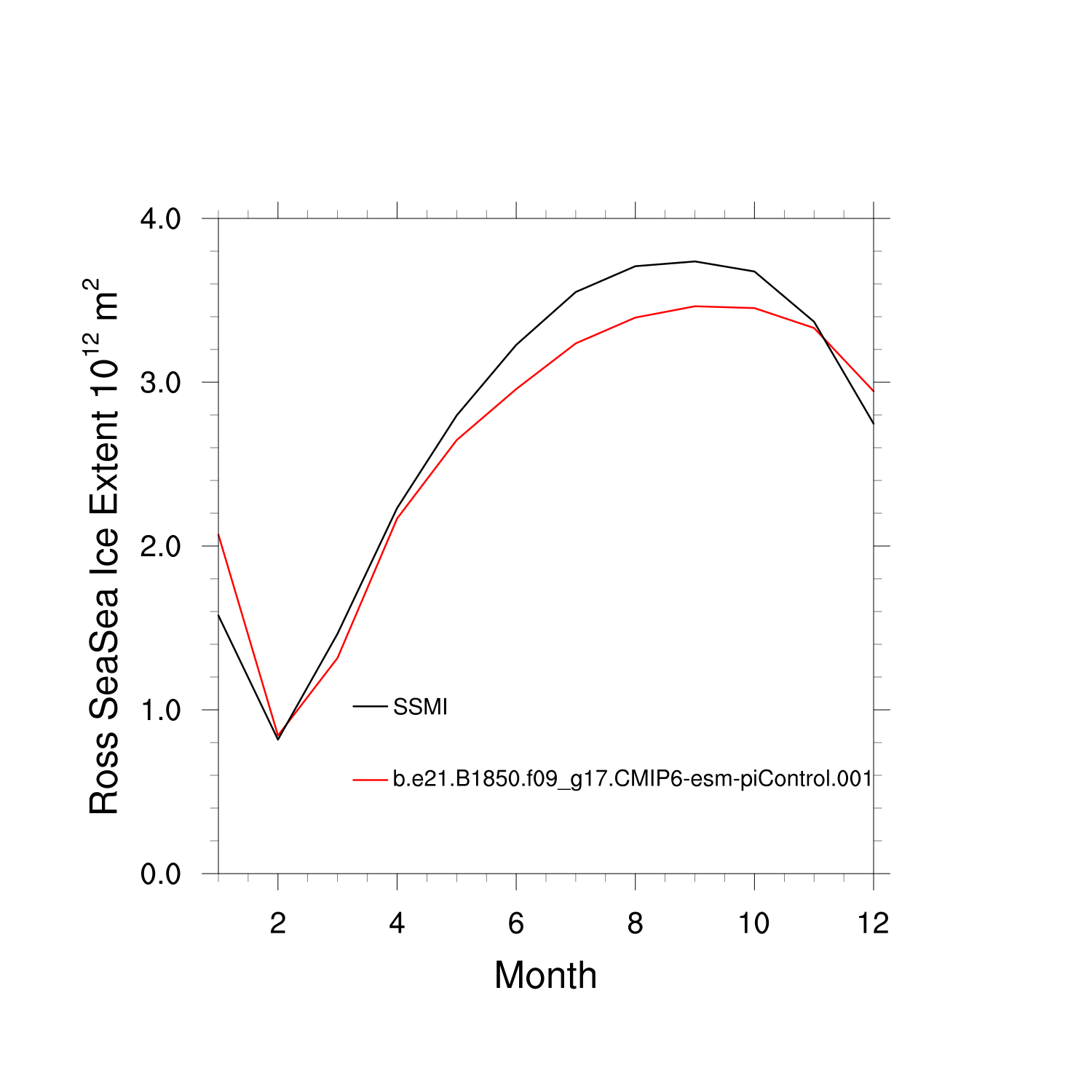 Climatological Monthly Mean Extent vs Obs plot Climatological Monthly Mean Extent vs Obs plot