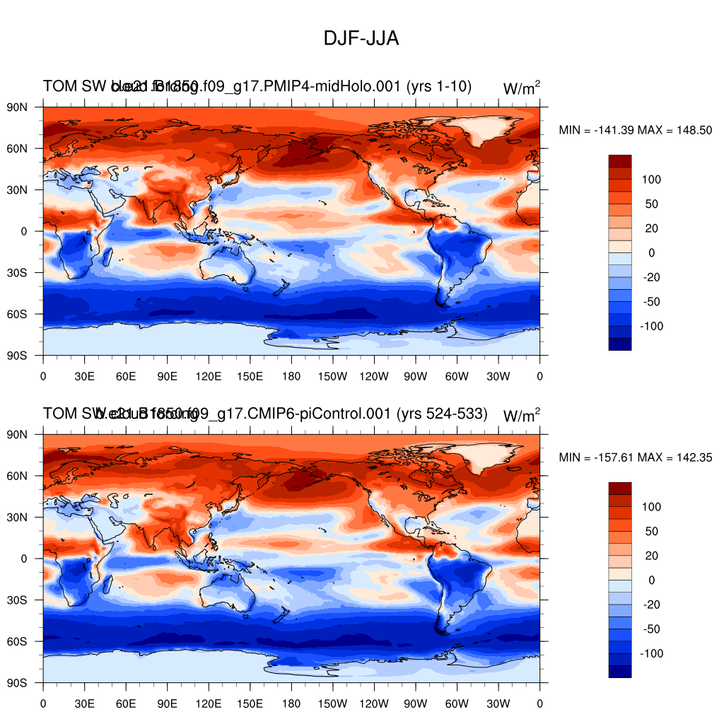 DIAG Set 9 - Horizontal contour plots of DJF-JJA differences