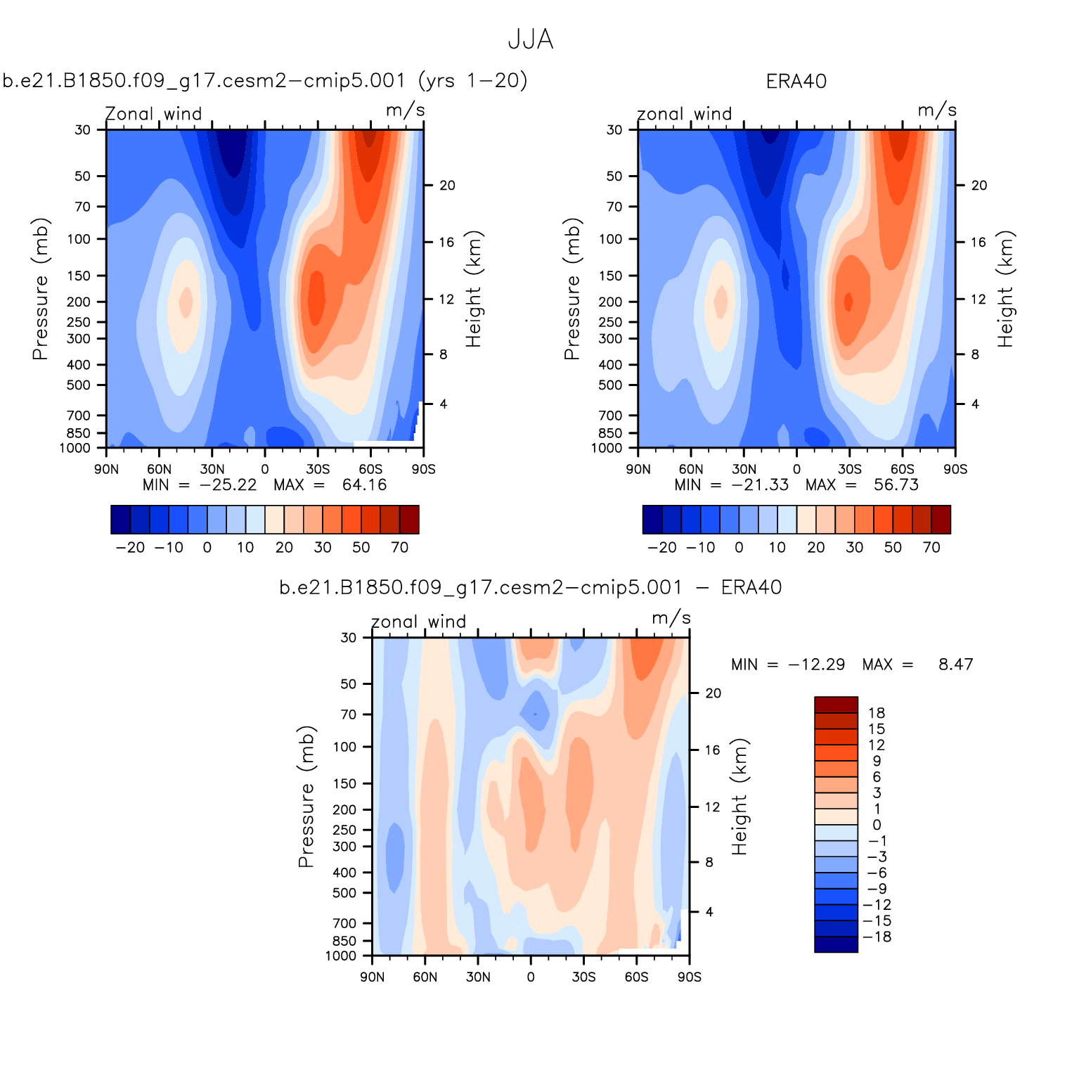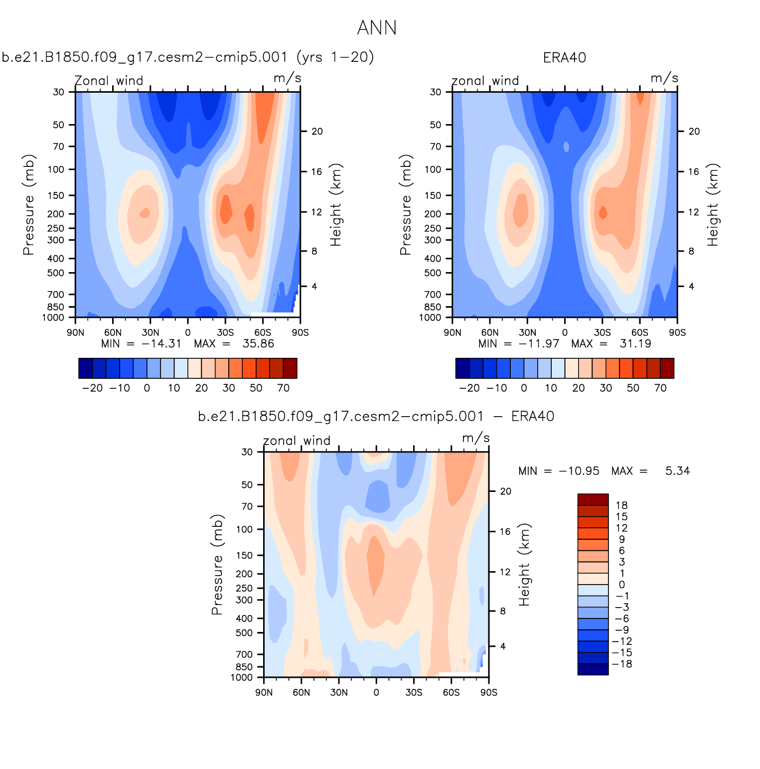 DIAG Set 4 - Vertical contour plots of DJF, JJA and ANN zonal means