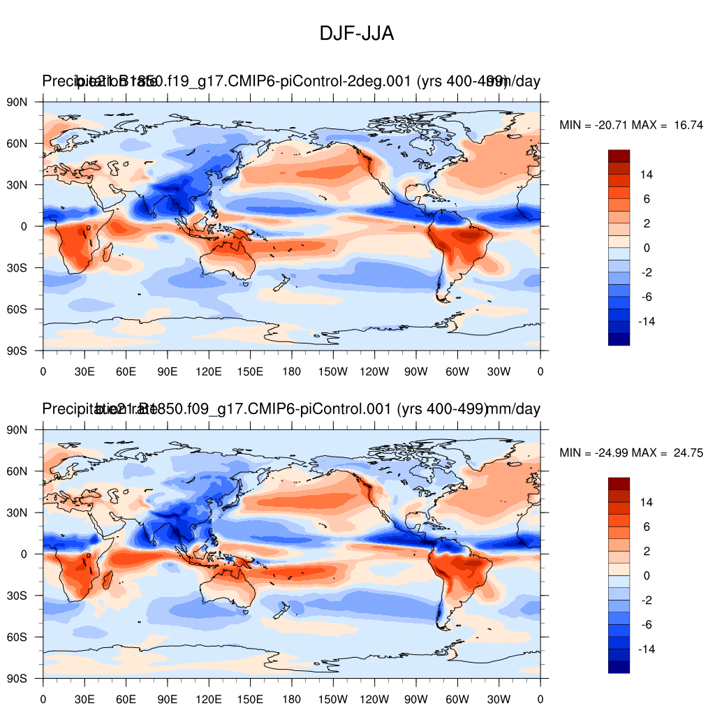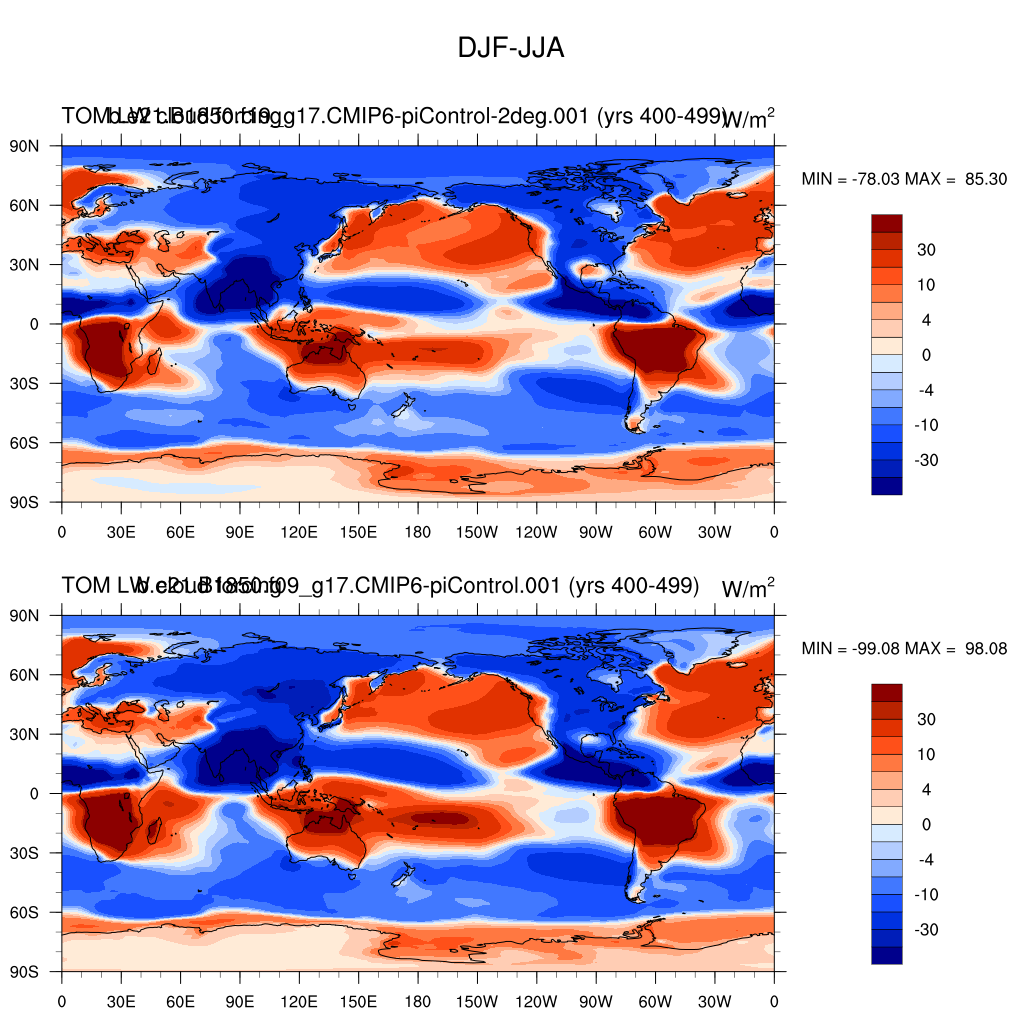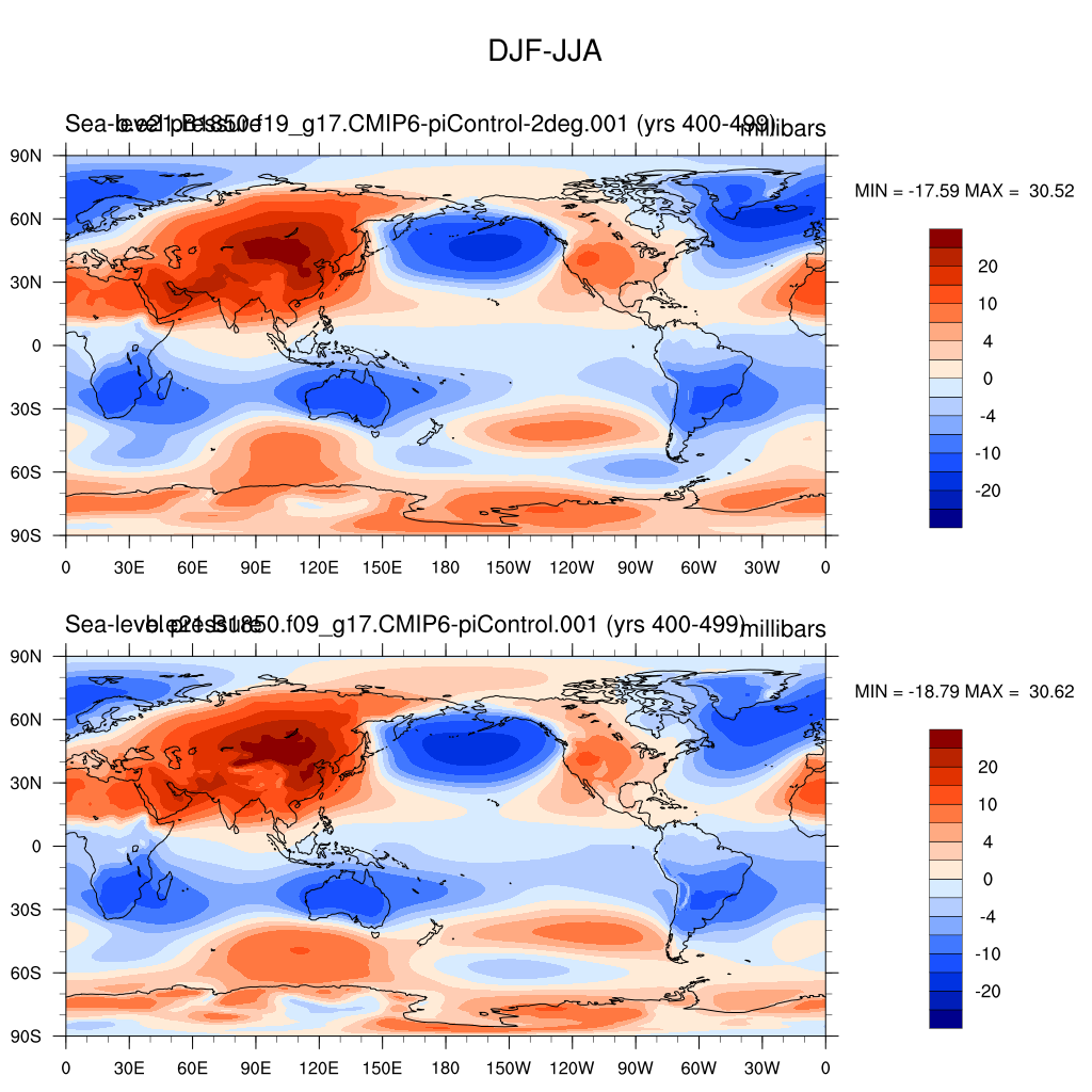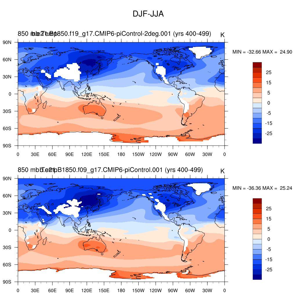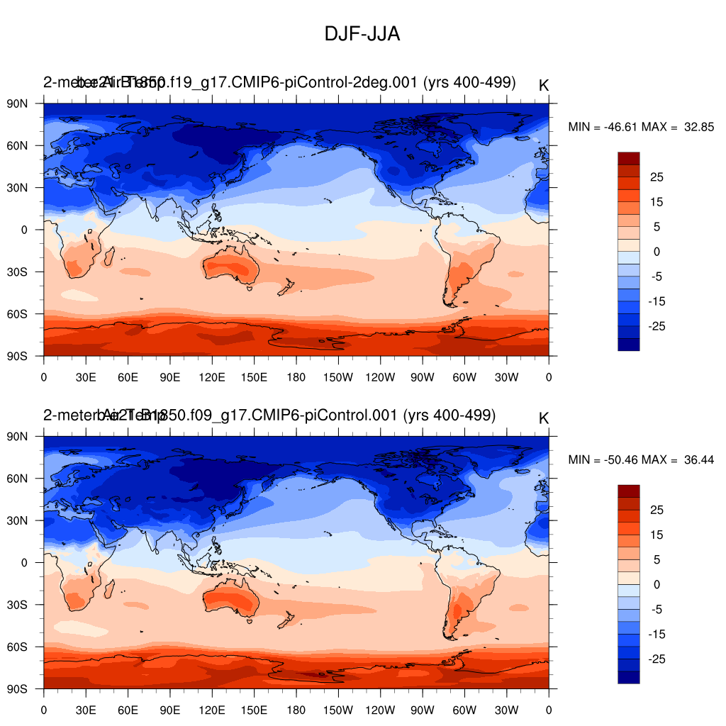 DIAG Set 9 - Horizontal contour plots of DJF-JJA differences