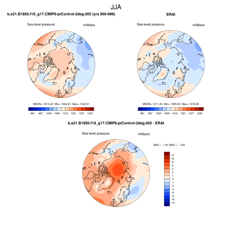 b.e21.B1850.f19_g17.CMIP6-piControl-2deg.002DIAG Set 7 - Polar contour/vector plots of DJF, JJA and ANN means