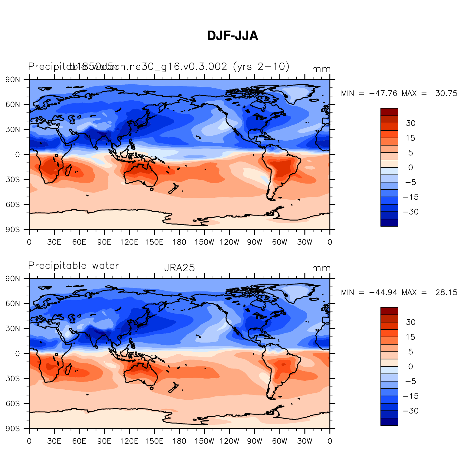 b1850c5cn.ne30_g16.v0.3.002 DIAG Set 9 - Horizontal contour plots of DJF-JJA differences