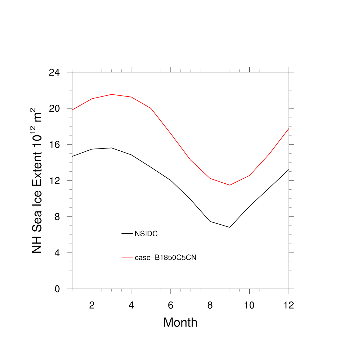 Climatological Monthly Mean Extent vs Obs