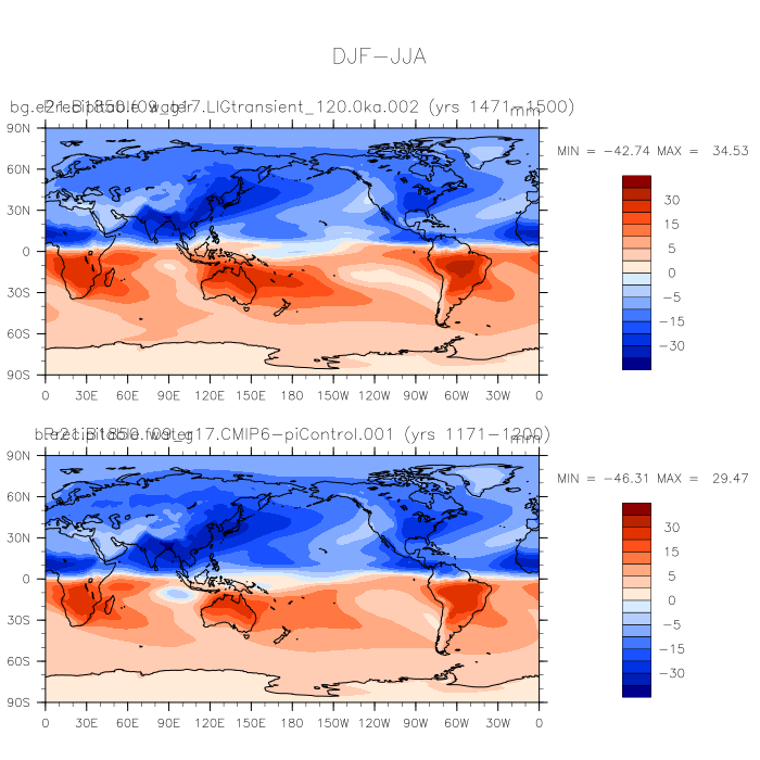 DIAG Set 9 - Horizontal contour plots of DJF-JJA differences