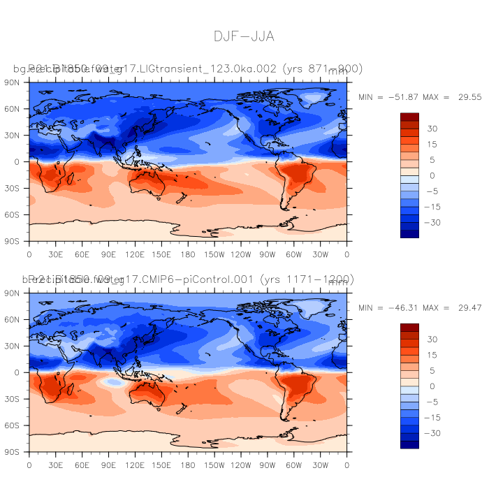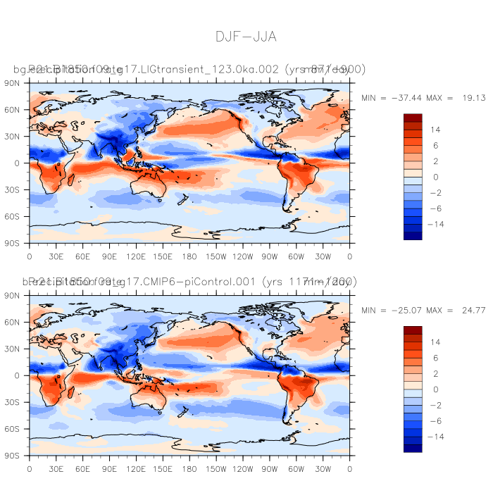 DIAG Set 9 - Horizontal contour plots of DJF-JJA differences