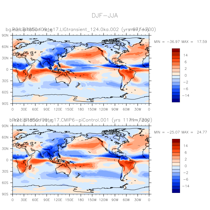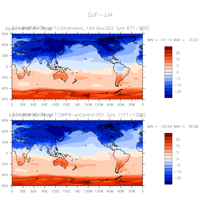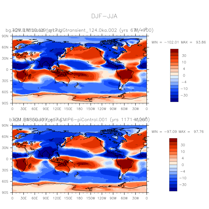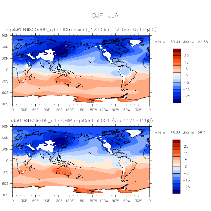 DIAG Set 9 - Horizontal contour plots of DJF-JJA differences