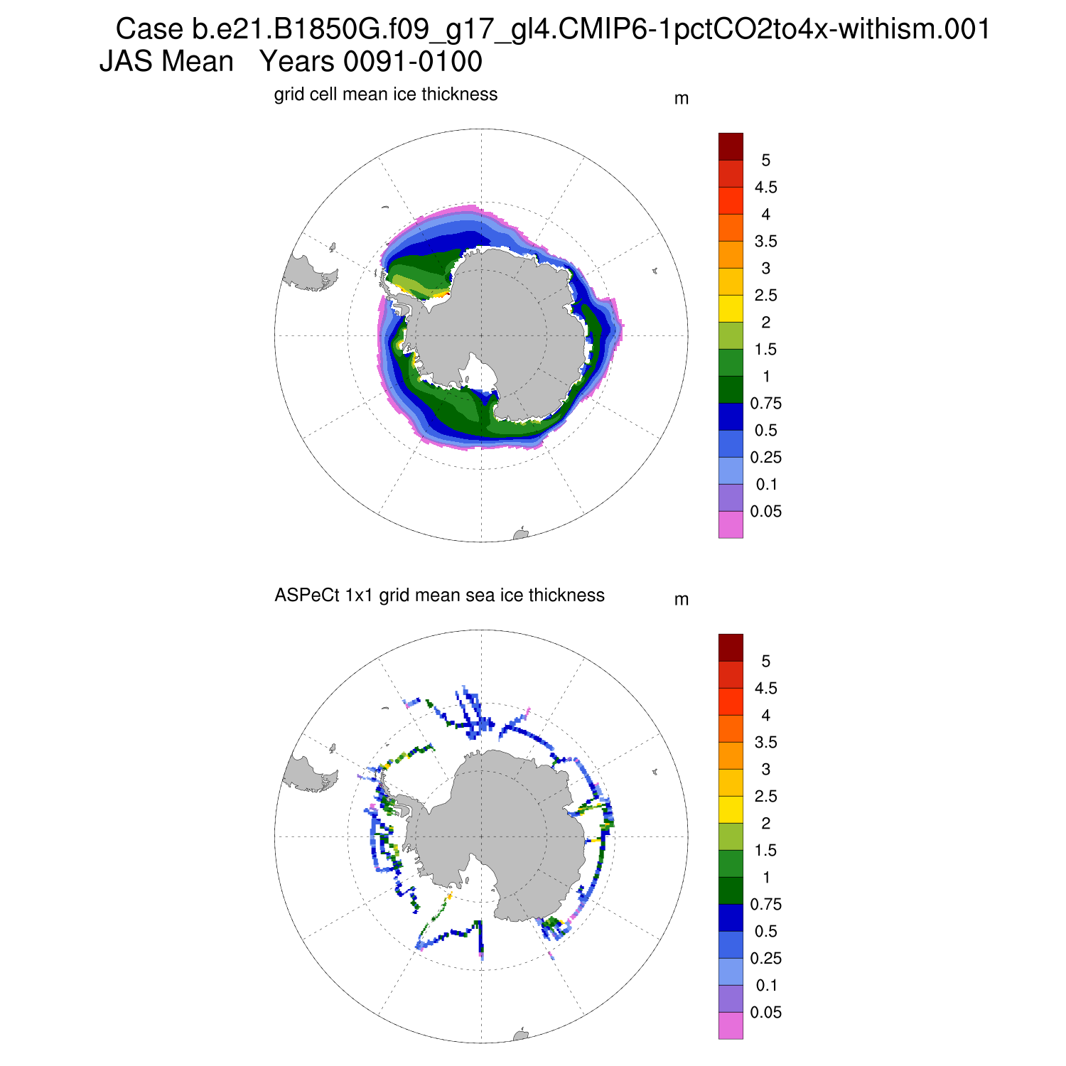 Ice Thickness vs ASPeCt (SH) Contour JFM AMJ JAS OND ASPeCt (SH) info