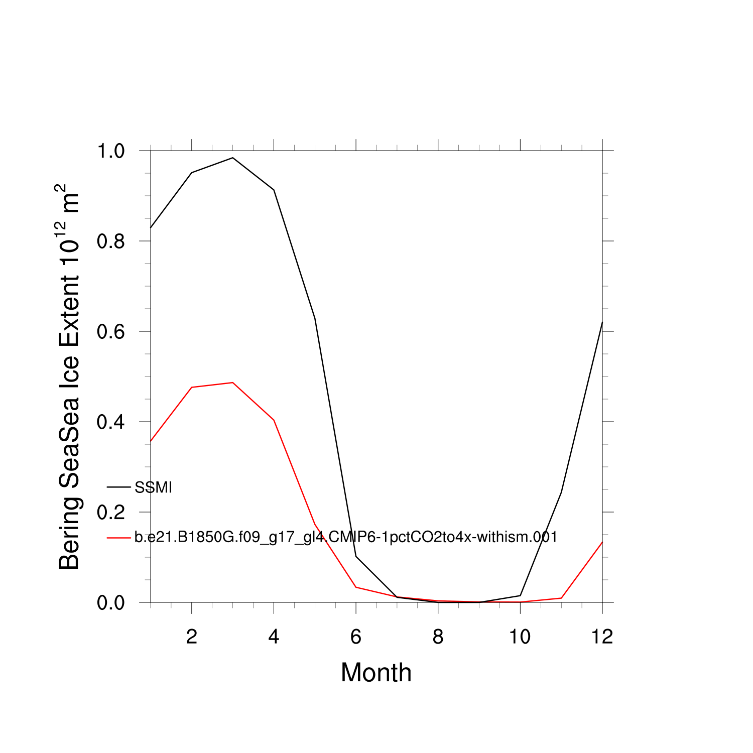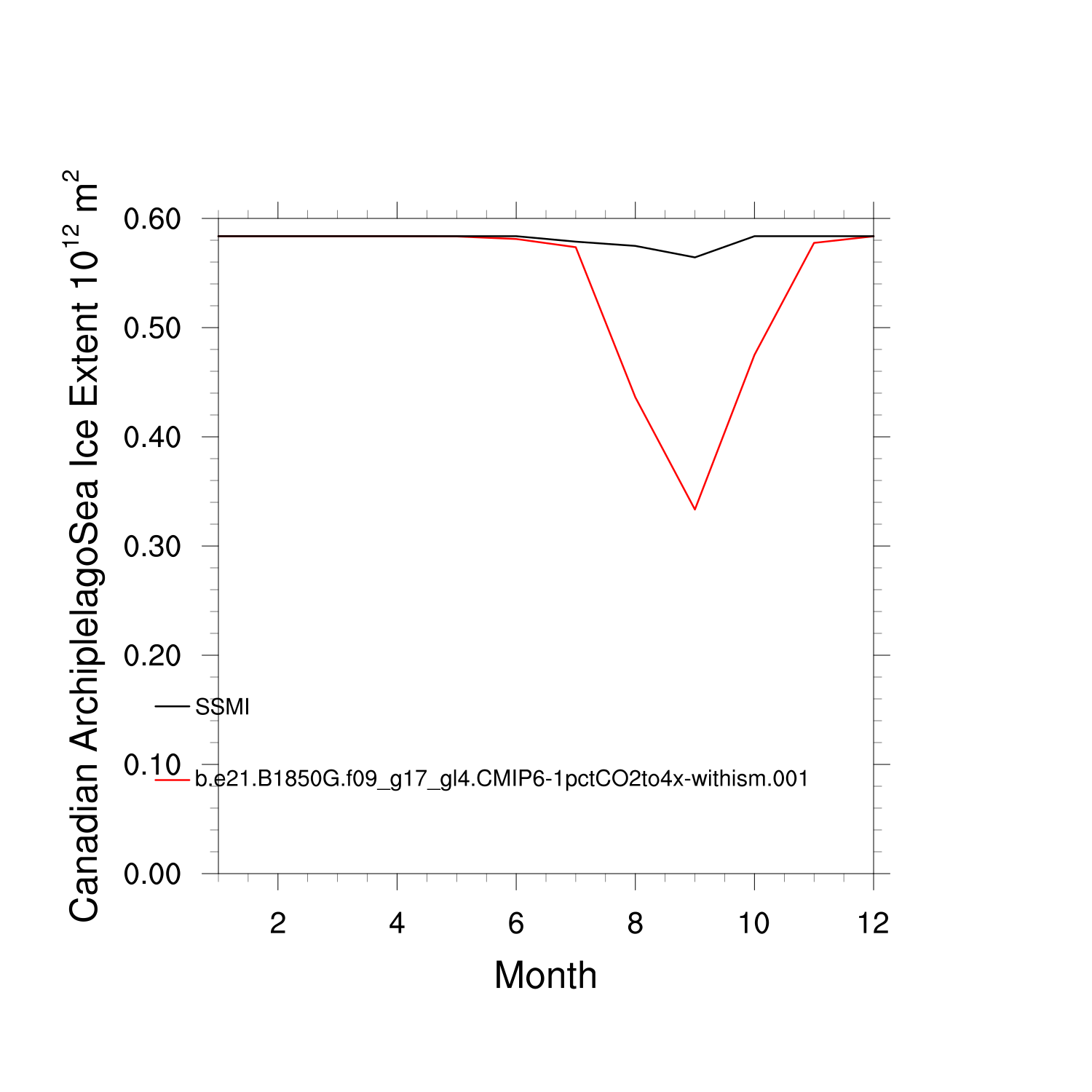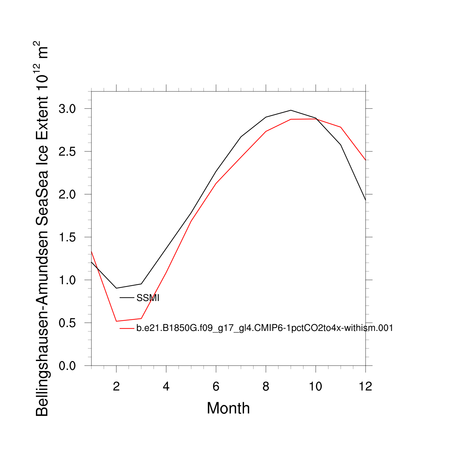 Climatological Monthly Mean Extent vs Obs plot