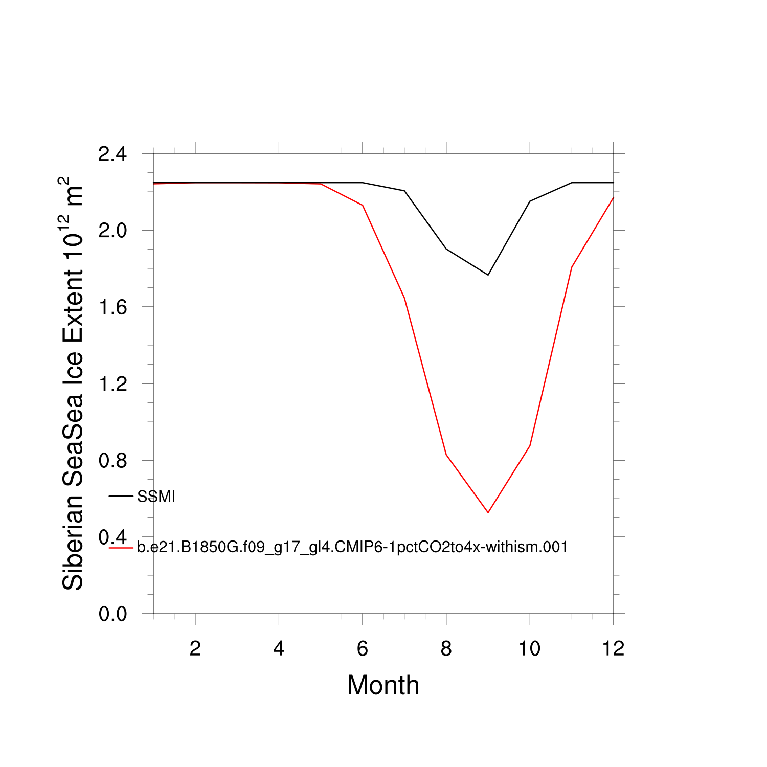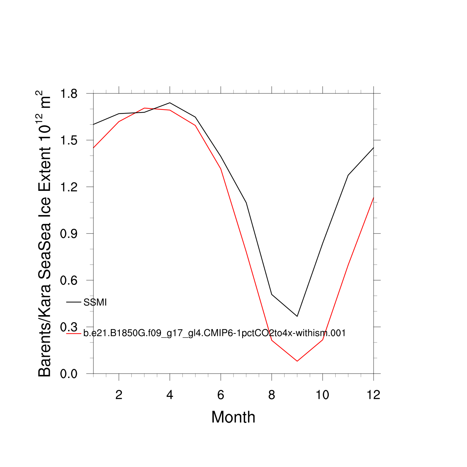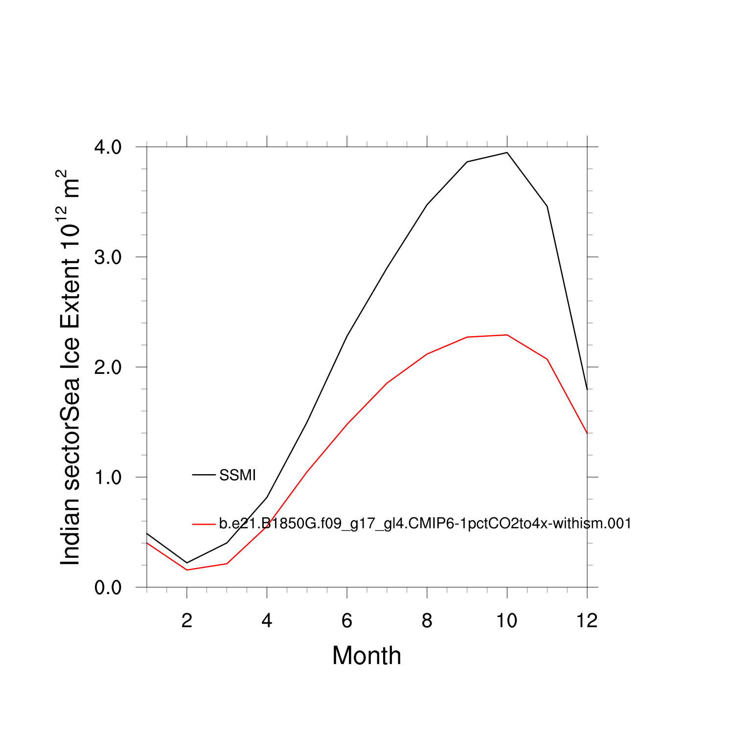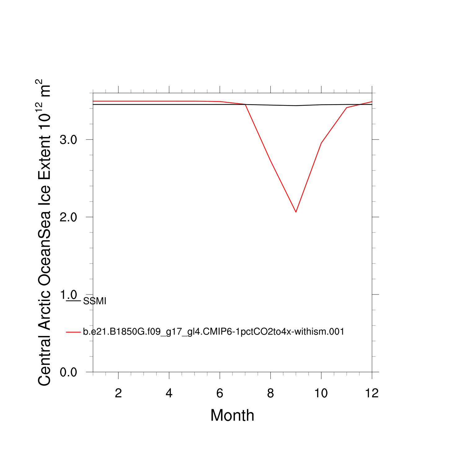 Climatological Monthly Mean Extent vs Obs plot
