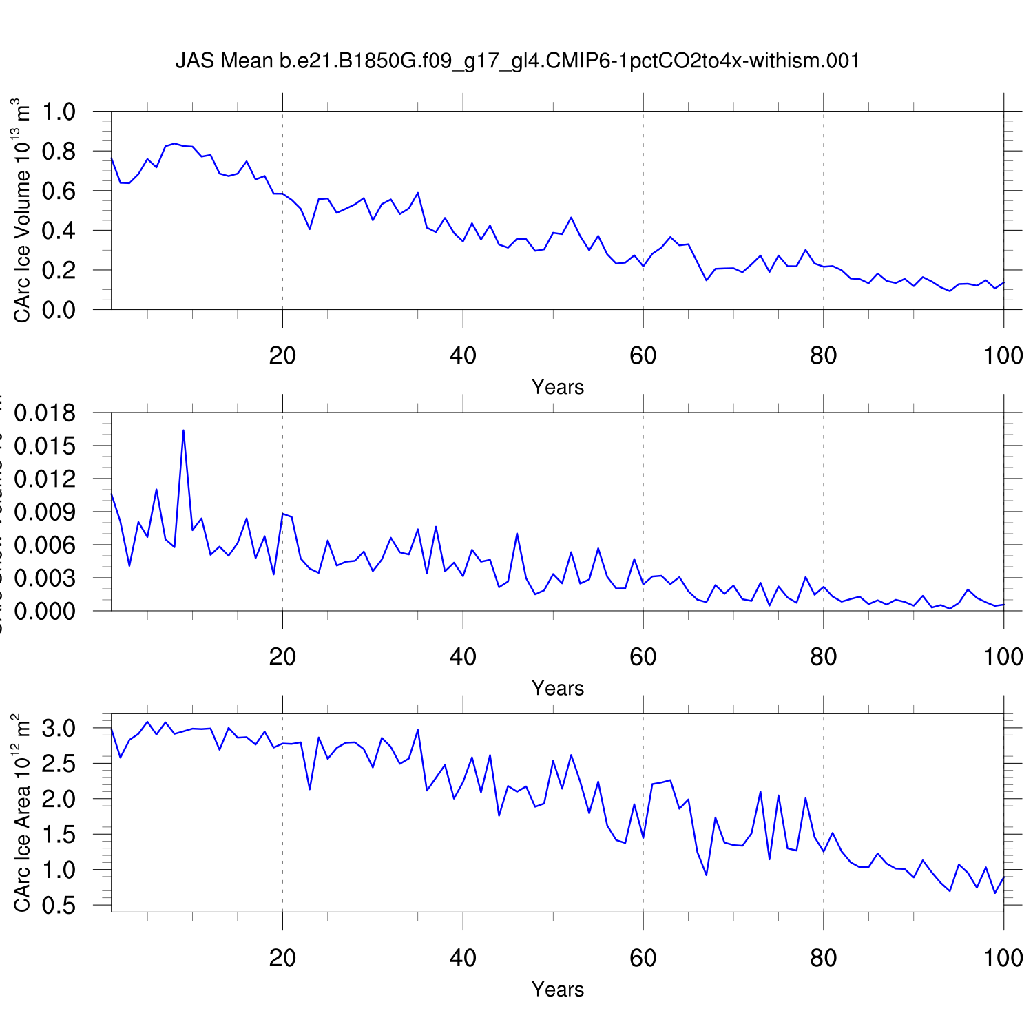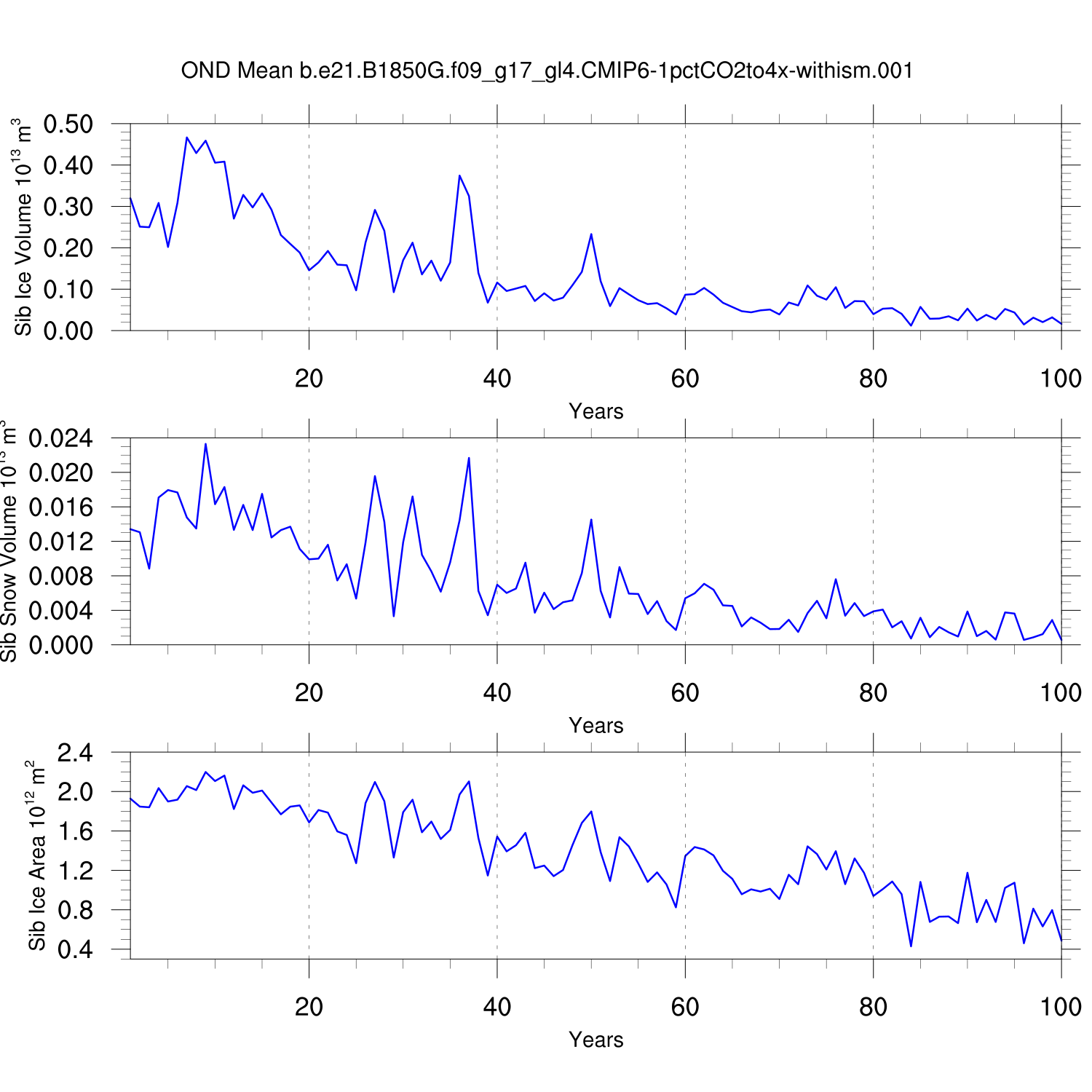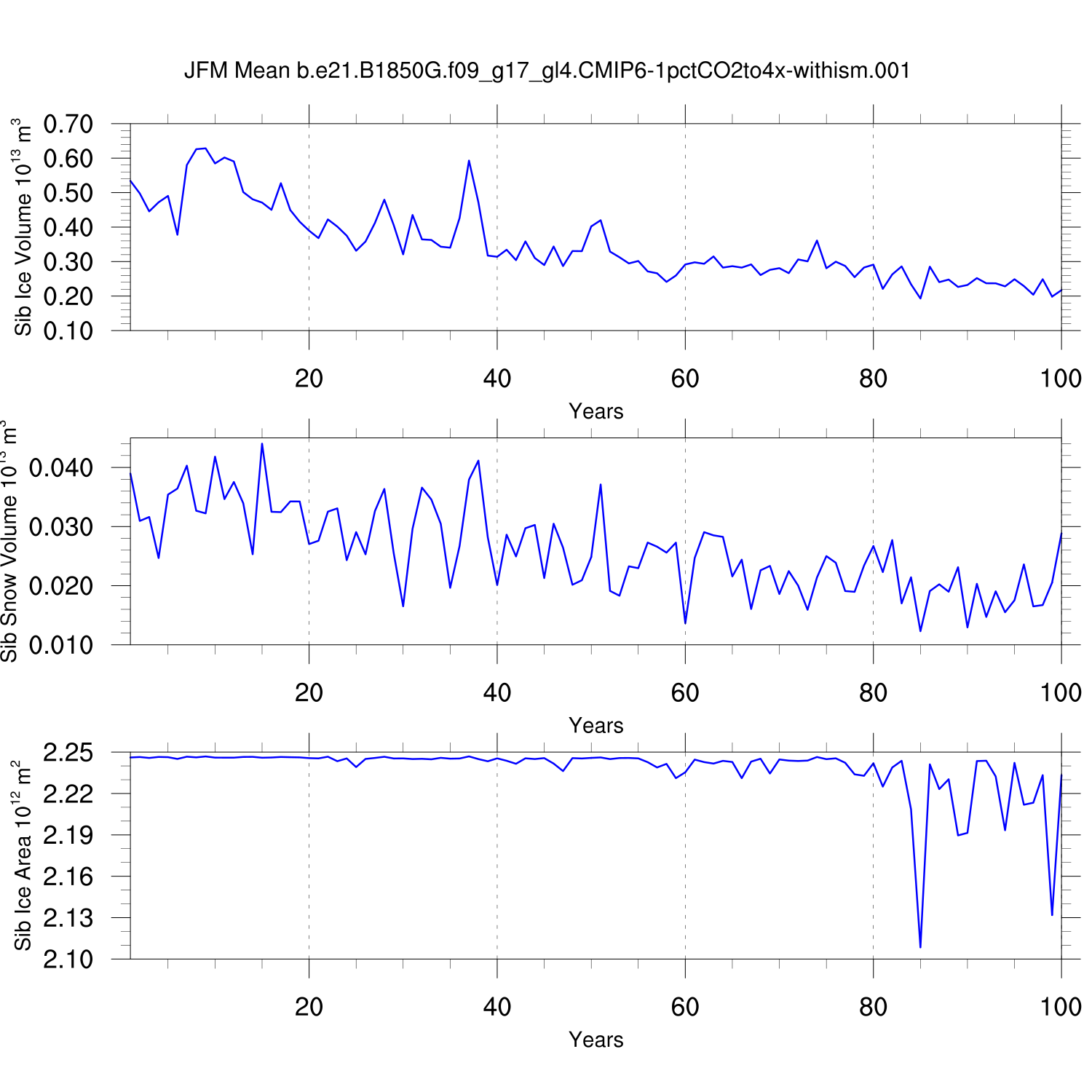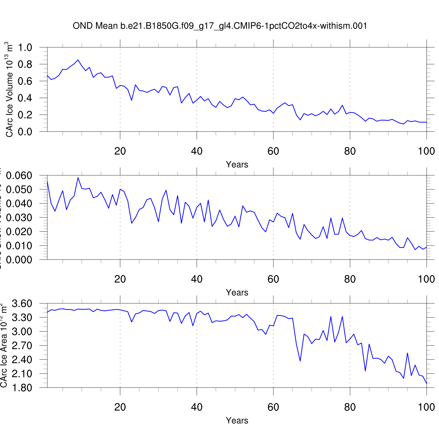 CICE Output for b.e21.B1850G.f09_g17_gl4.CMIP6-1pctCO2to4x-withism.001