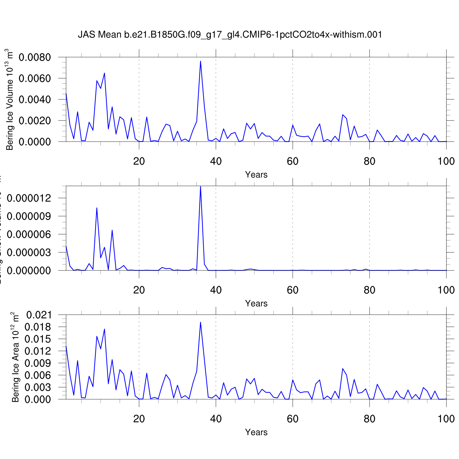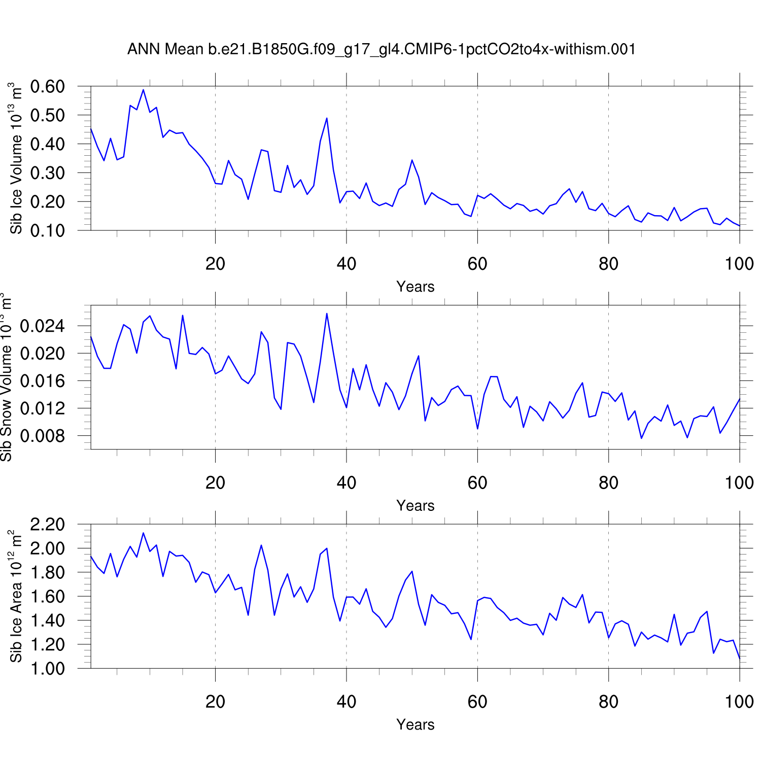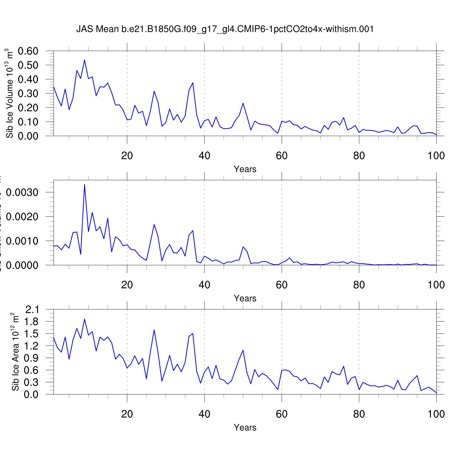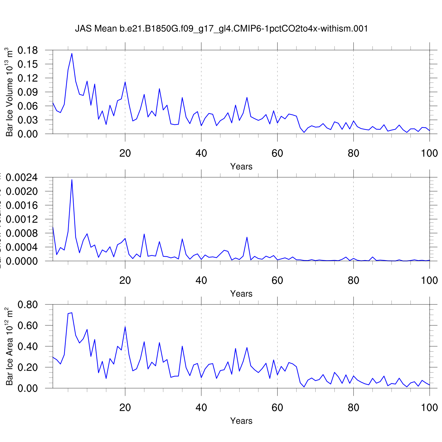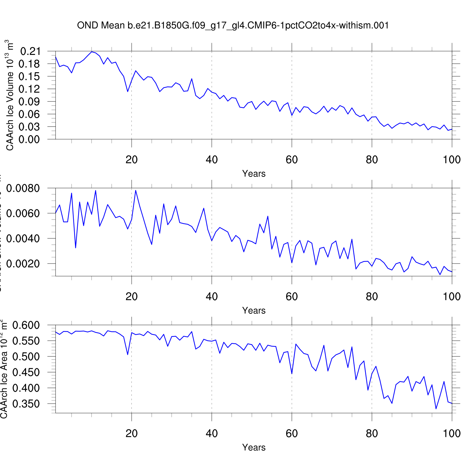 CICE Output for b.e21.B1850G.f09_g17_gl4.CMIP6-1pctCO2to4x-withism.001