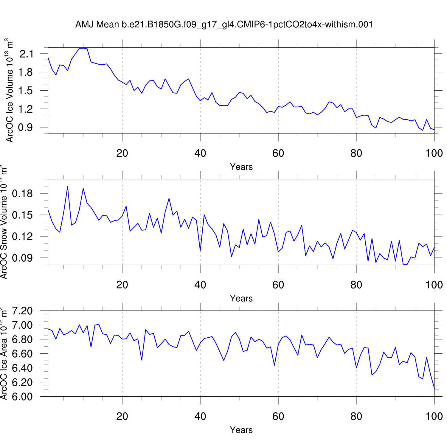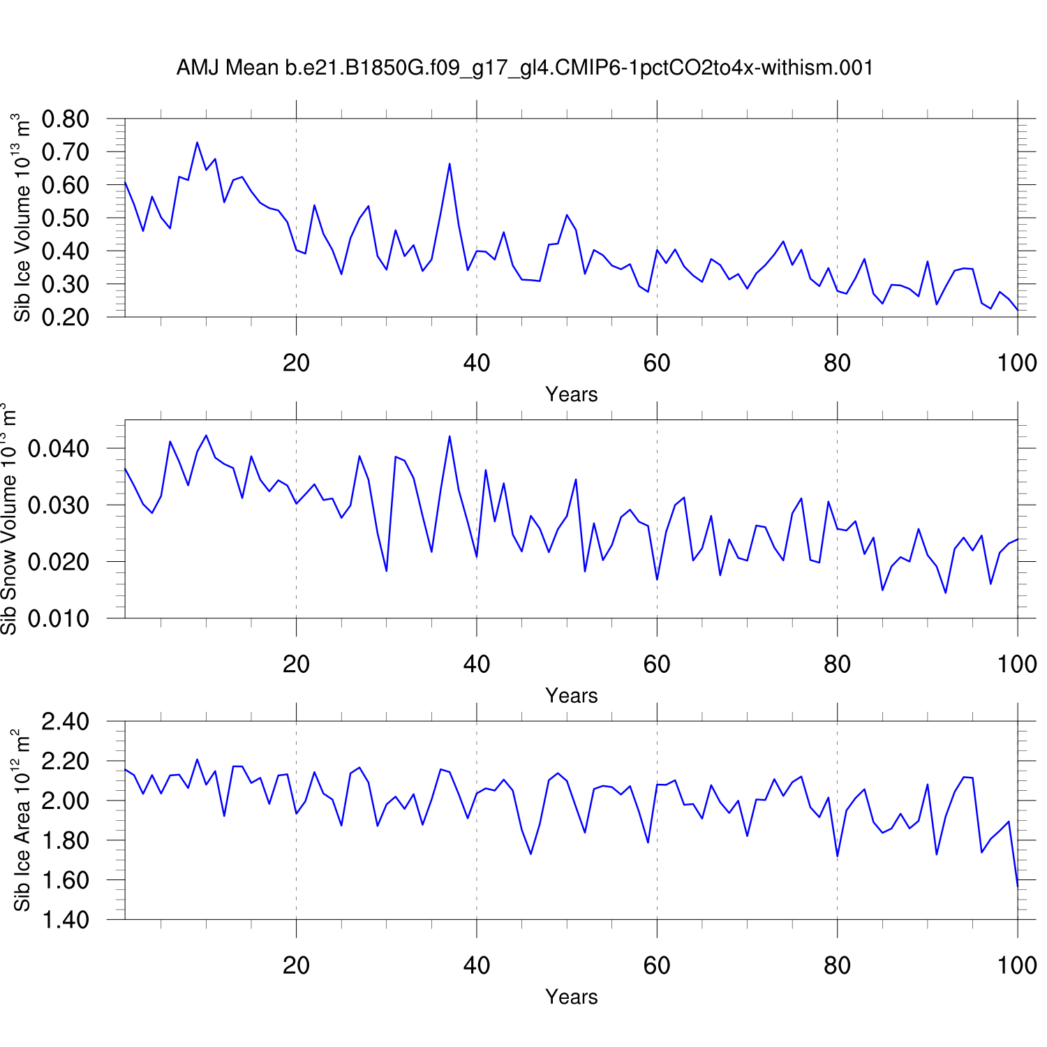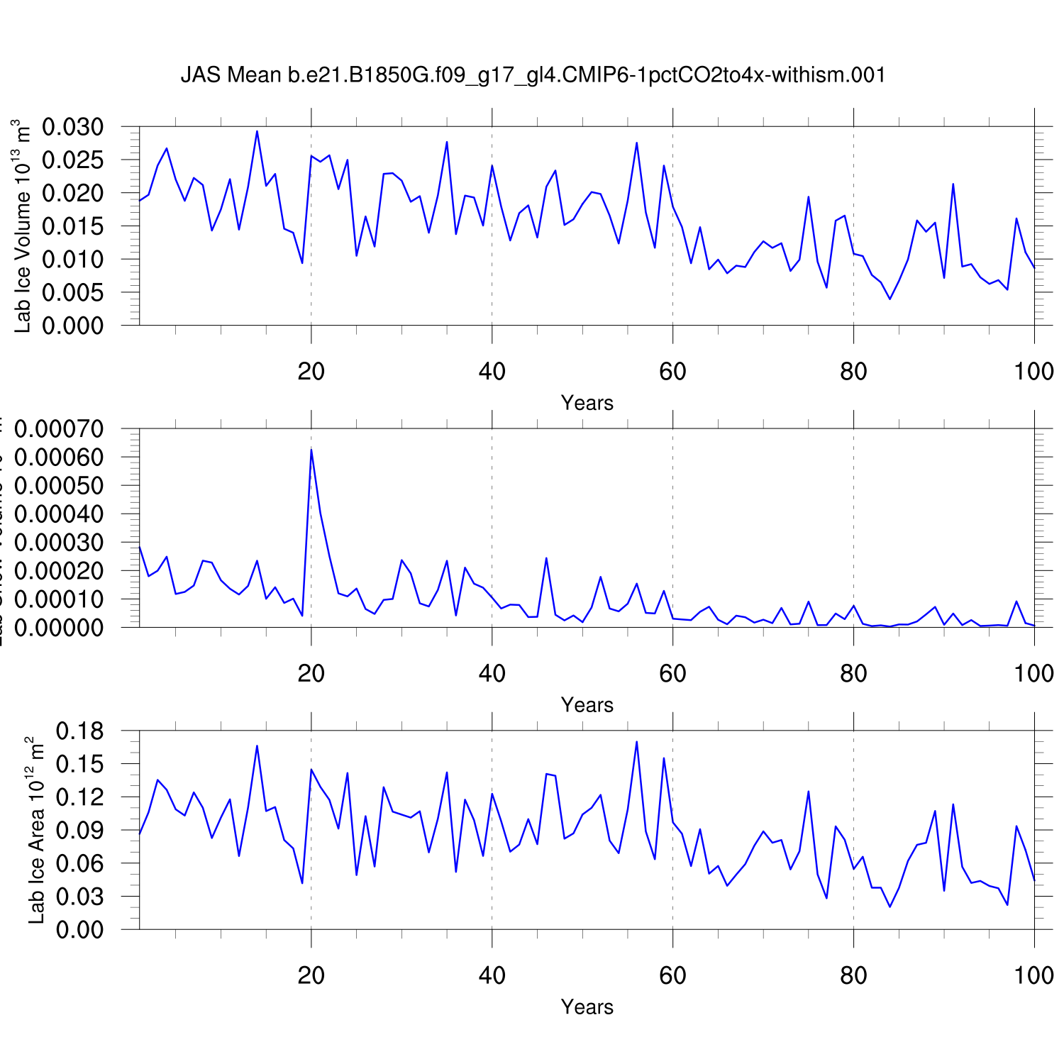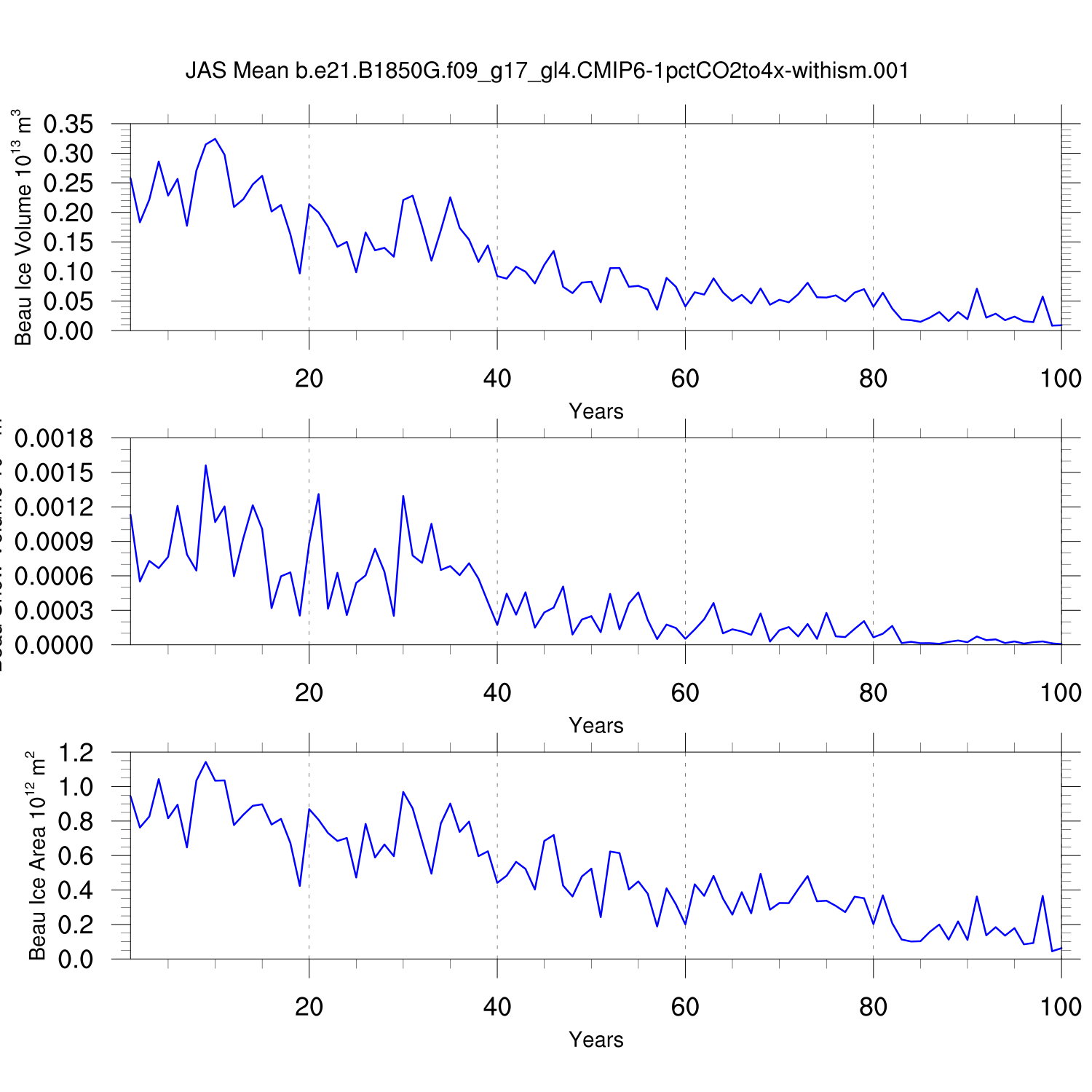 CICE Output for b.e21.B1850G.f09_g17_gl4.CMIP6-1pctCO2to4x-withism.001