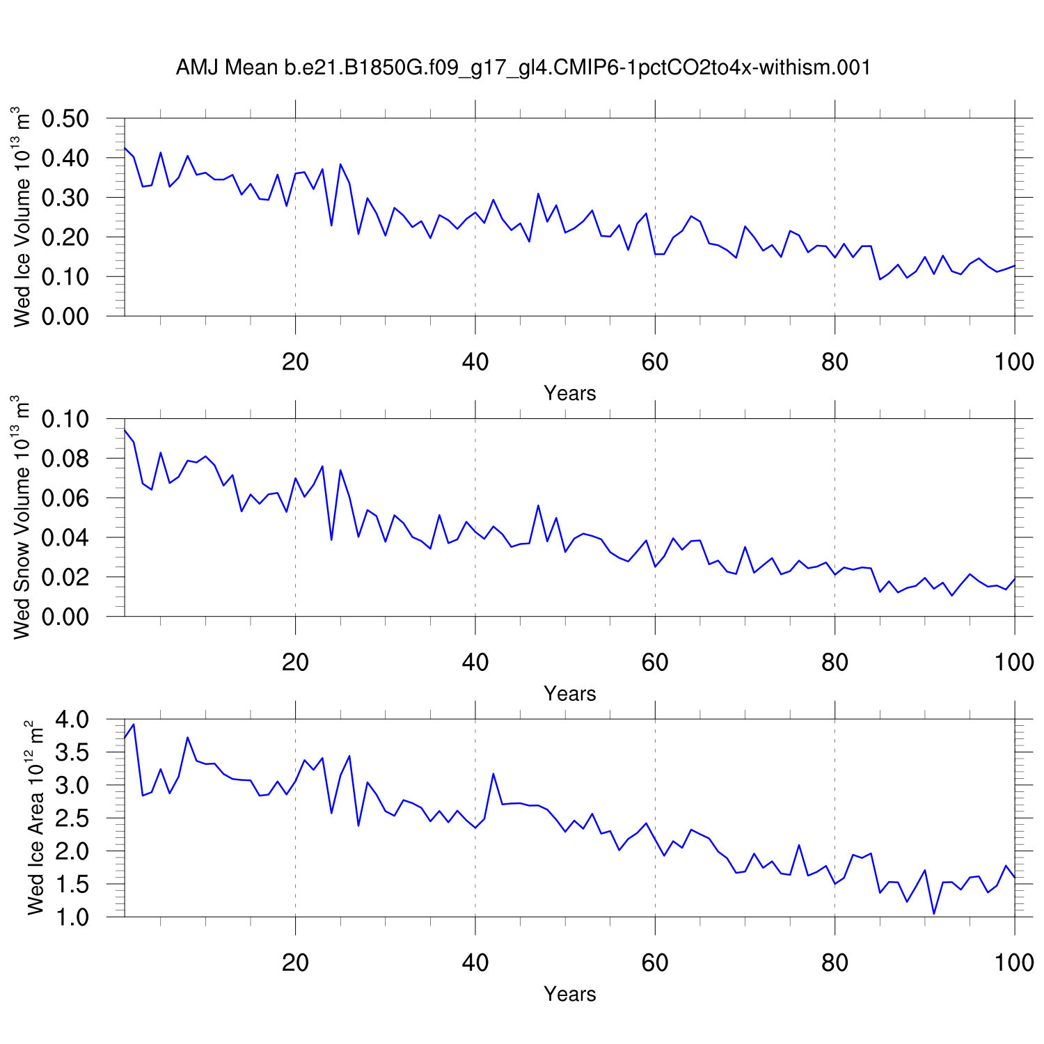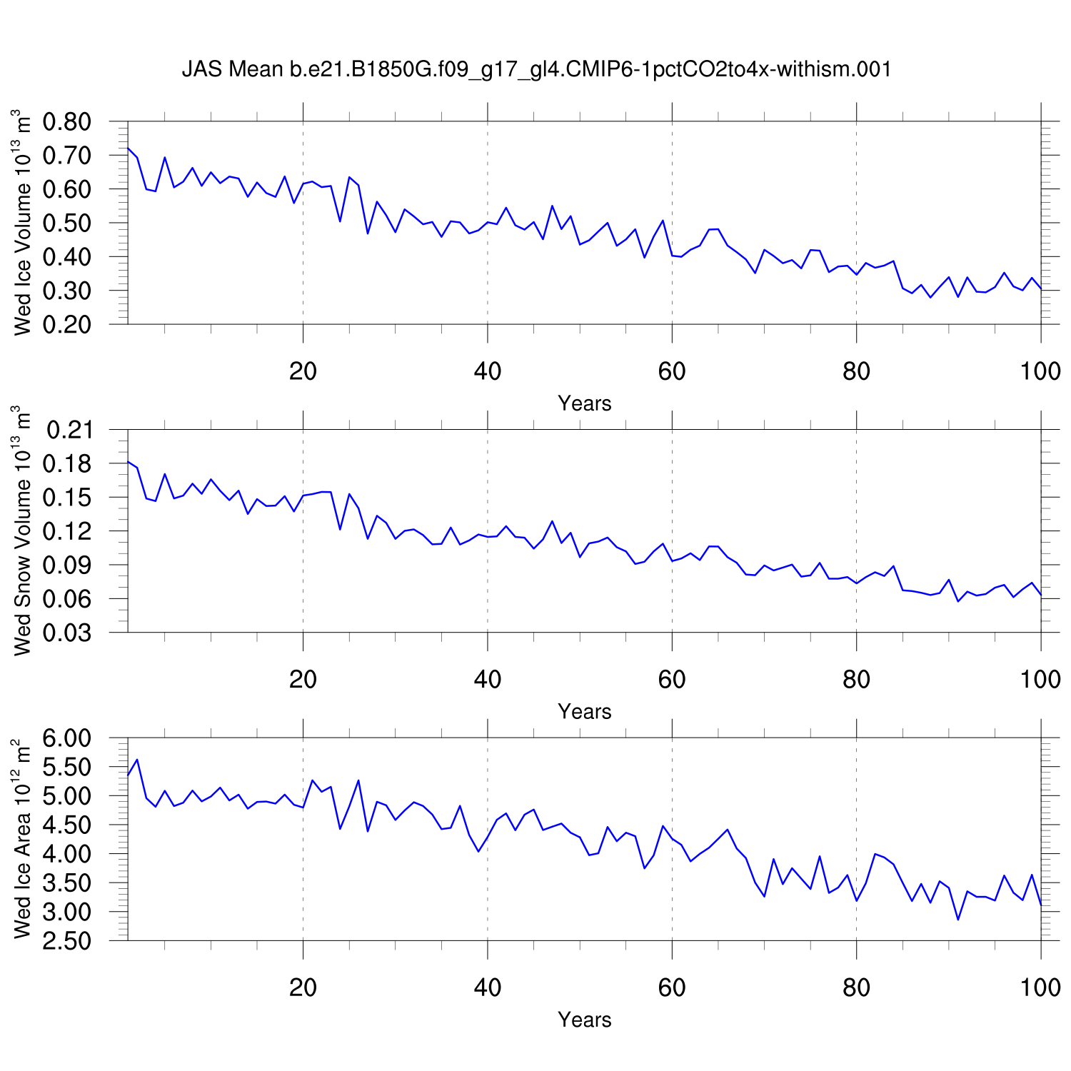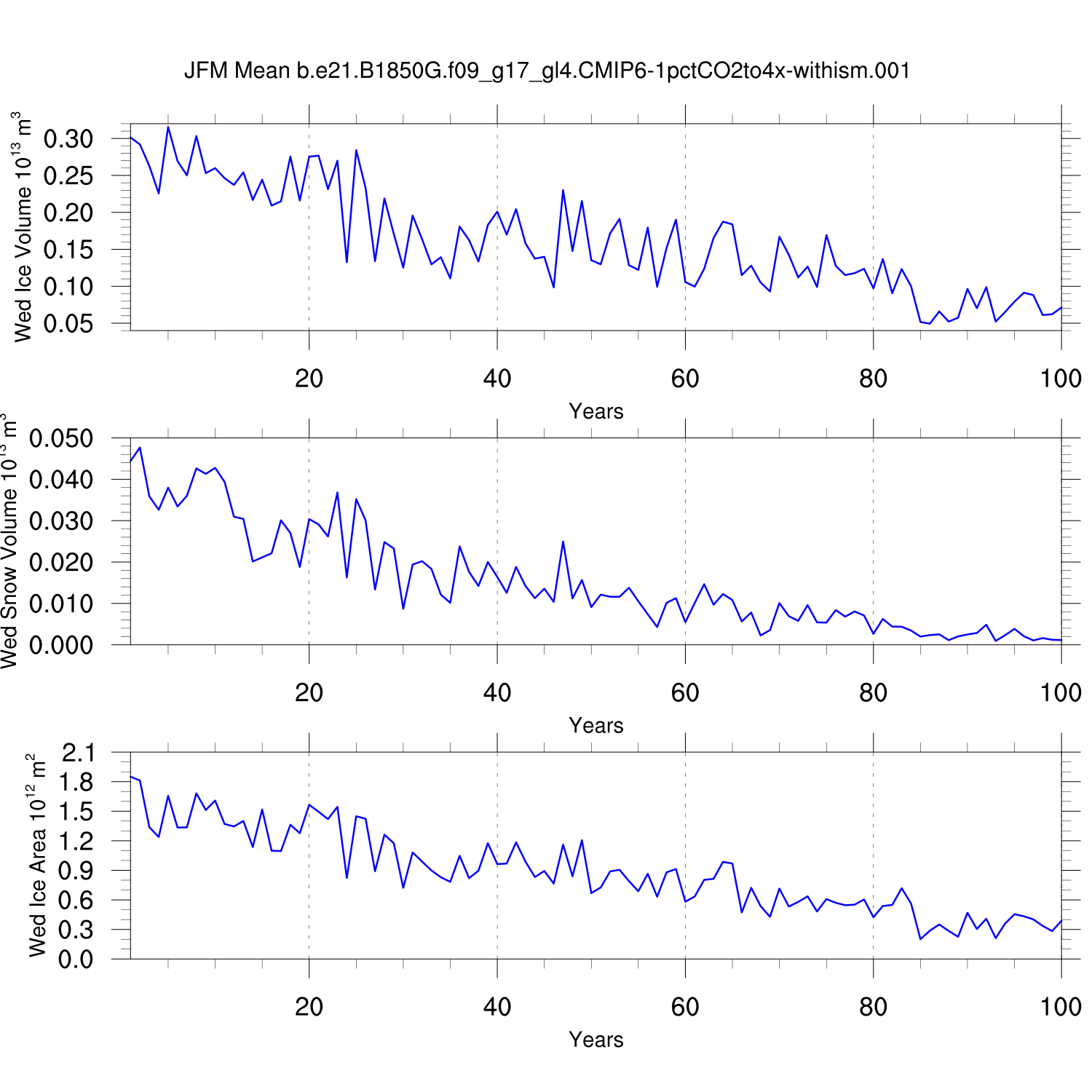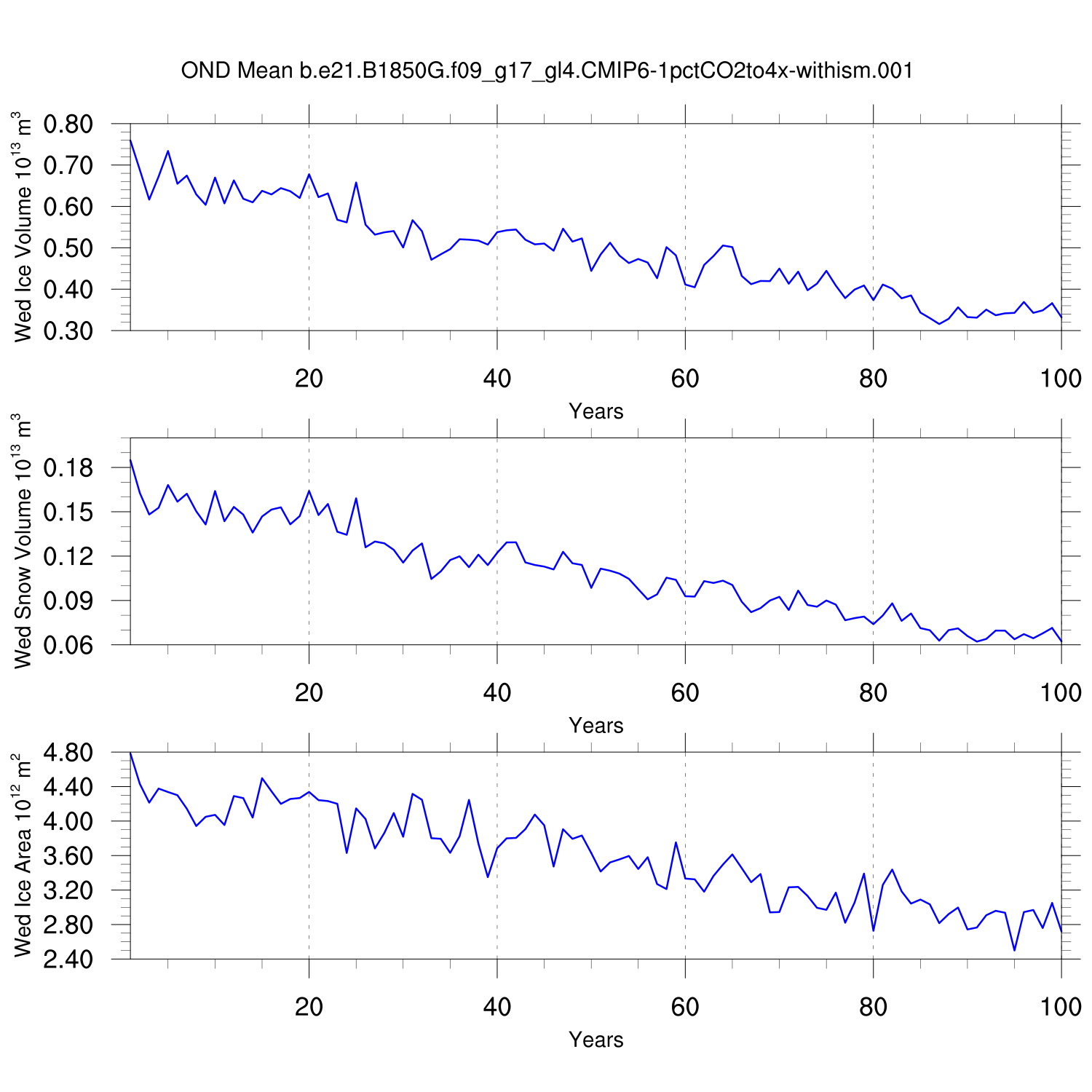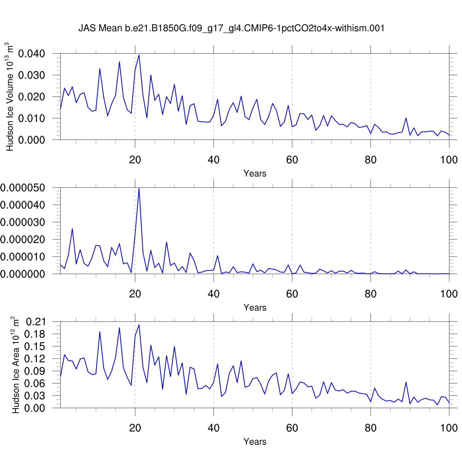 CICE Output for b.e21.B1850G.f09_g17_gl4.CMIP6-1pctCO2to4x-withism.001