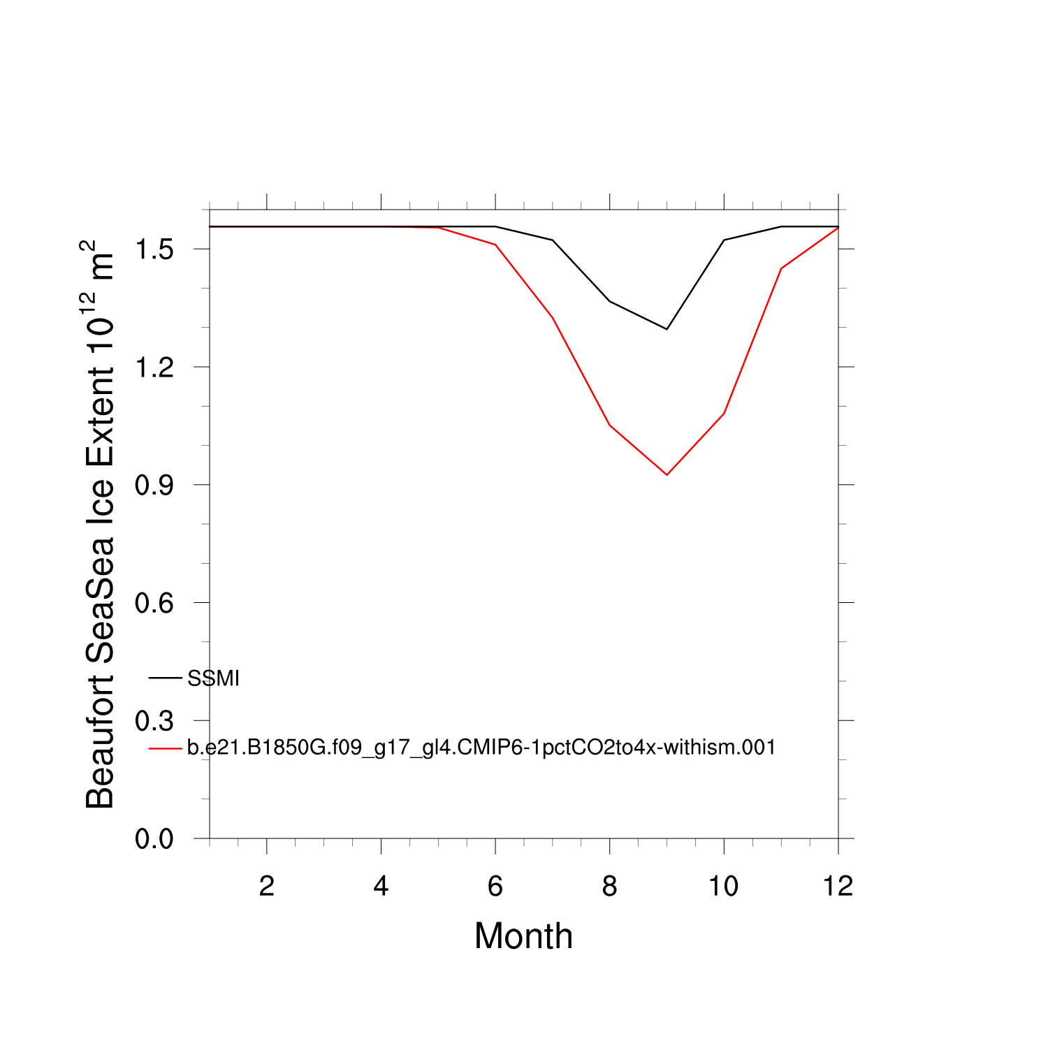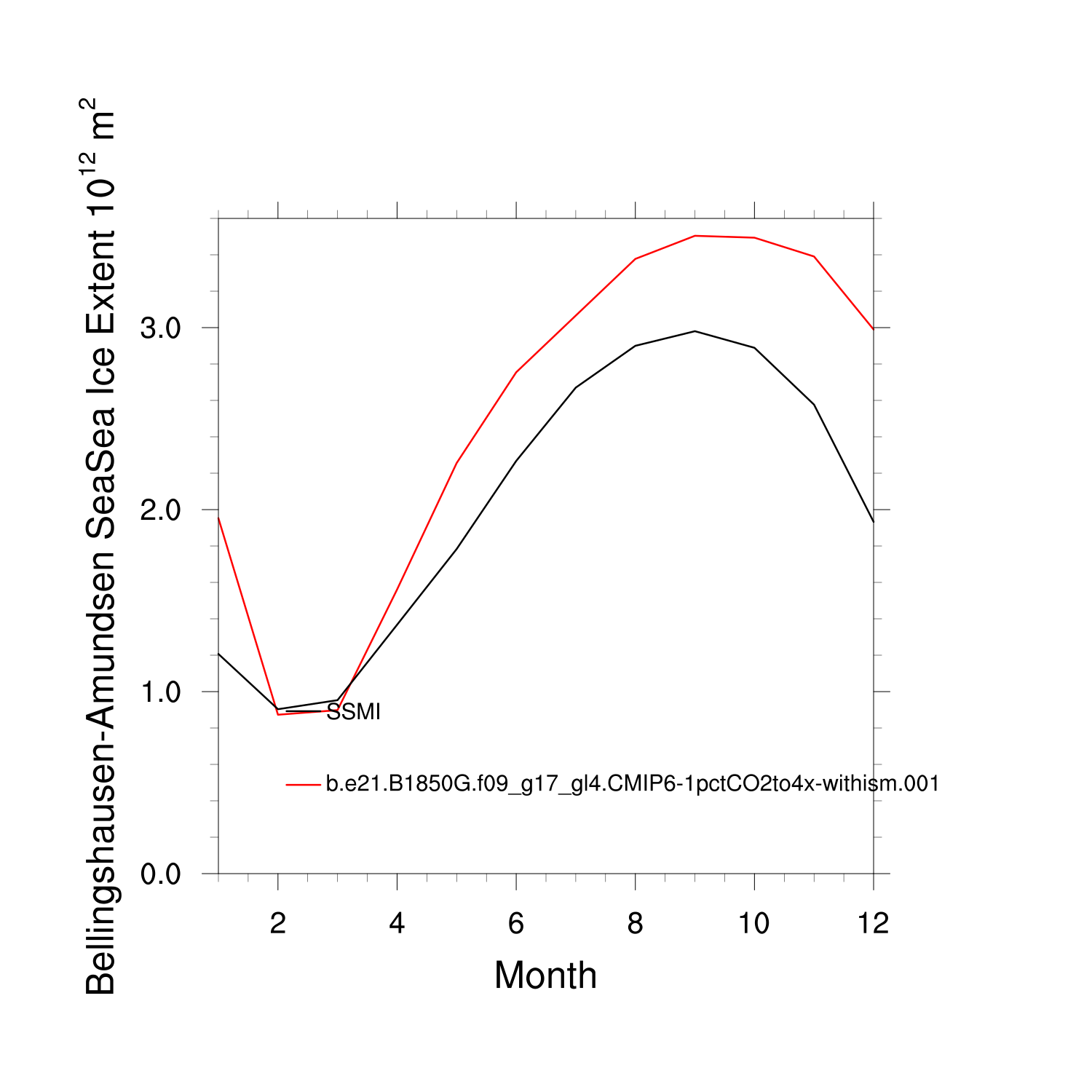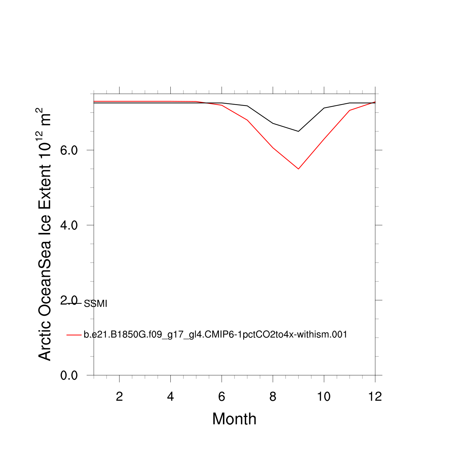 Climatological Monthly Mean Extent vs Obs plot
