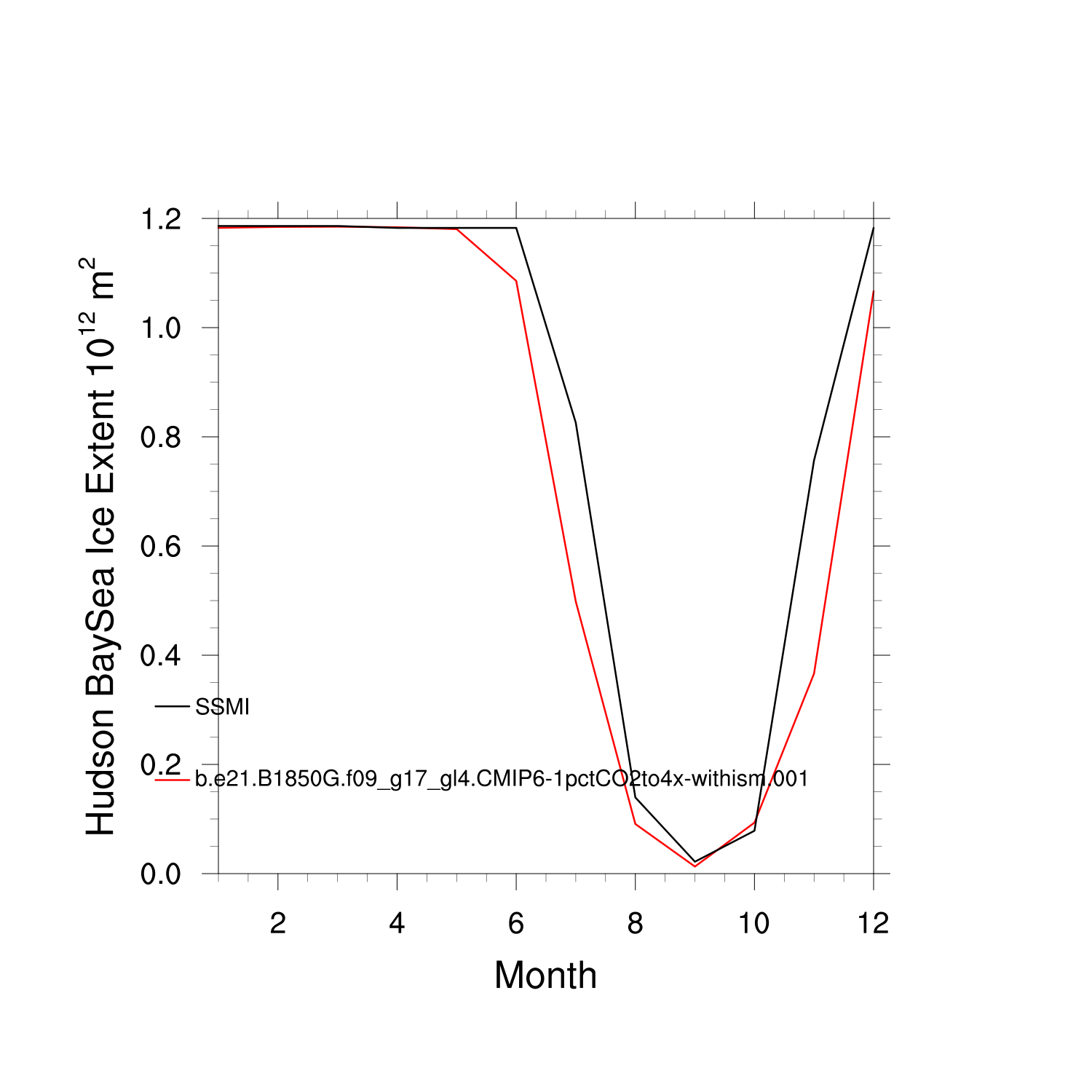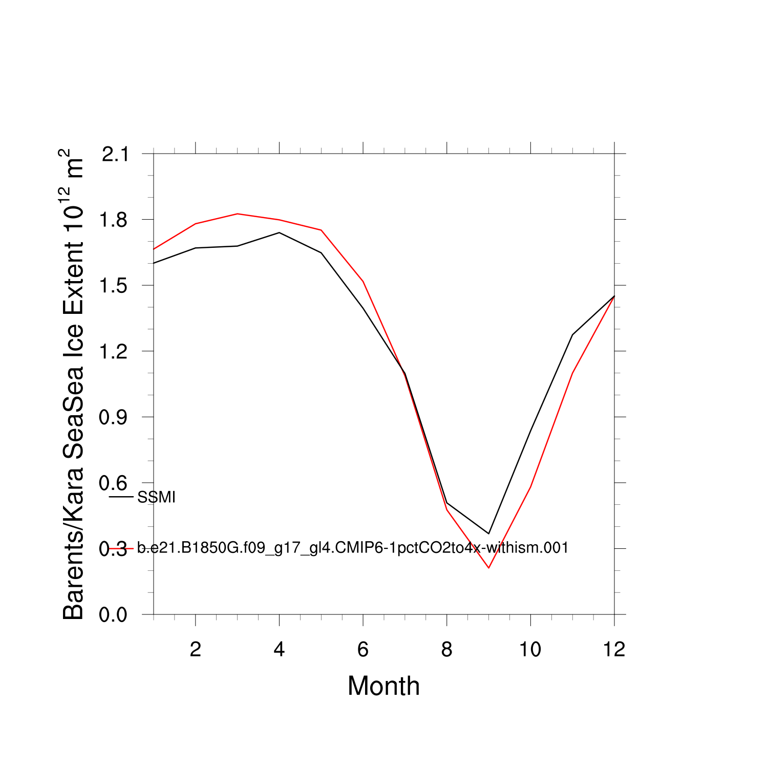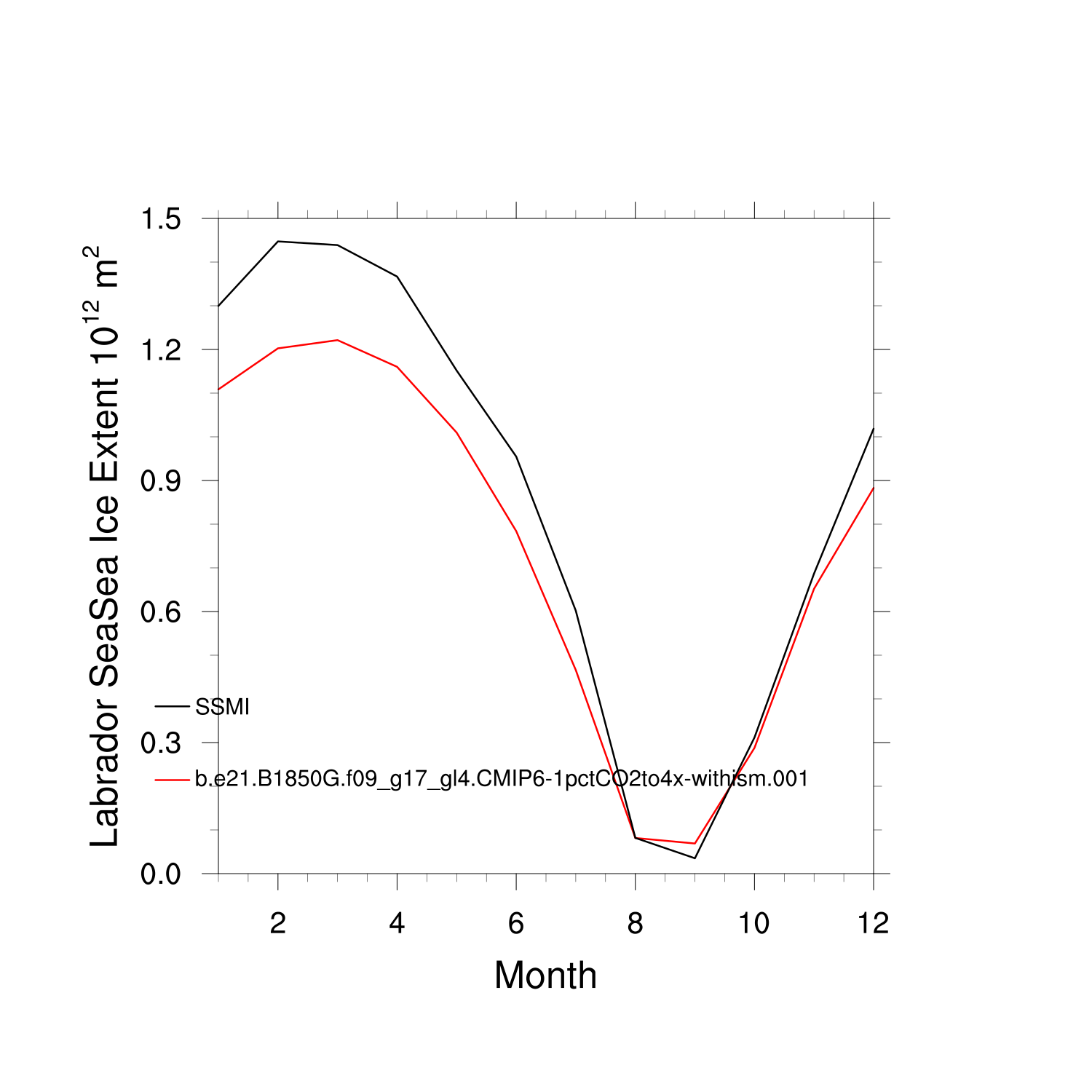 Climatological Monthly Mean Extent vs Obs plot