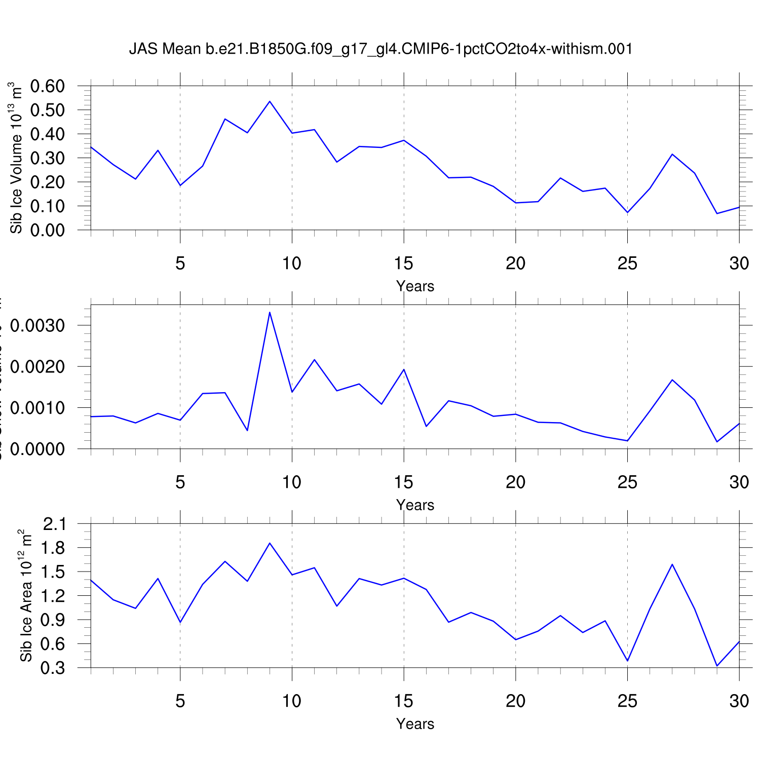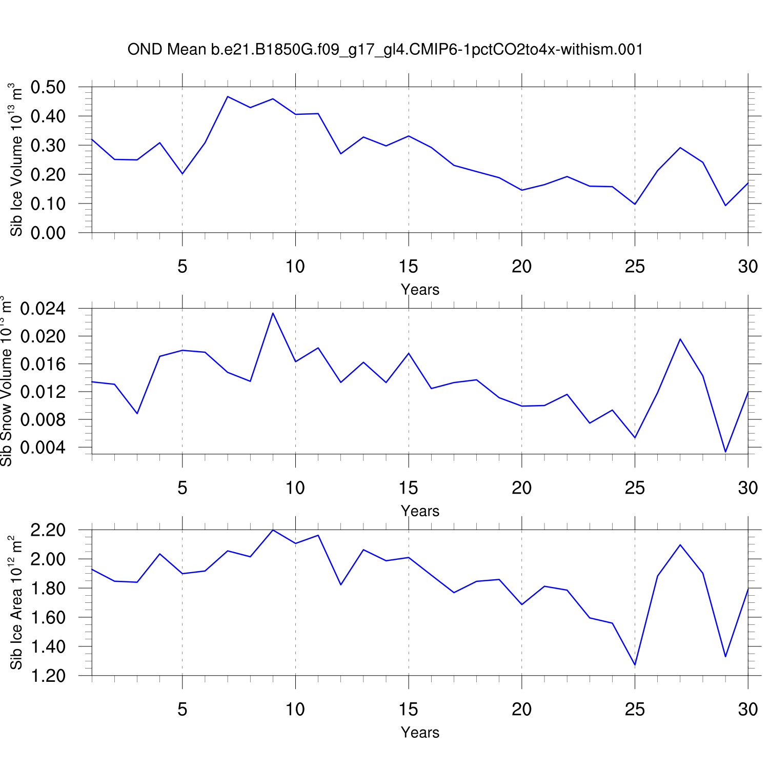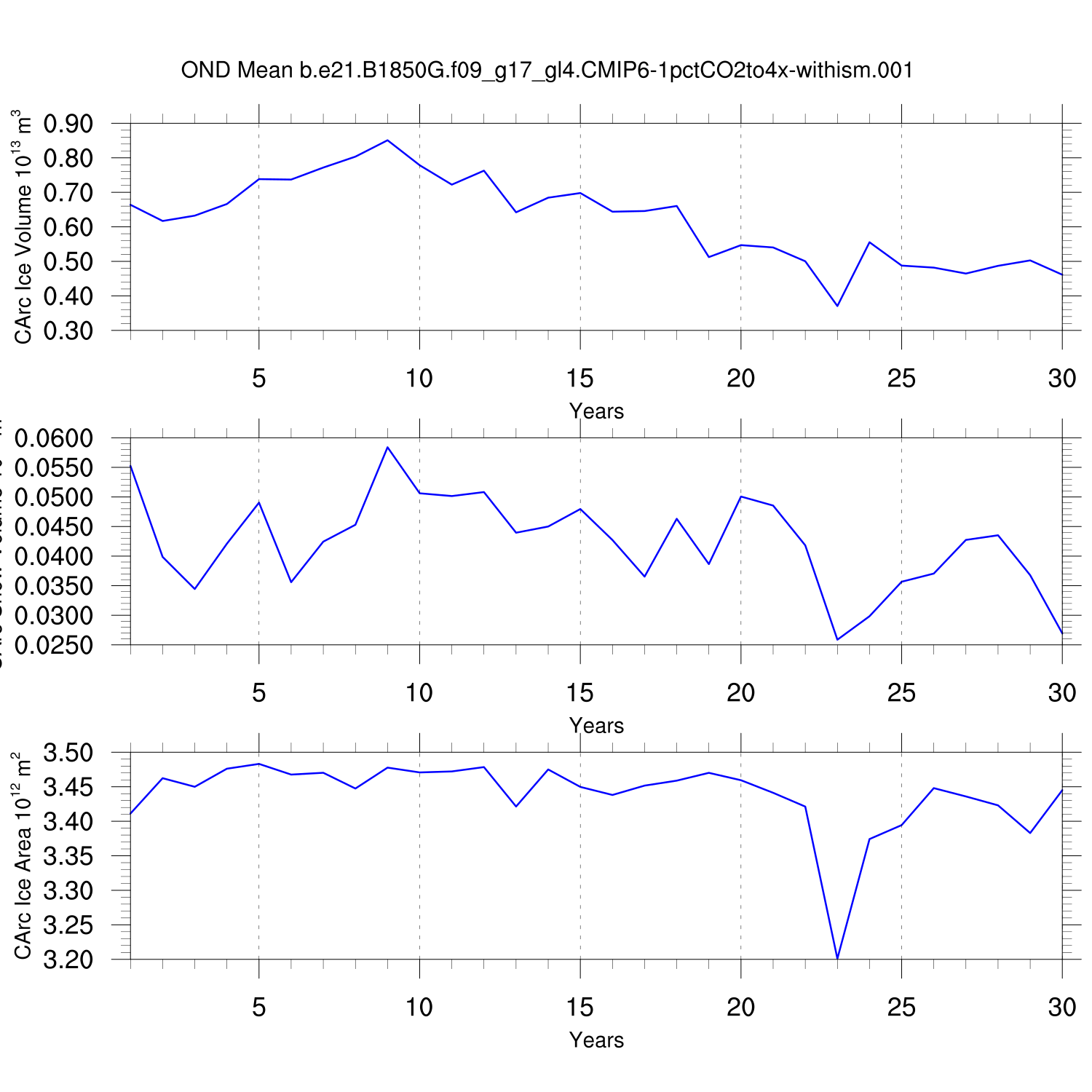 CICE Output for b.e21.B1850G.f09_g17_gl4.CMIP6-1pctCO2to4x-withism.001