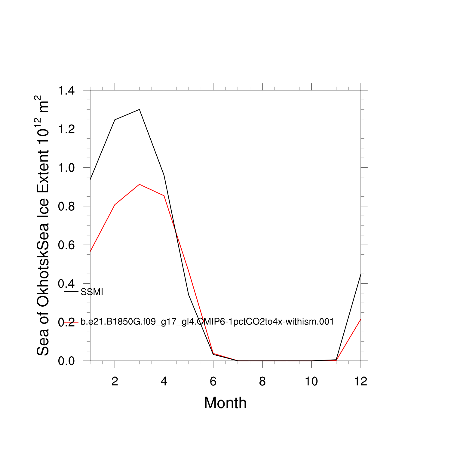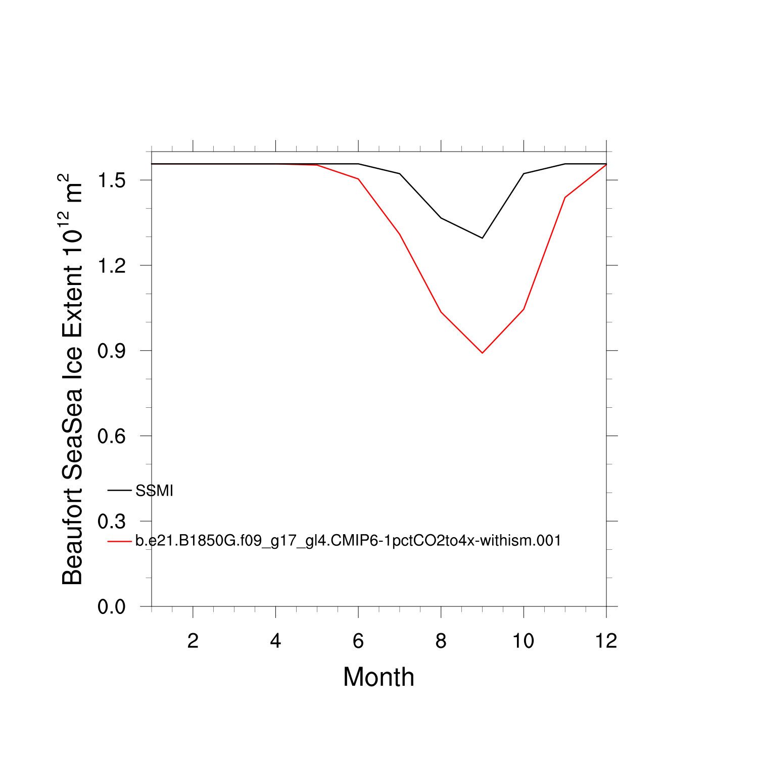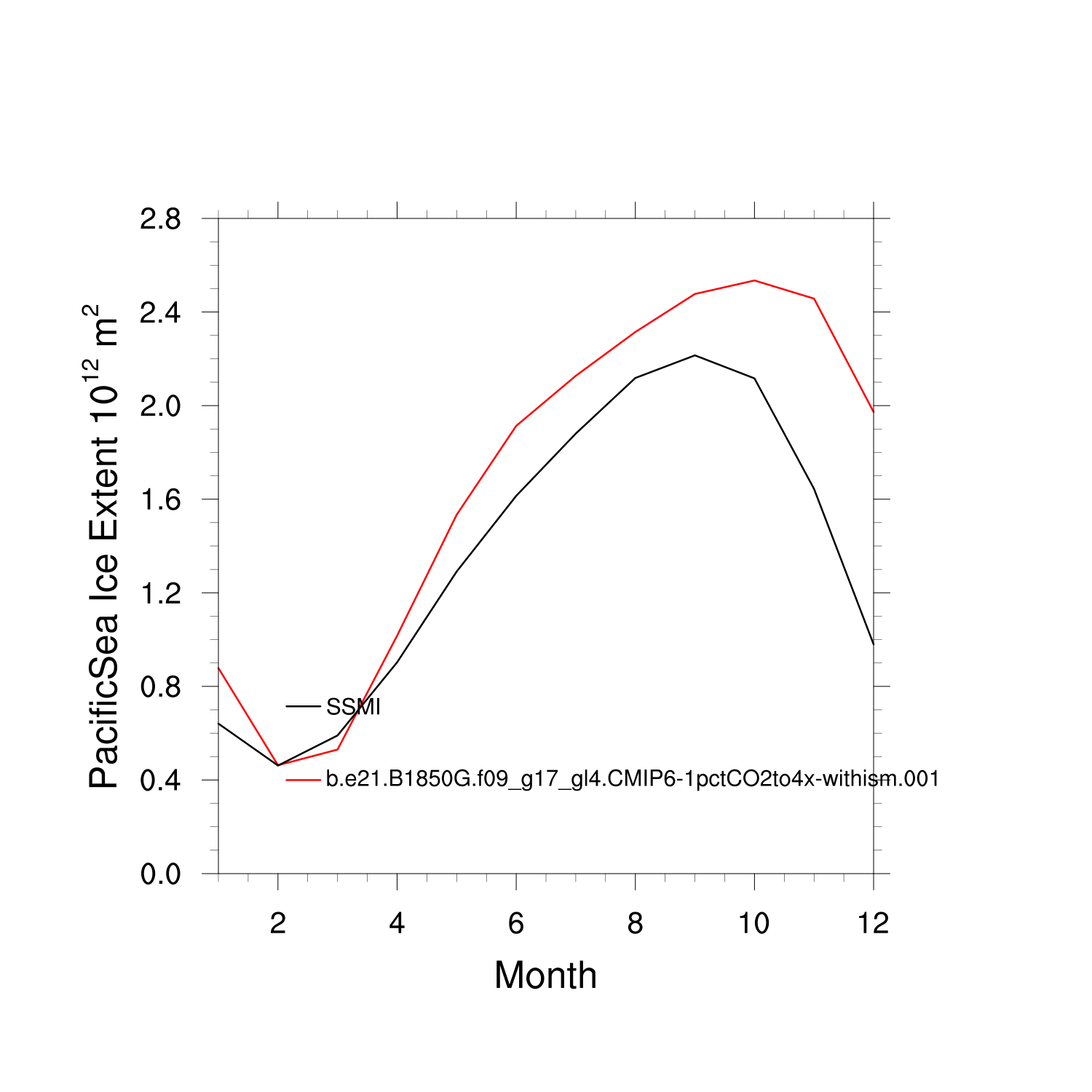 Climatological Monthly Mean Extent vs Obs plot