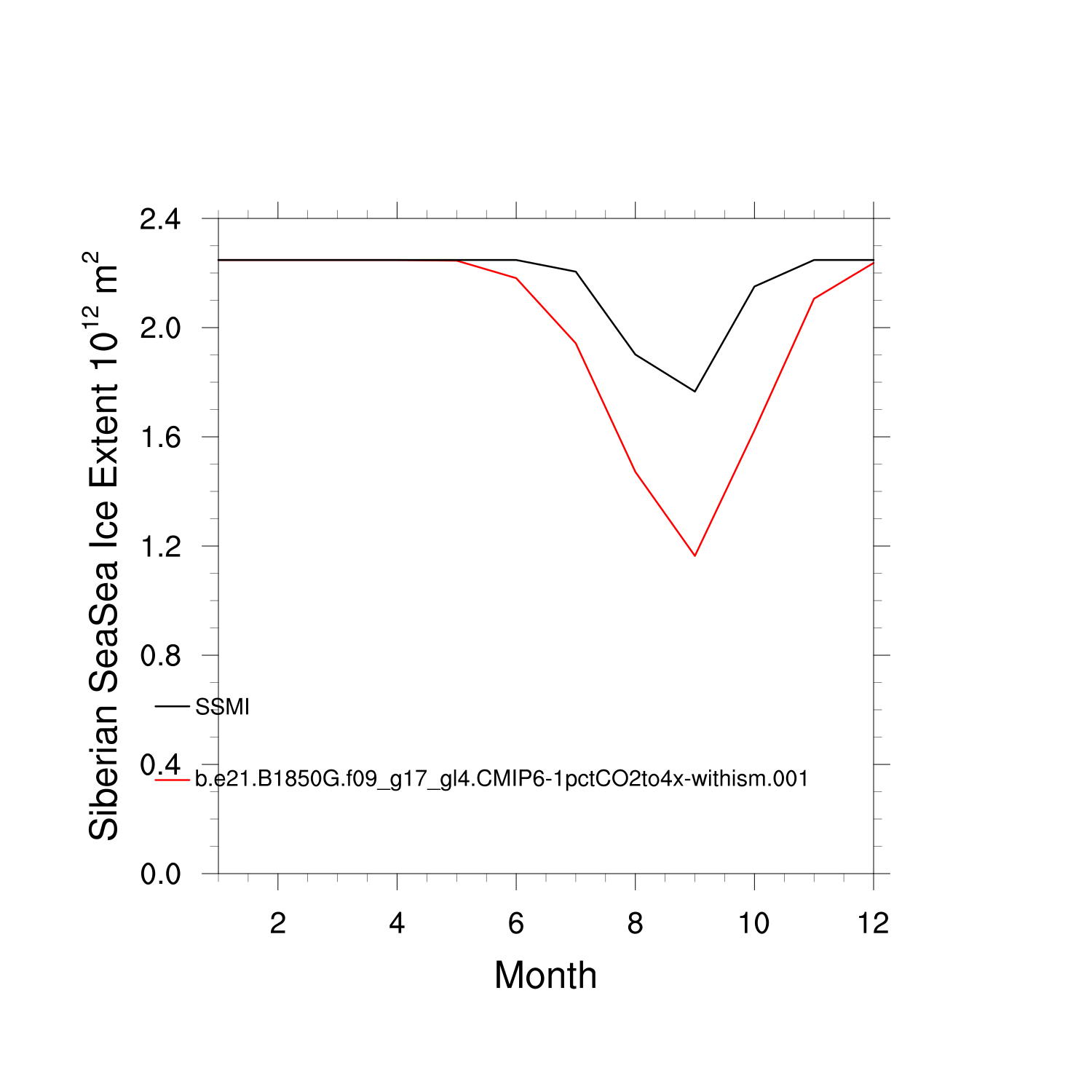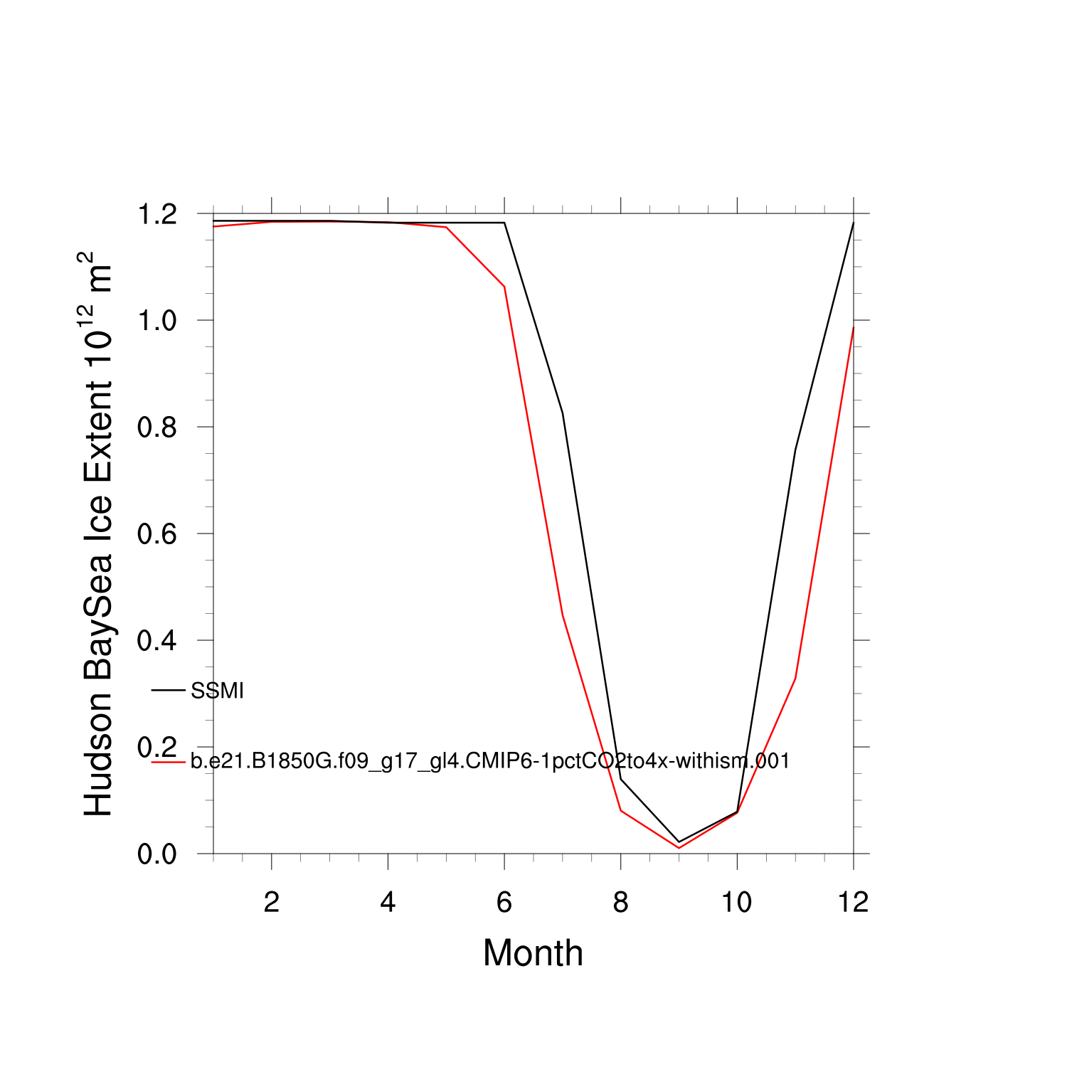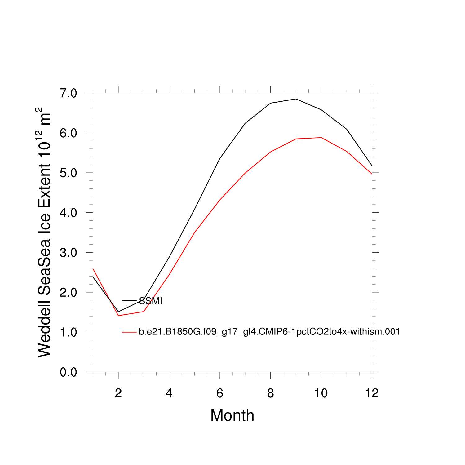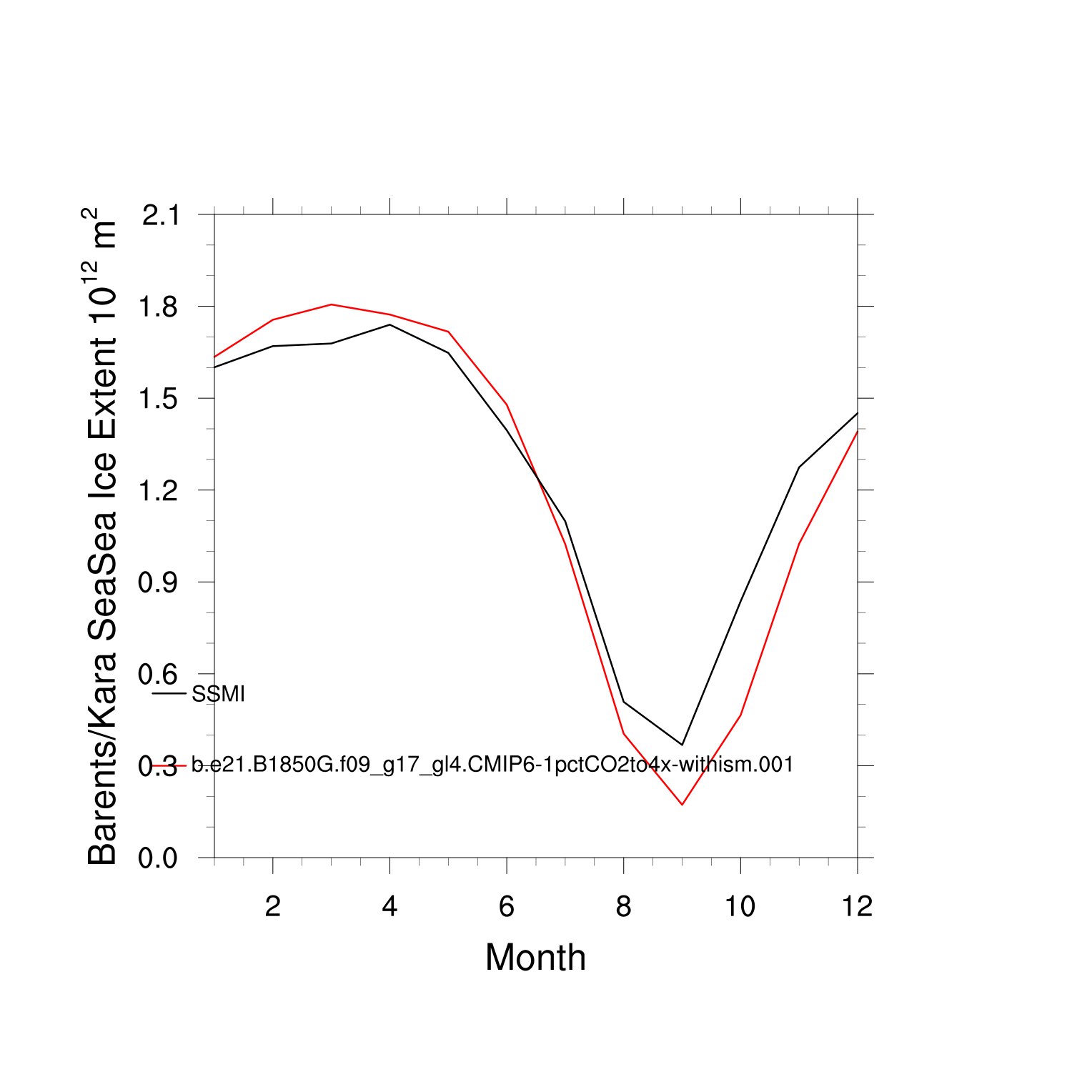 Climatological Monthly Mean Extent vs Obs plot