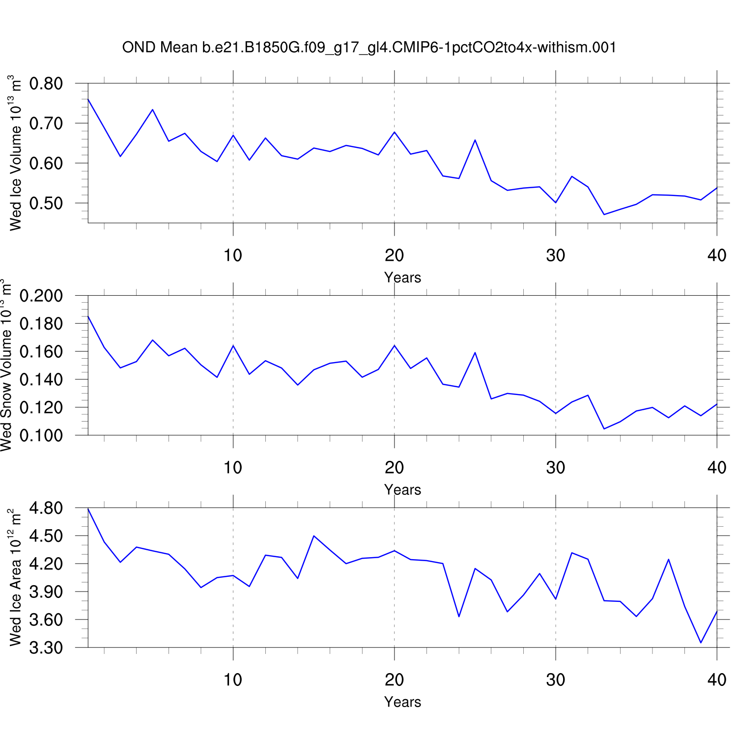 CICE Output for b.e21.B1850G.f09_g17_gl4.CMIP6-1pctCO2to4x-withism.001