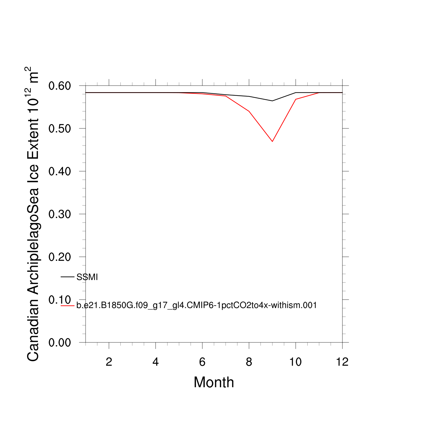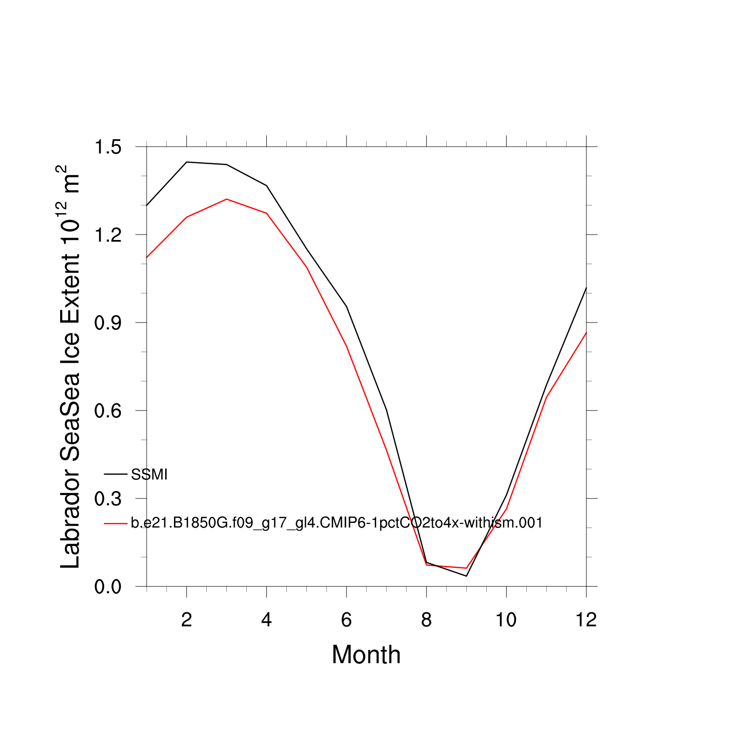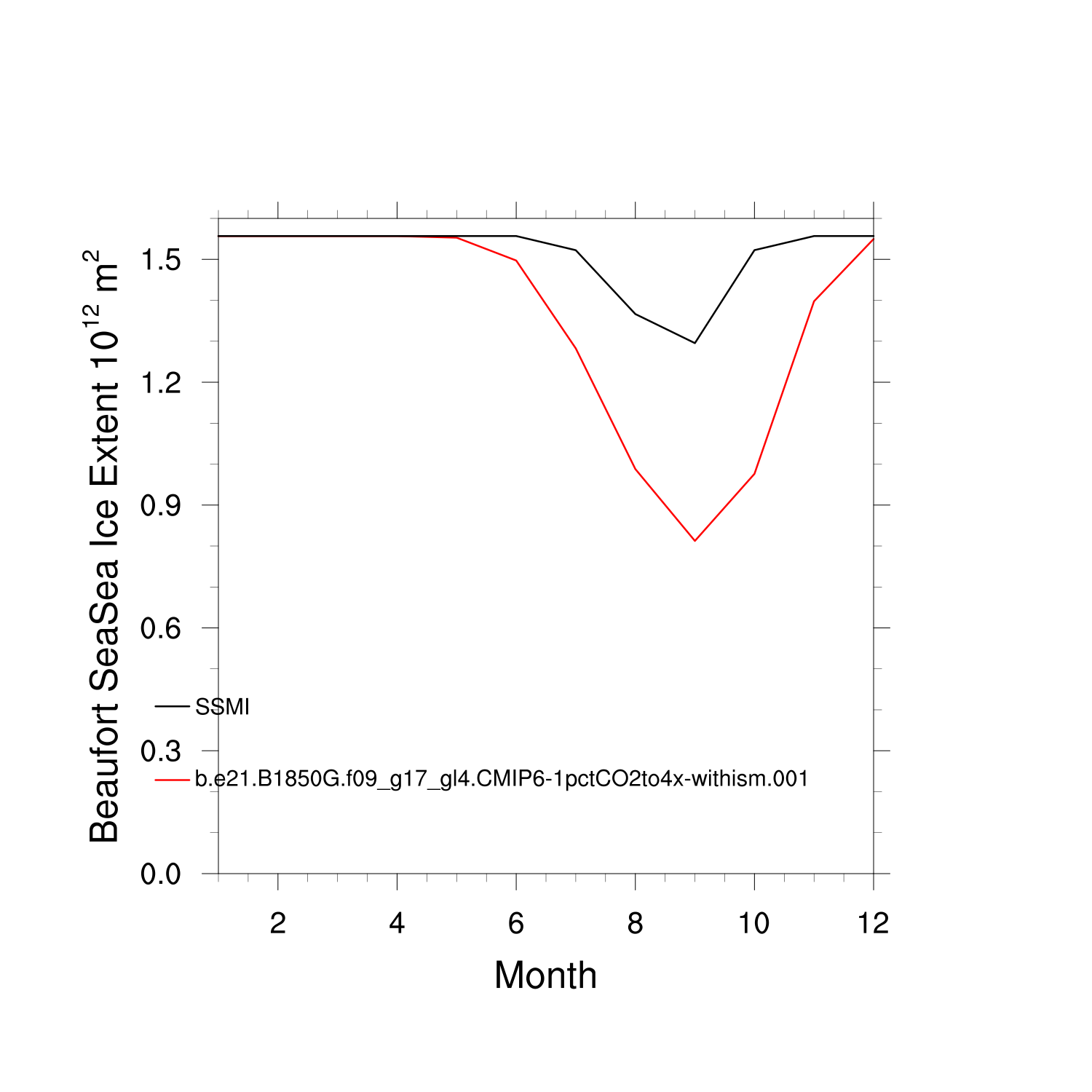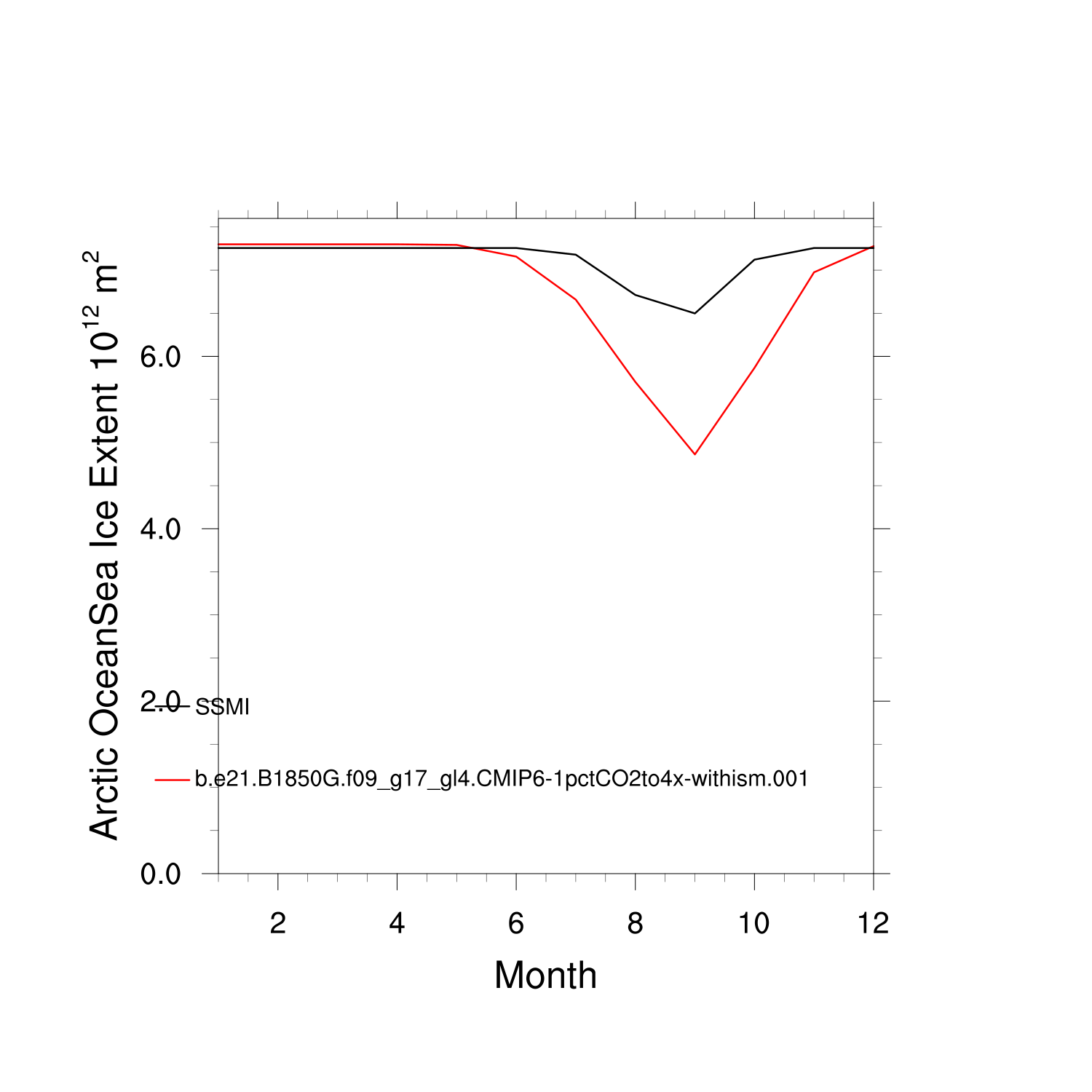 Climatological Monthly Mean Extent vs Obs plot