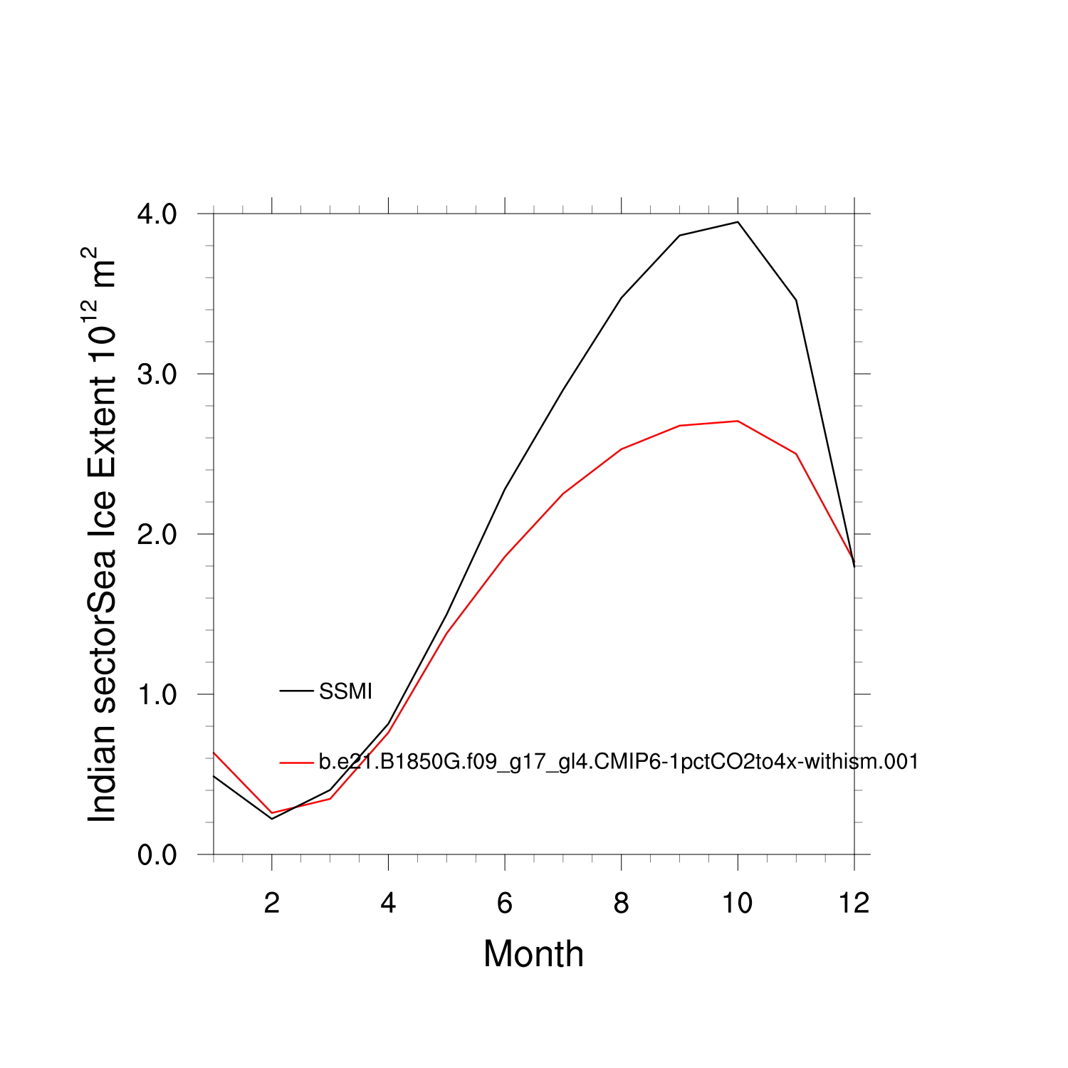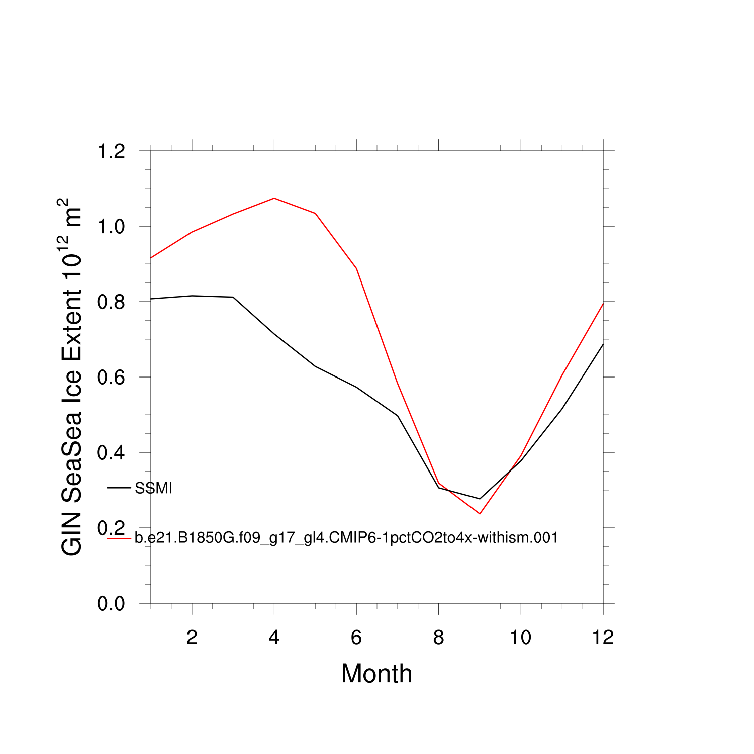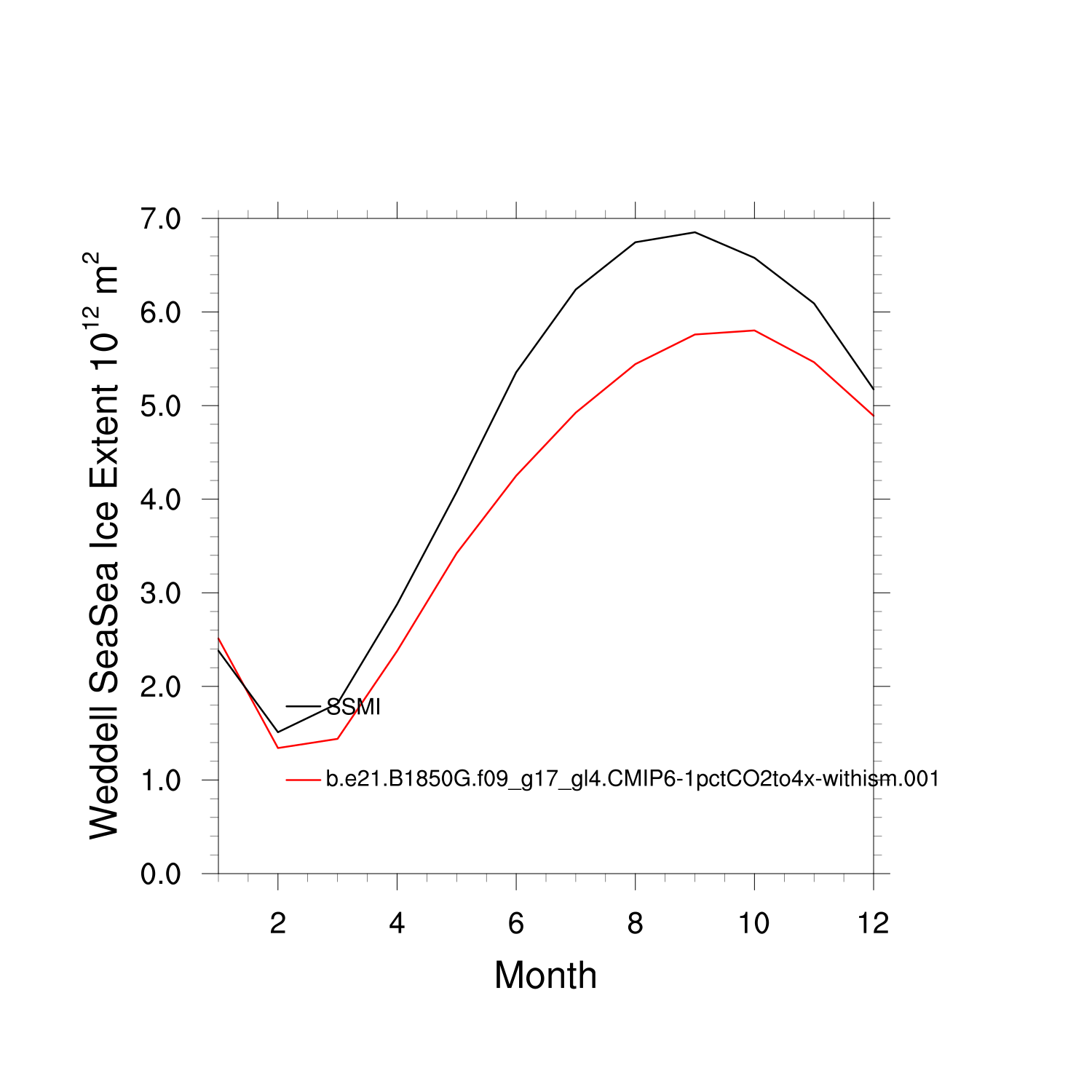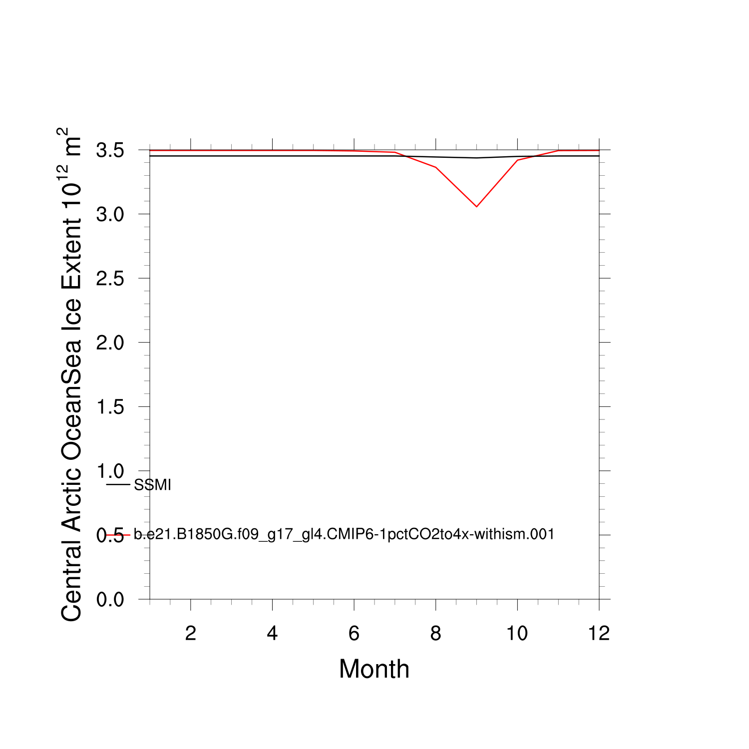 Climatological Monthly Mean Extent vs Obs plot