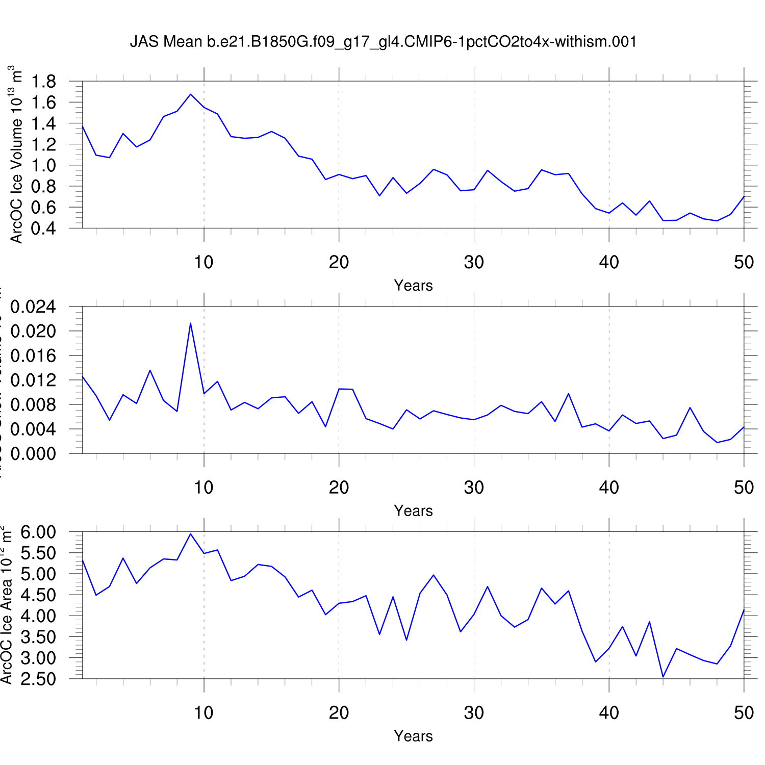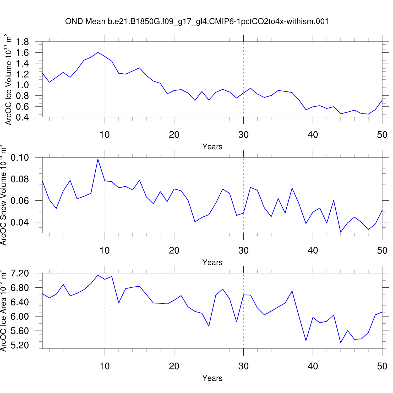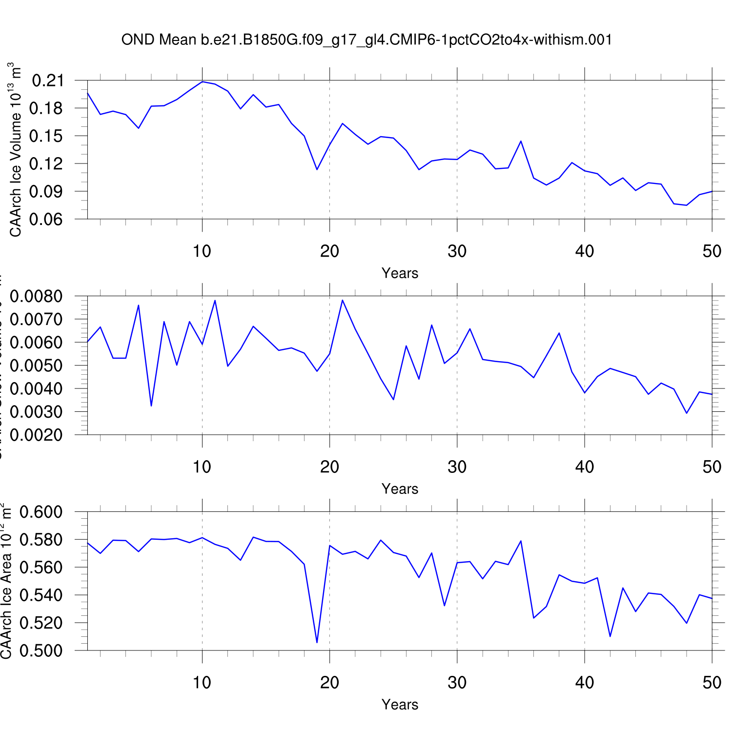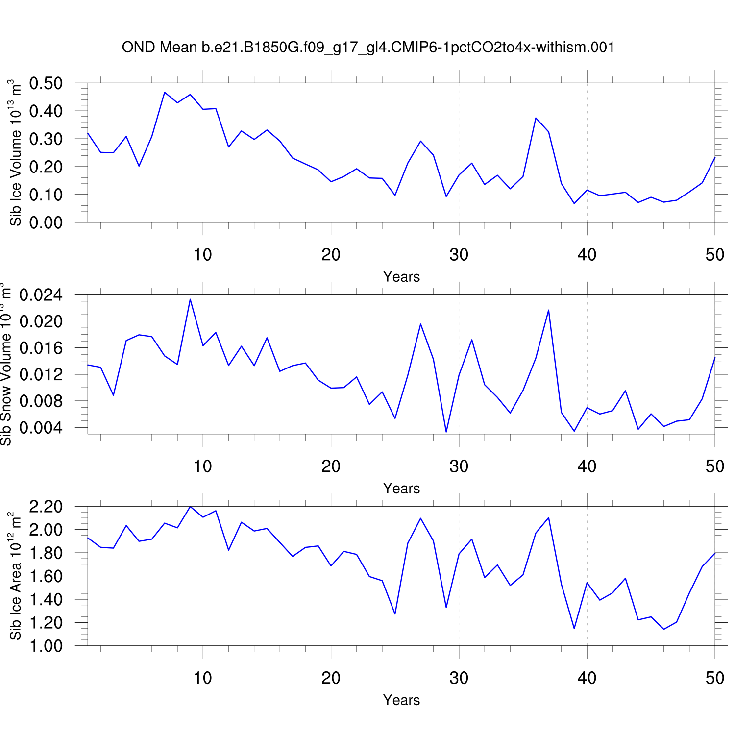 CICE Output for b.e21.B1850G.f09_g17_gl4.CMIP6-1pctCO2to4x-withism.001